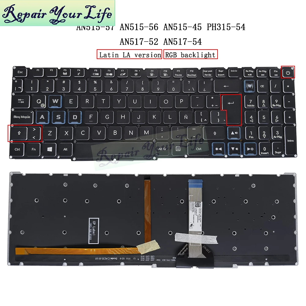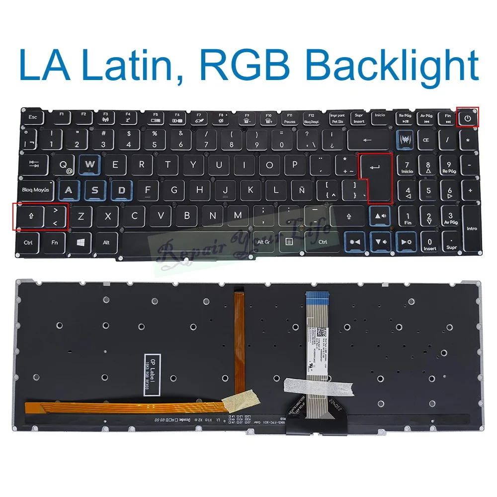 LA Teclado retroiluminado latino español para Acer Nitro 5 AN515-57 59F7 73X5 AN515-56 AN515-45 Gaming Laptop RGB retroiluminación LG5P-A52BWL