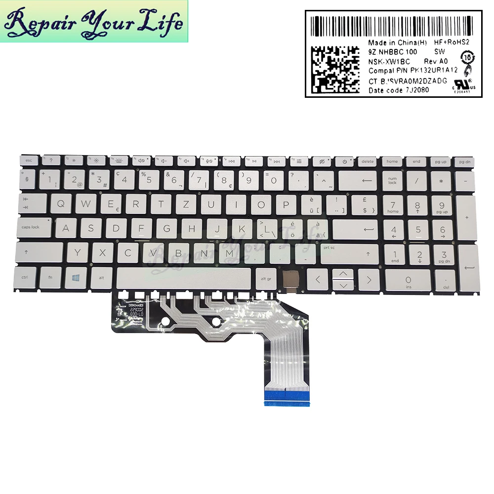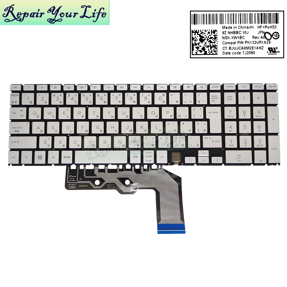 JPN backlit notebook Keyboard silver for HP ENVY x360 15-ED