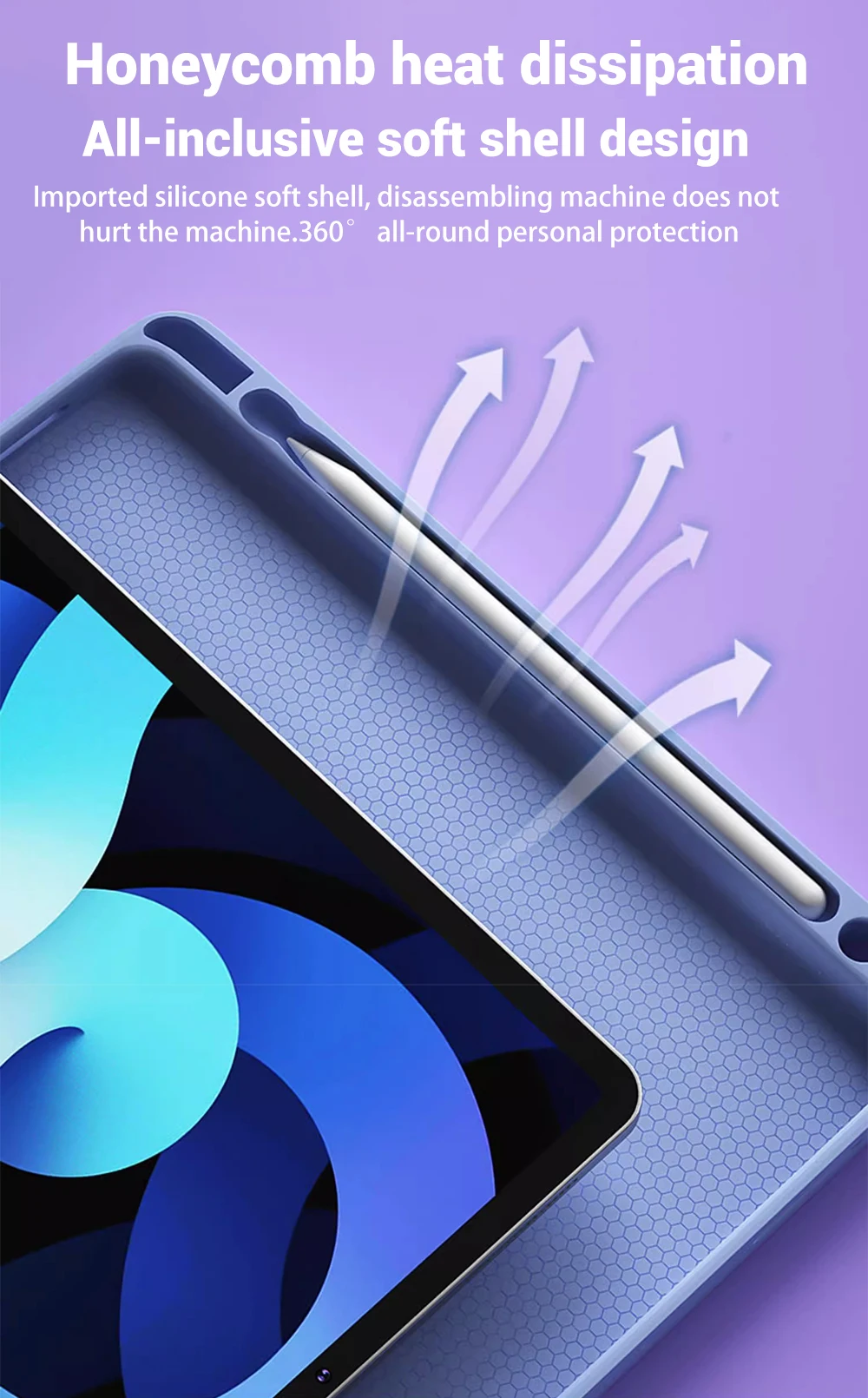 Tres ángulos de soporte para satisfacer las necesidades de todos para diferentes ángulos. El soporte es estable, no se soltará después de la fijación, y la cubierta protectora tiene un imán magnético que puede sujetar firmemente el teclado sin caerse. Si se tira Incluso, no se caerá. La posición del teclado se puede ajustar según diferentes ángulos