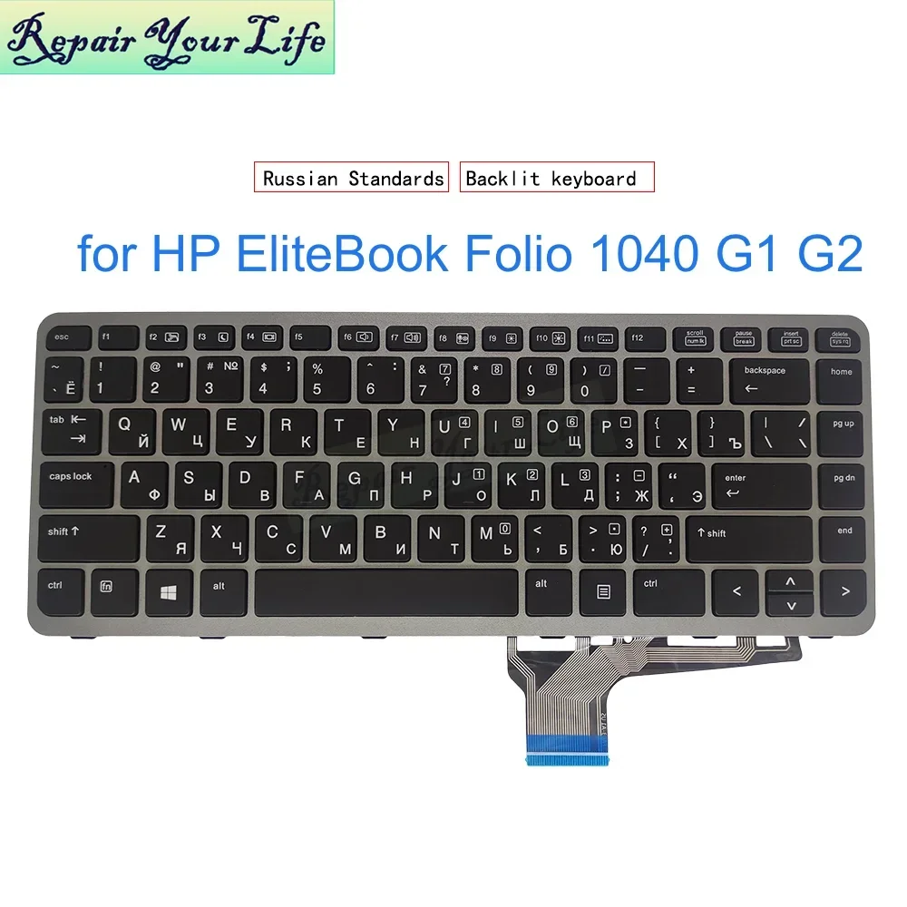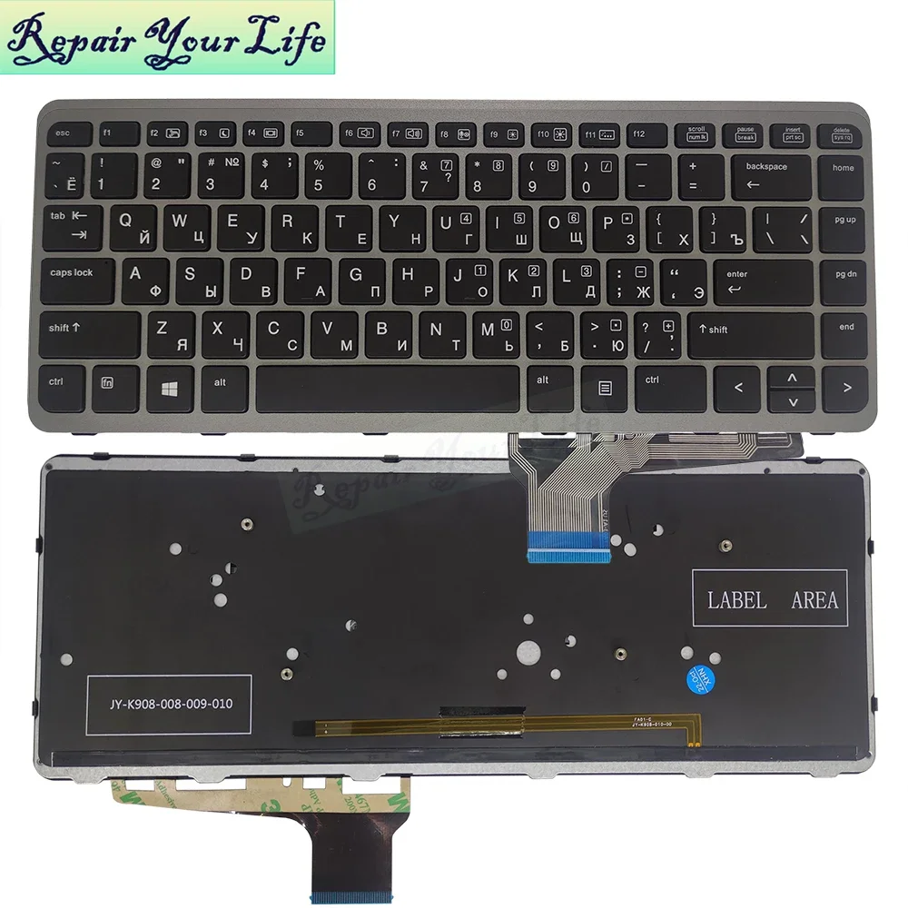 Comprar Teclado retroiluminado ruso RU para HP EliteBook Folio 1040 G1 G2, teclados para ordenador portátil, MP-13A13USJ442 con marco plateado 736933 -251 739563 -001