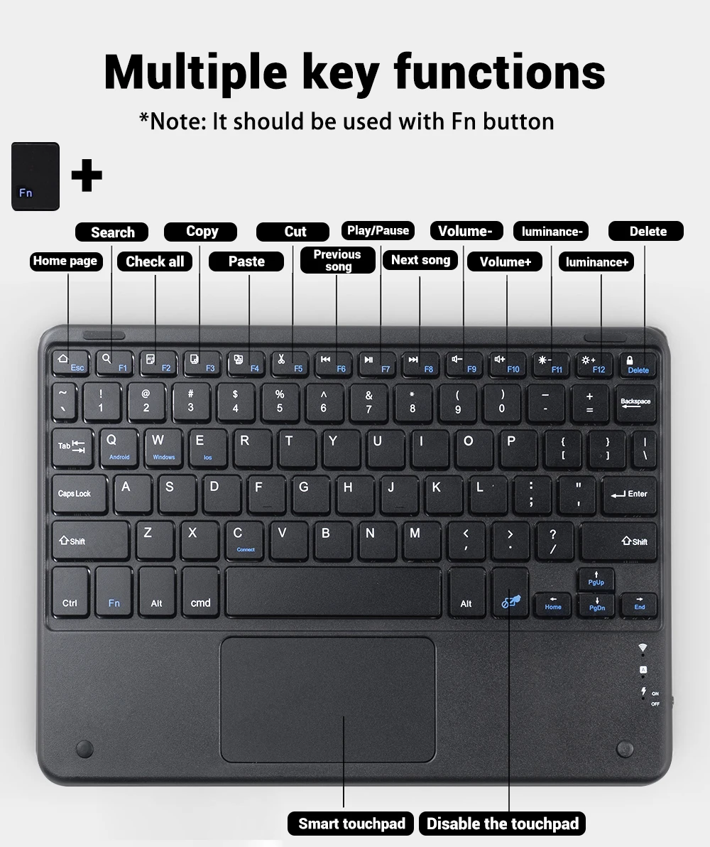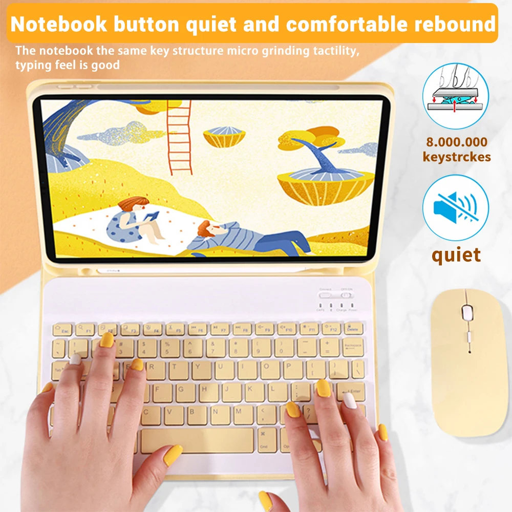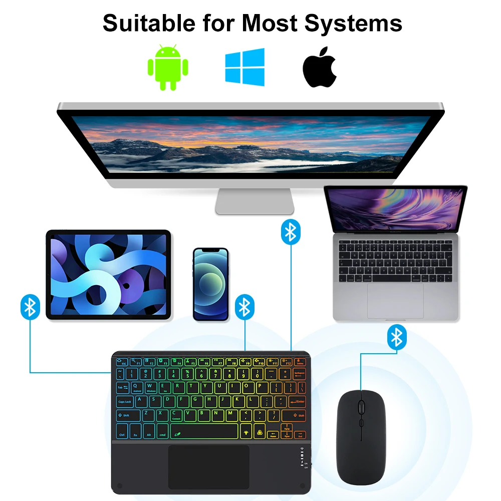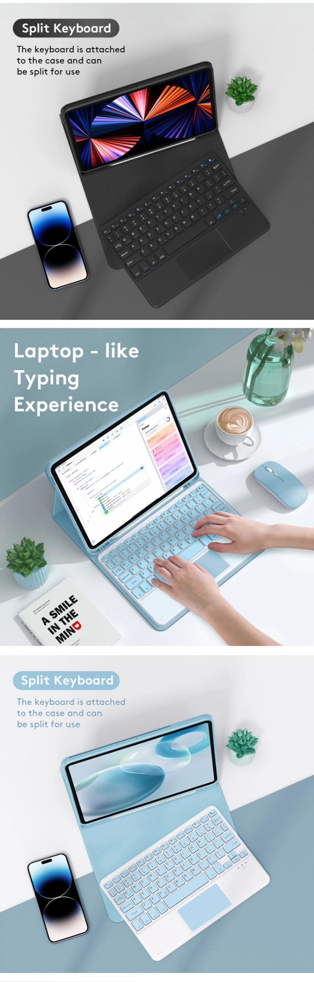 La combinación mágica de la cubierta del teclado, el diseño separable, el teclado y el mouse se pueden usar por separado, para vincular diferentes dispositivos para usar, viajar cómodamente, los pequeños y livianos solo ocupan la posición de una tableta, como sostener una bolsa pequeña, adecuada para trabajar y estudiar, no No es necesario llevar una computadora portátil voluminosa para viajar, ¡como regalo para amigos, familiares y niños es una muy buena opción! Póngase en contacto con el servicio de atención al cliente del vendedor para recibir pequeños obsequios y cupones. (Descuento por compra al por mayor)