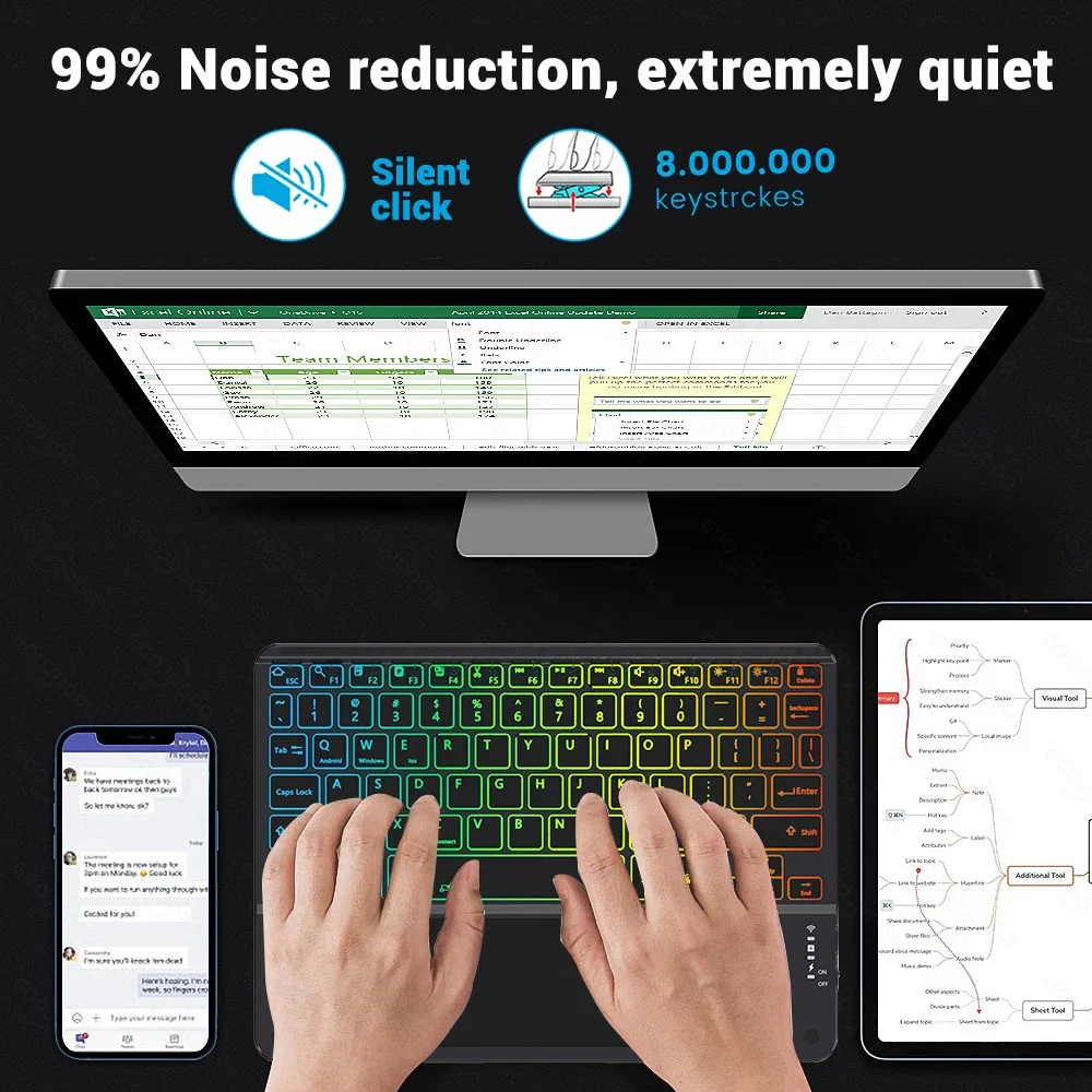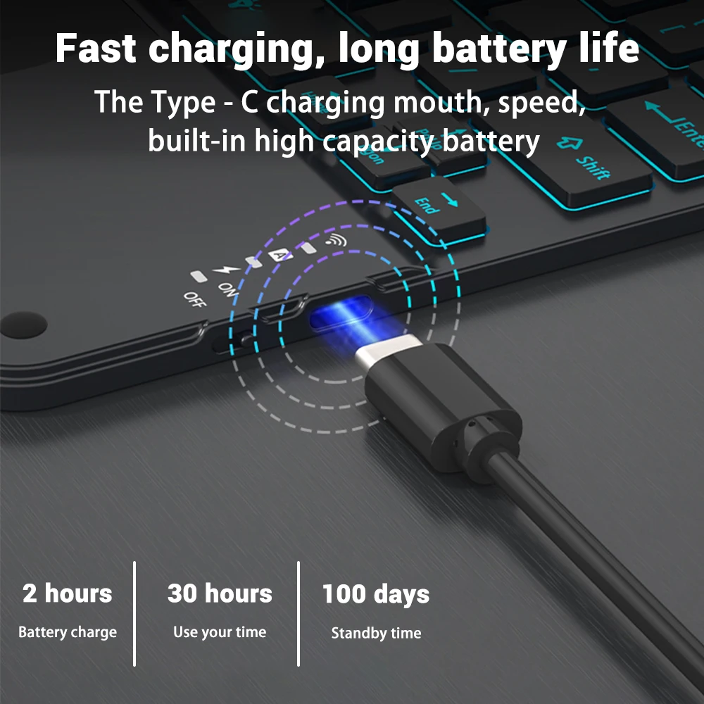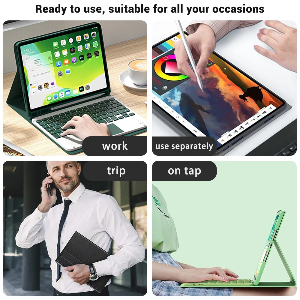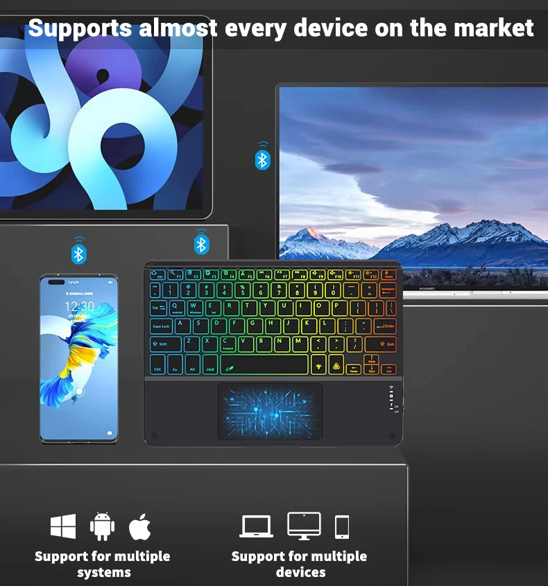 La combinación mágica de la cubierta del teclado, el diseño separable, el teclado y el mouse se pueden usar por separado, para vincular diferentes dispositivos para usar, viajar cómodamente, los pequeños y livianos solo ocupan la posición de una tableta, como sostener una bolsa pequeña, adecuada para trabajar y estudiar, no No es necesario llevar una computadora portátil voluminosa para viajar, ¡como regalo para amigos, familiares y niños es una muy buena opción! Póngase en contacto con el servicio de atención al cliente del vendedor para recibir pequeños obsequios y cupones. (Descuento por compra al por mayor)