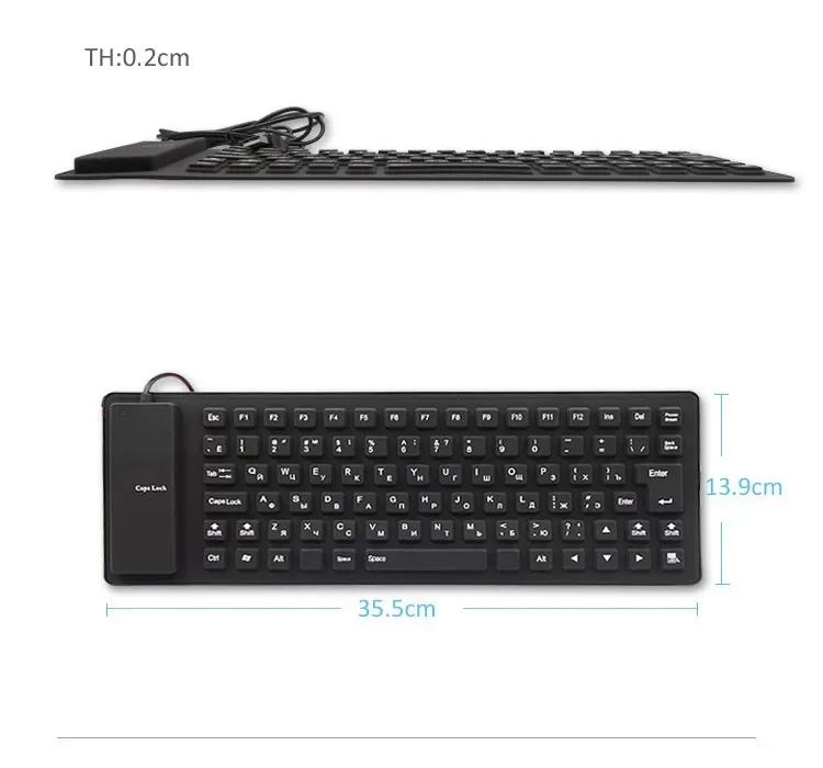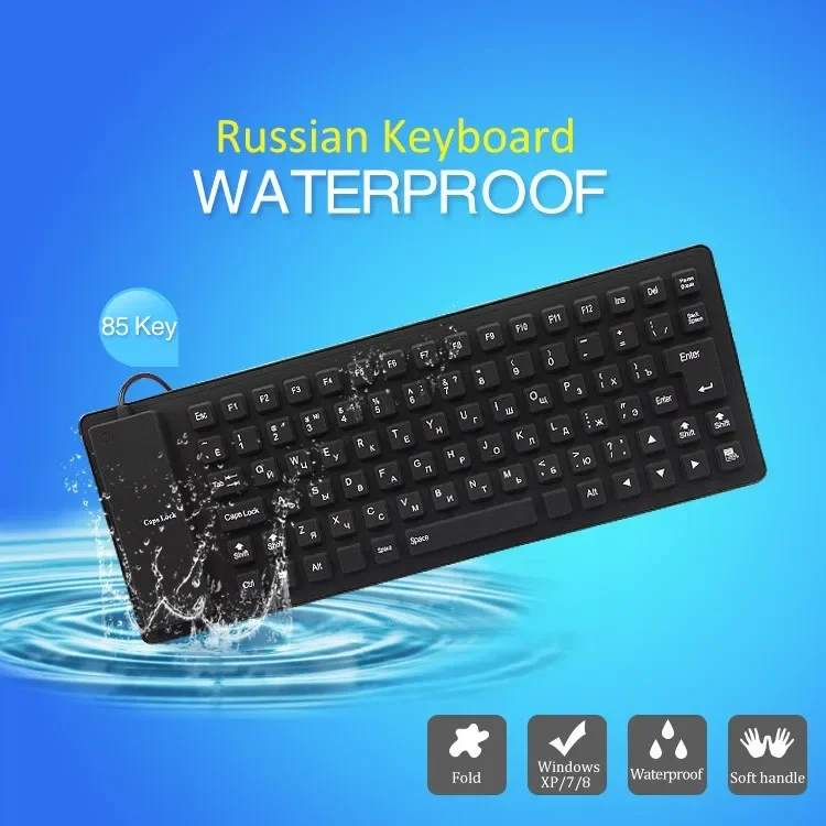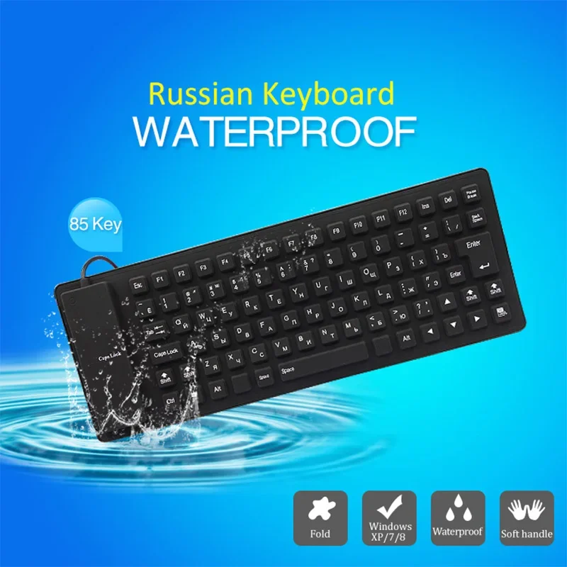 Teclado de silicona con interfaz USB y letras, versión rusa de 85 teclas, Teclado de diseño ruso para PC, portátil, teclado plegable con cable, resistente al agua