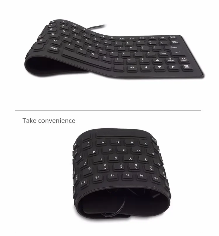 Teclado USB 2.0 flexible que es práctico, duradero y cómodo.