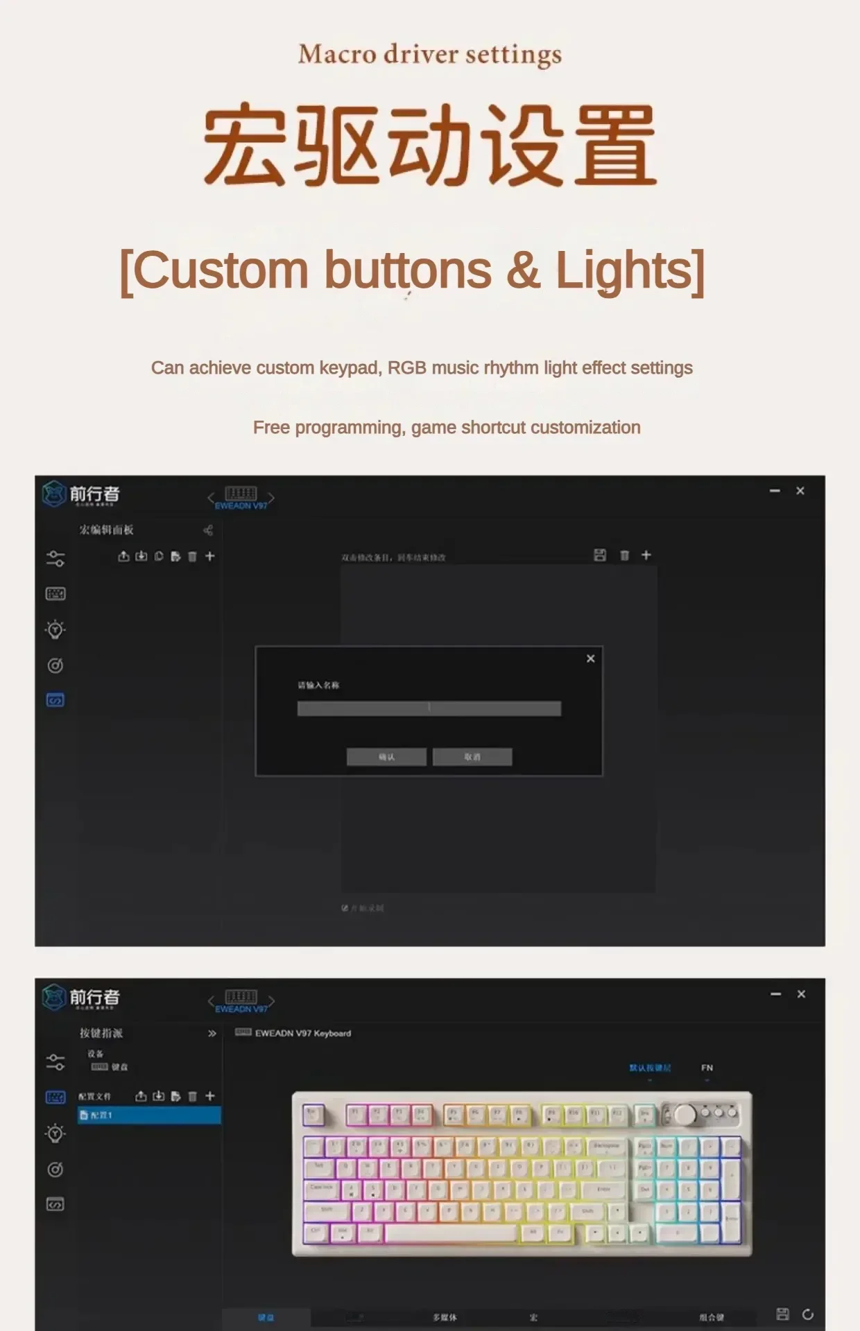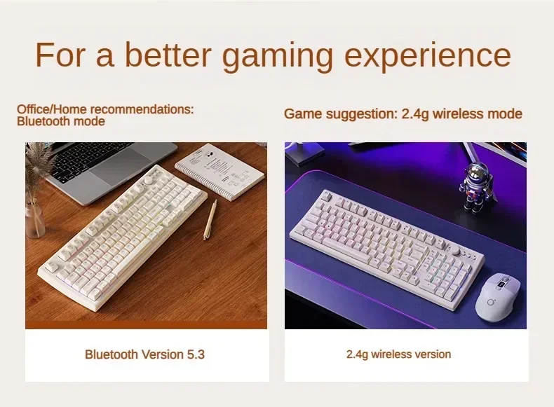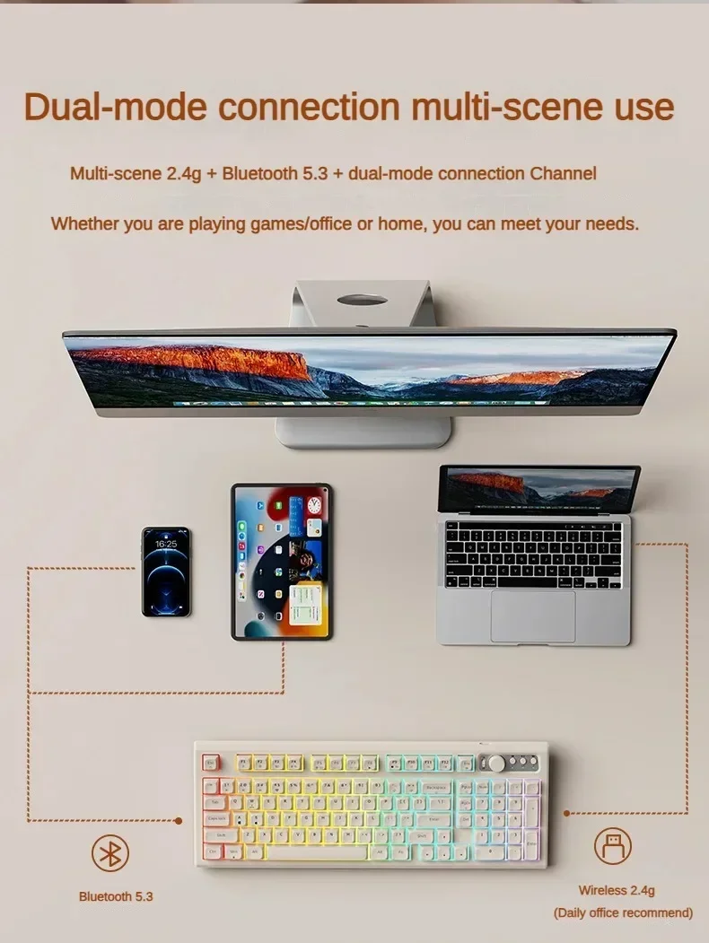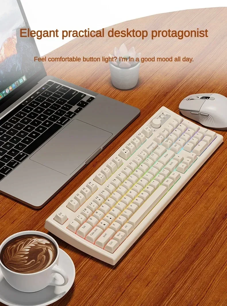 Eweadn V97 Teclado mecánico inalámbrico silencioso Diseño de 97 teclas Perilla multimedia retroiluminada RGB Teclado inalámbrico para juegos recargable