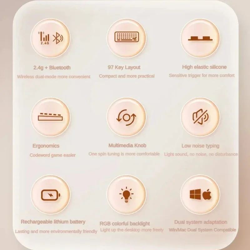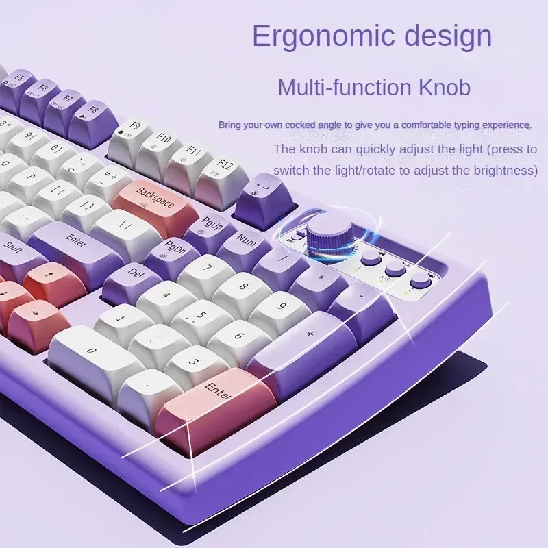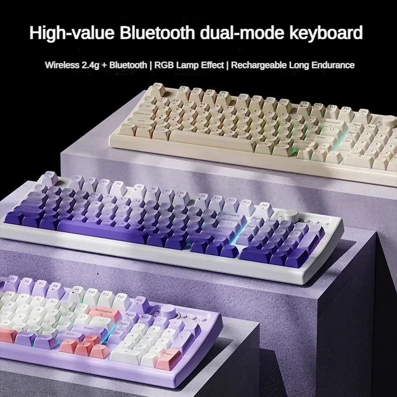 Eweadn V97 Teclado mecánico inalámbrico silencioso Diseño de 97 teclas Perilla multimedia retroiluminada RGB Teclado inalámbrico para juegos recargable