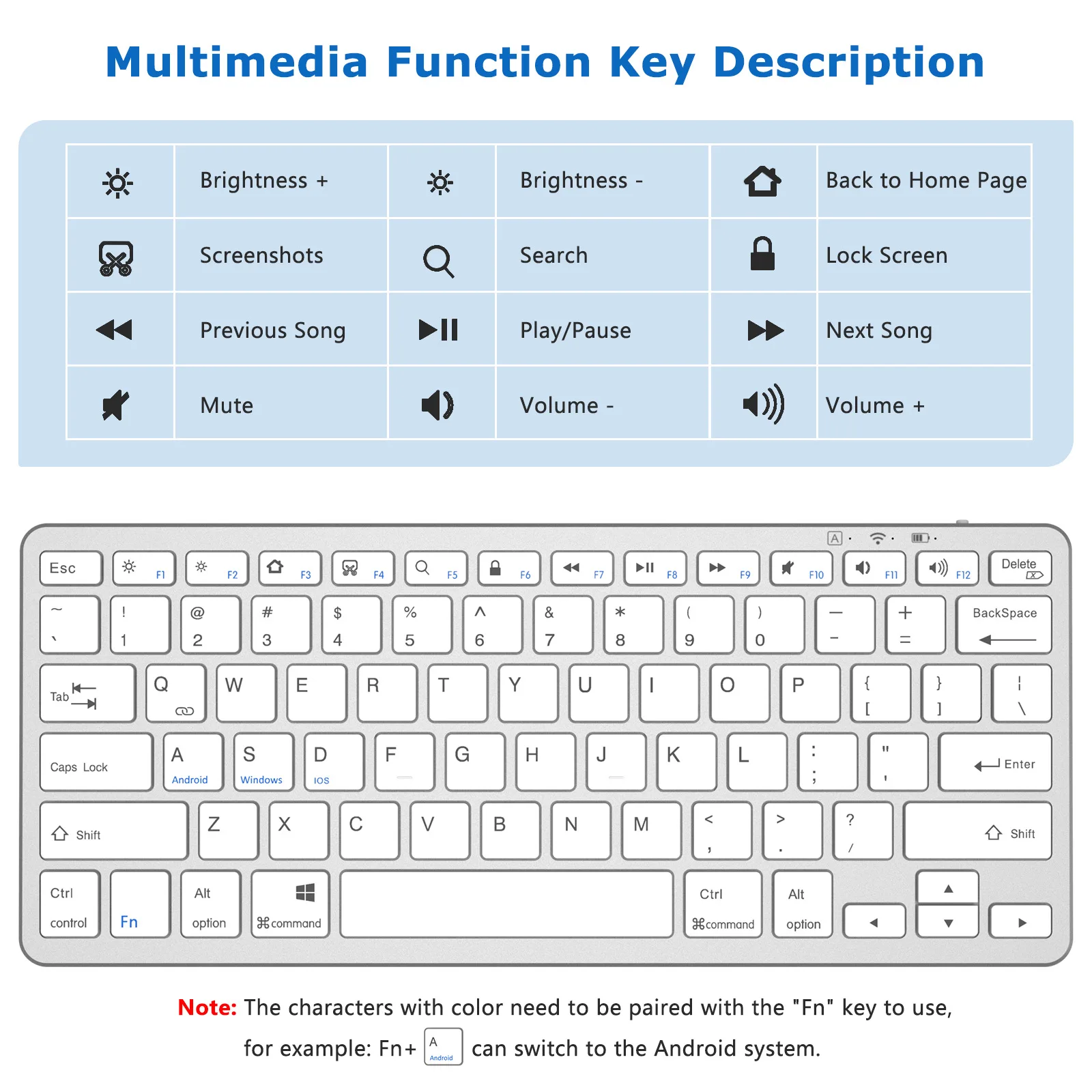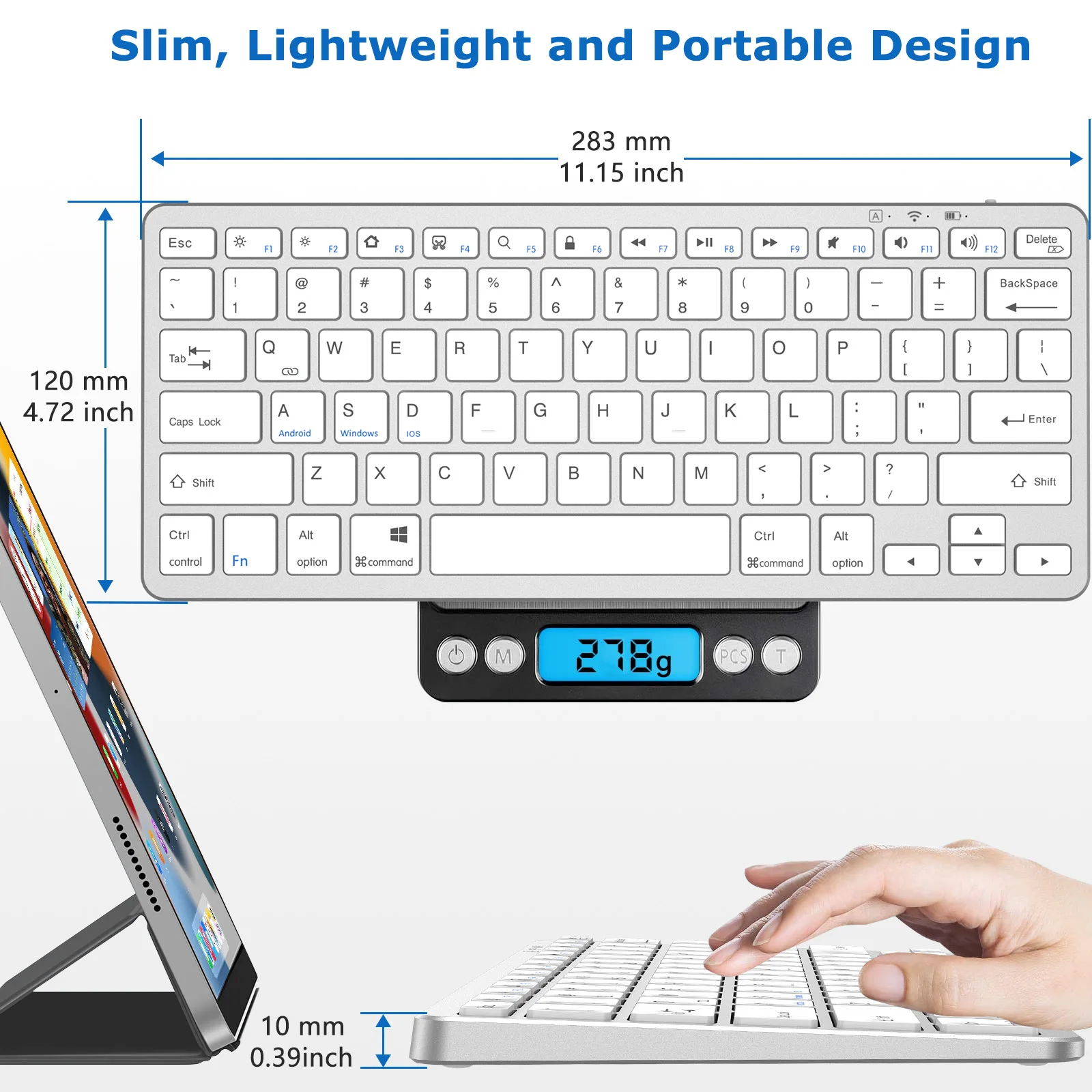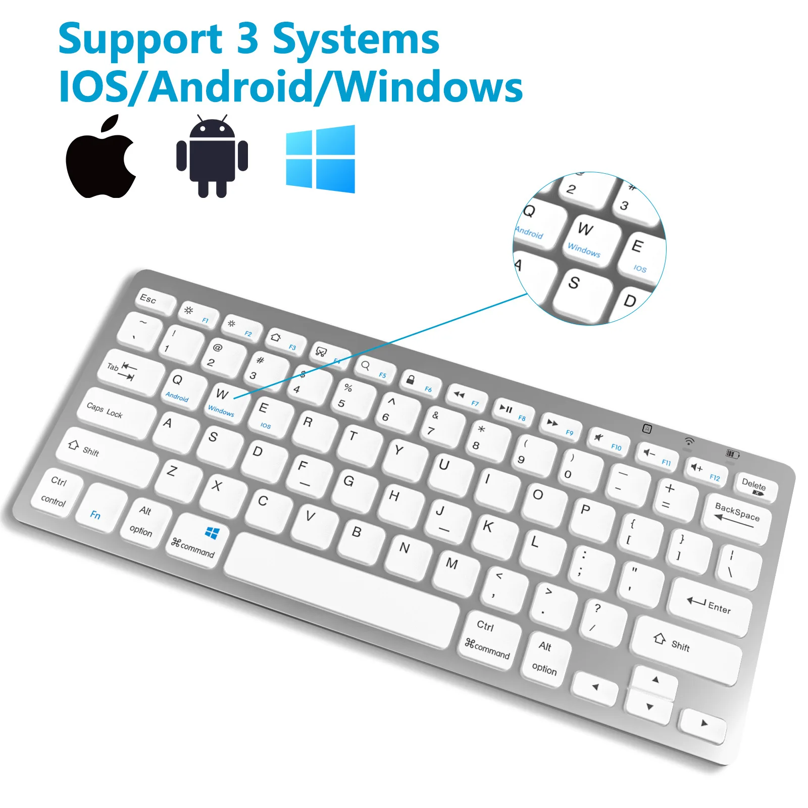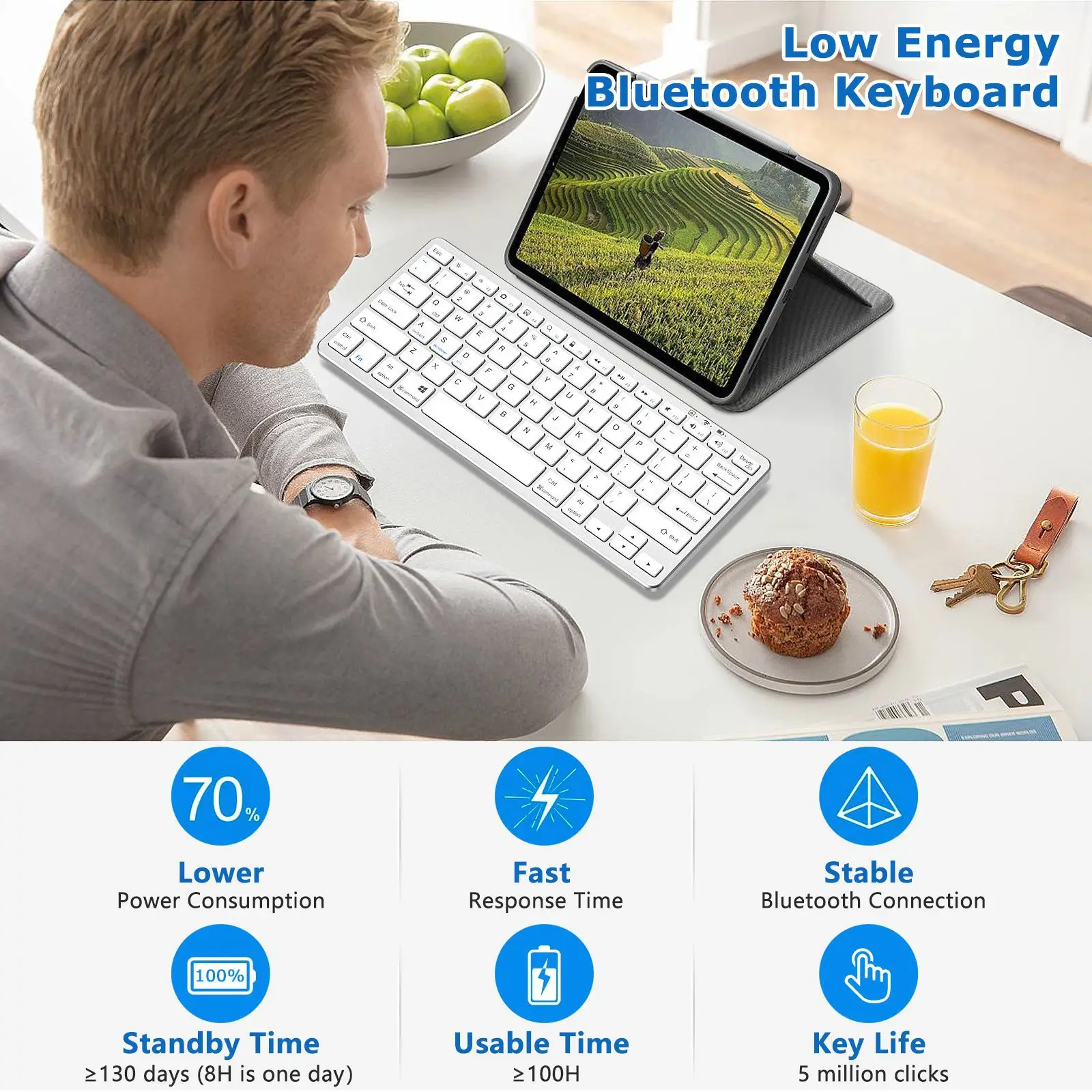 Comprar Teclado de tableta español inalámbrico para tableta iPad Inglés Español Ruso Árabe Portugués Francés Italiano Alemán Japonés Teclado portátil Diseño delgado y liviano para iOS Android Windows Batería incorporada grande