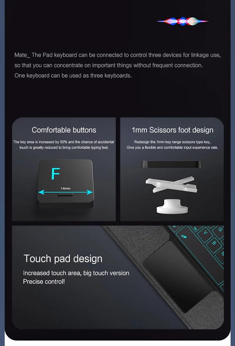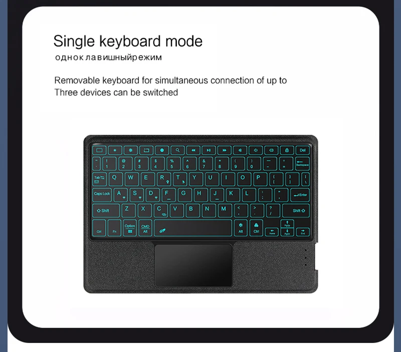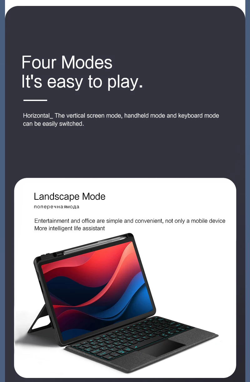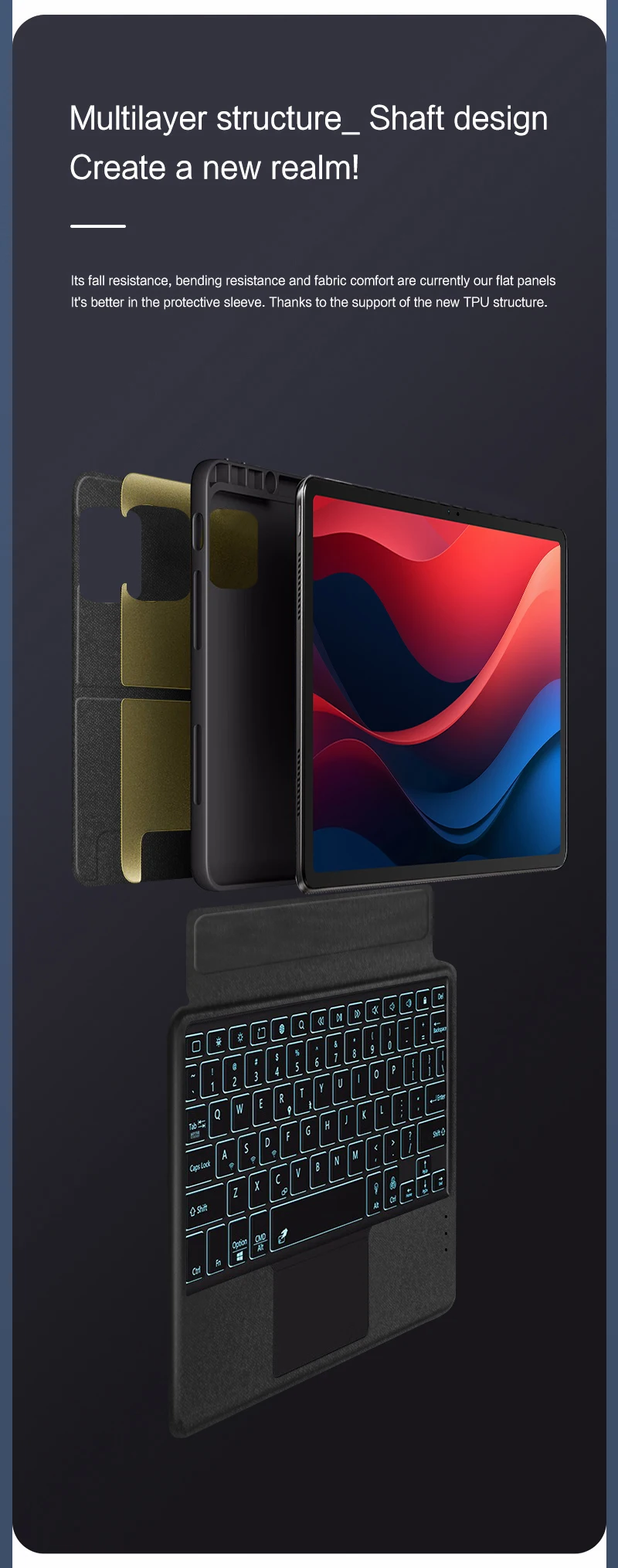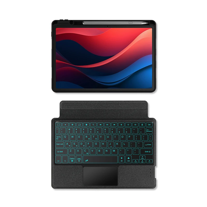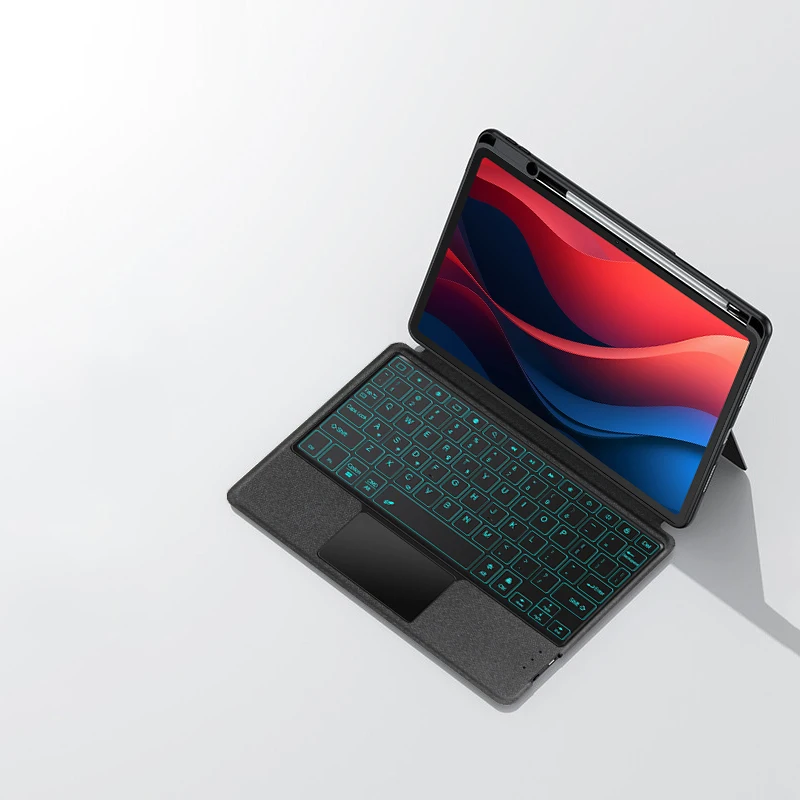 Esta es una funda para teclado desmontable, funda protectora de TPU suave, que puede proteger eficazmente su tableta.El teclado y la funda protectora se pueden separar. Teclado con retroiluminación y TouchPad.