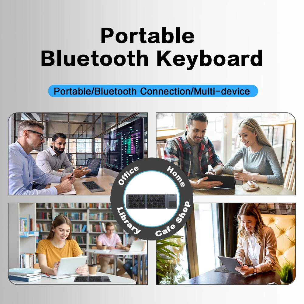 Teclado plegable premium: diseño de 64 teclas con mecanismo de interruptor de tijera y cubierta de cuero PU.Escriba como en un teclado de tamaño completo.Hasta 65 horas de duración de la batería, 100 días en espera.Se conecta a 3 dispositivos a través de Bluetooth.Cambie fácilmente entre el teclado numérico y el panel táctil.No se necesita mouse separado, distancia operativa de Bluetooth de hasta 10 metros (33 pies)