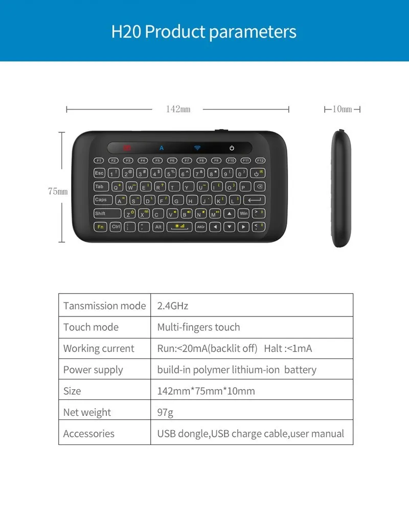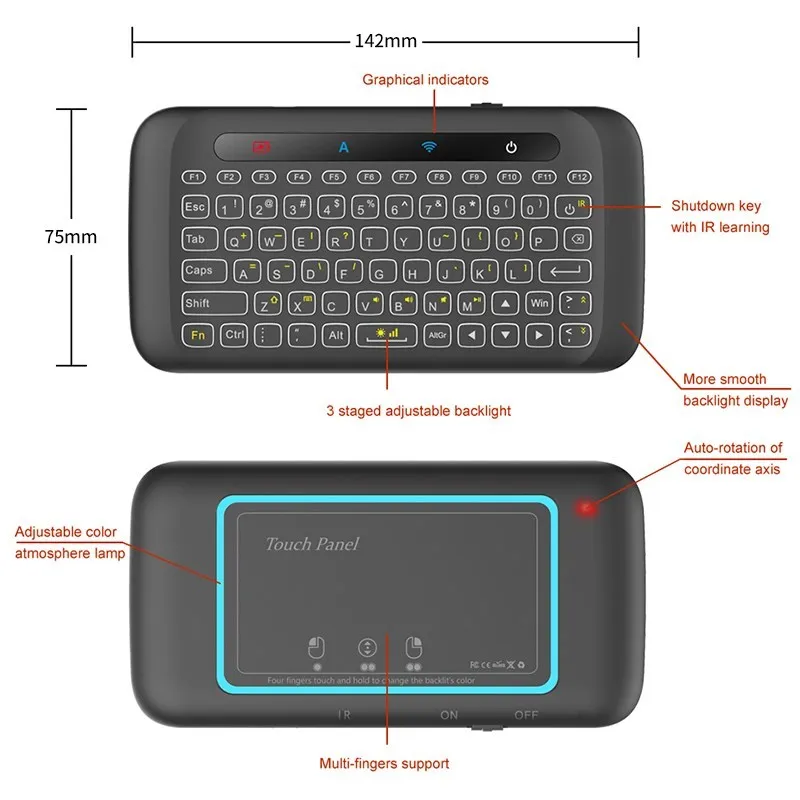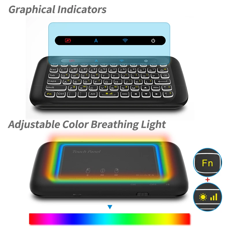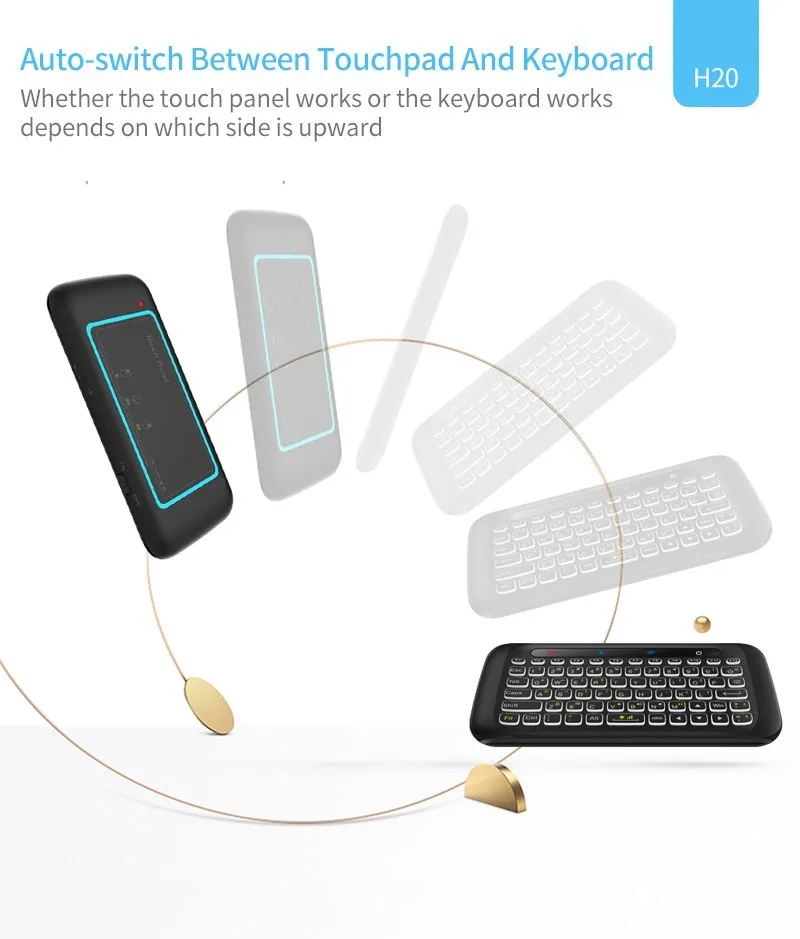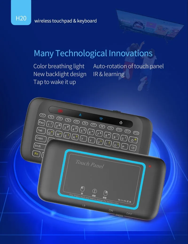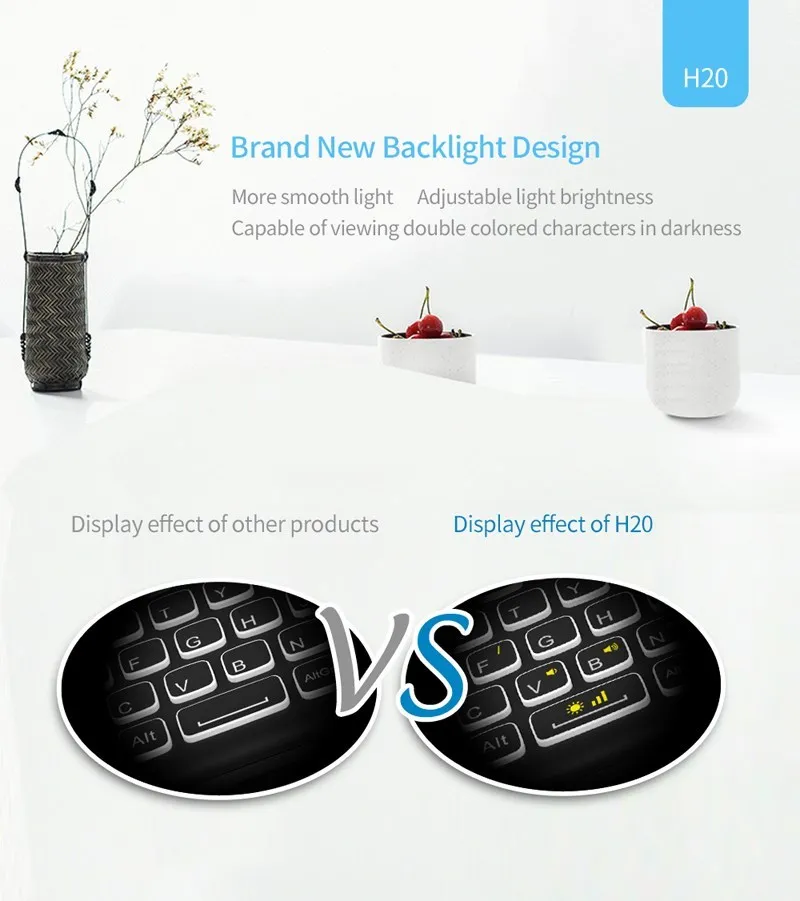 Comprar Teclado táctil con retroiluminación H20, Mouse de aire inalámbrico de 2,4 Ghz, Control remoto IR Plug And Play para Android TV Box, ordenador portátil, PC y tableta