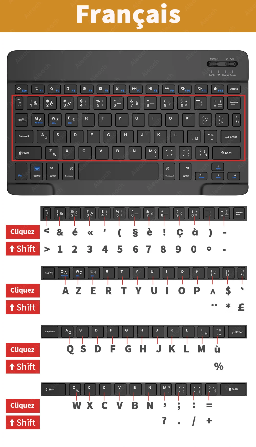Teclado francés + inglés: seleccione el método de entrada del teclado AZERTY francés (Francia).