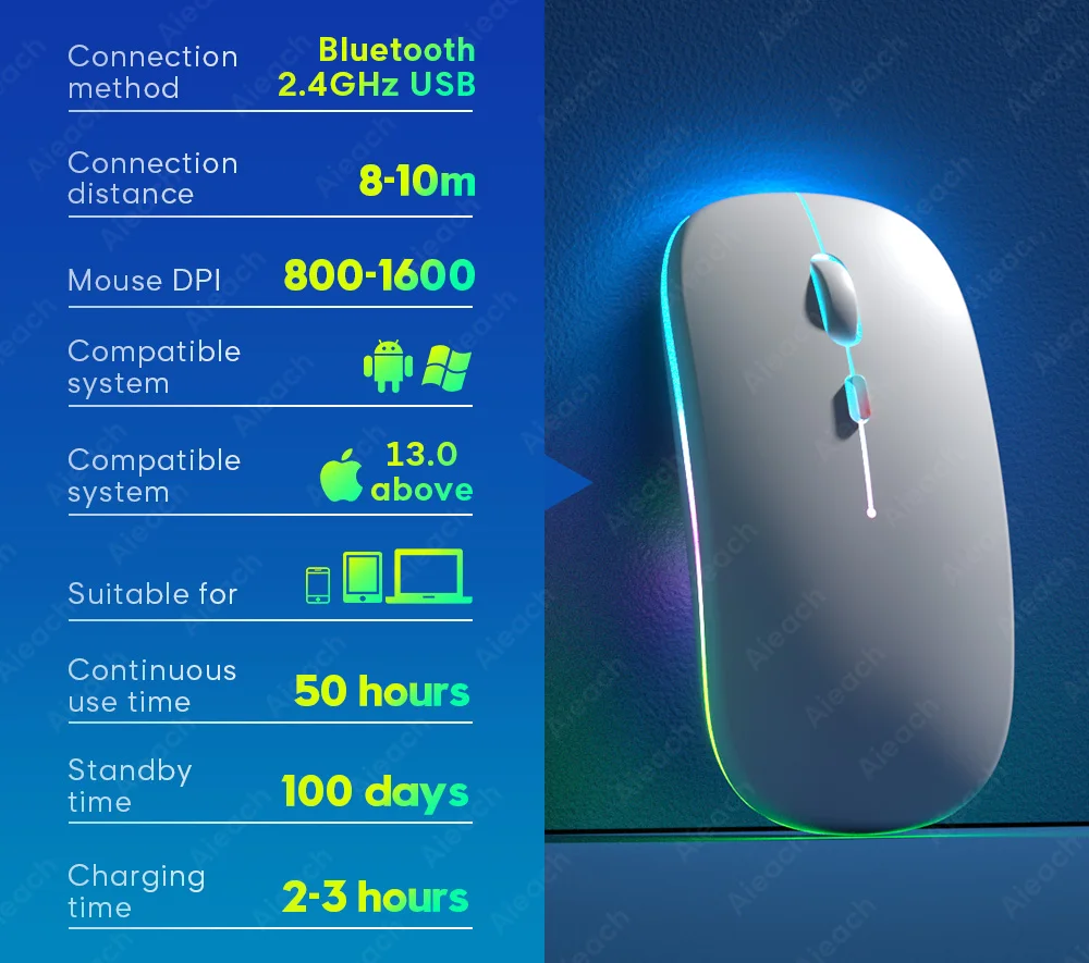 El ratón tiene una luz de respiración colorida, que aporta diferentes colores al trabajo.