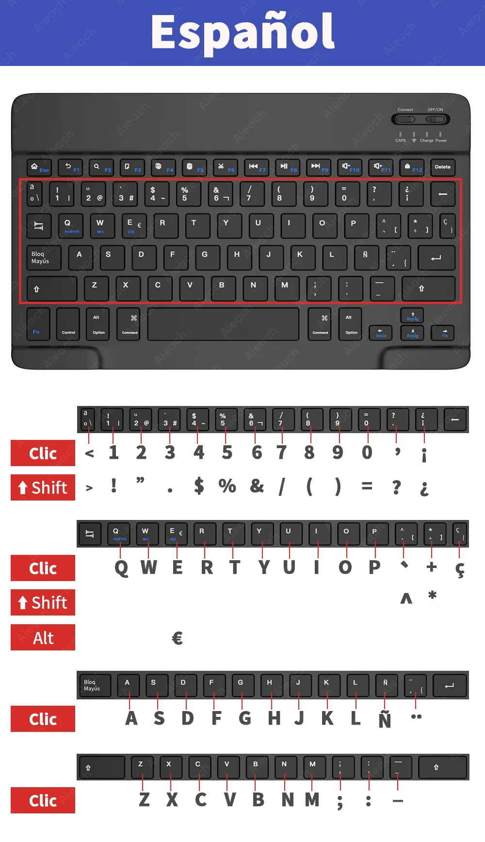 R: Presione Fn+Q(Android)/Fn+W(Windows)/Fn+E(iOS) para cambiar el sistema.Los diferentes atajos del sistema son diferentes.(Cambiar al sistema incorrecto afectará la entrada de contenido del teclado).