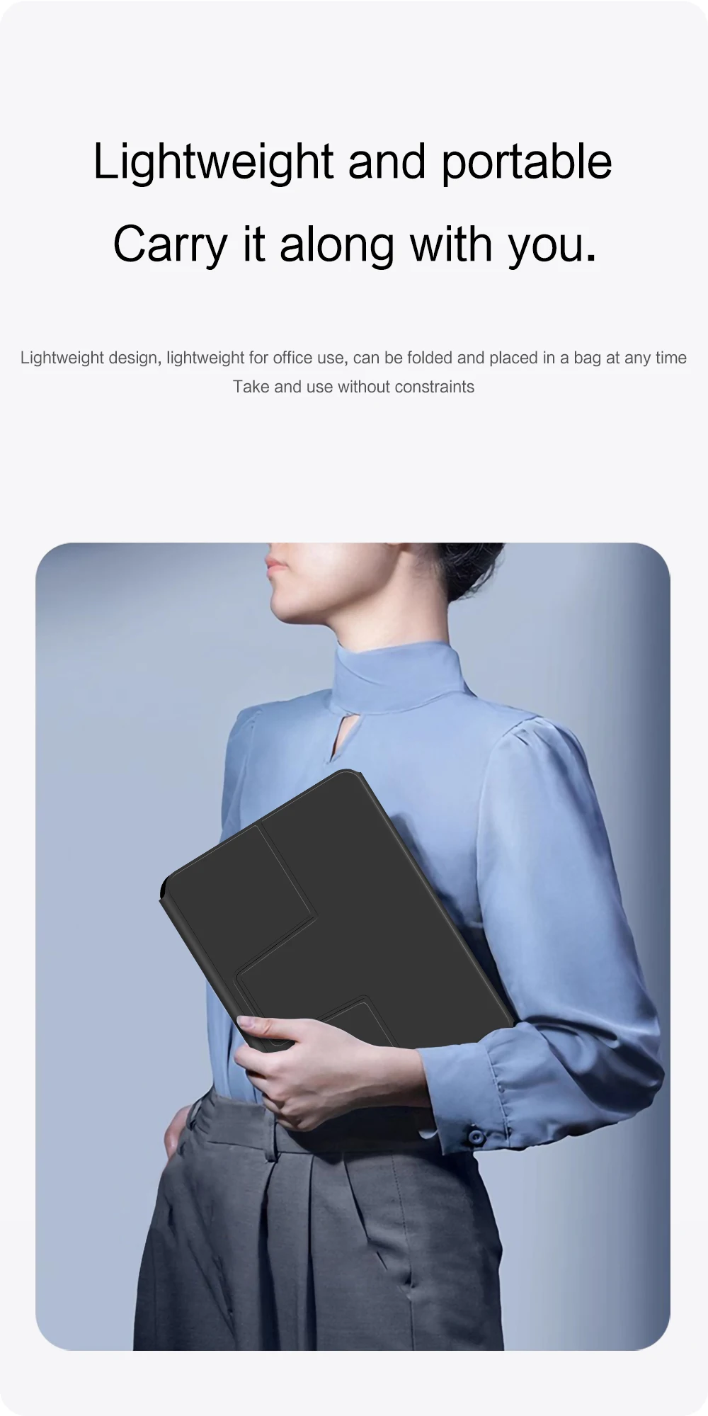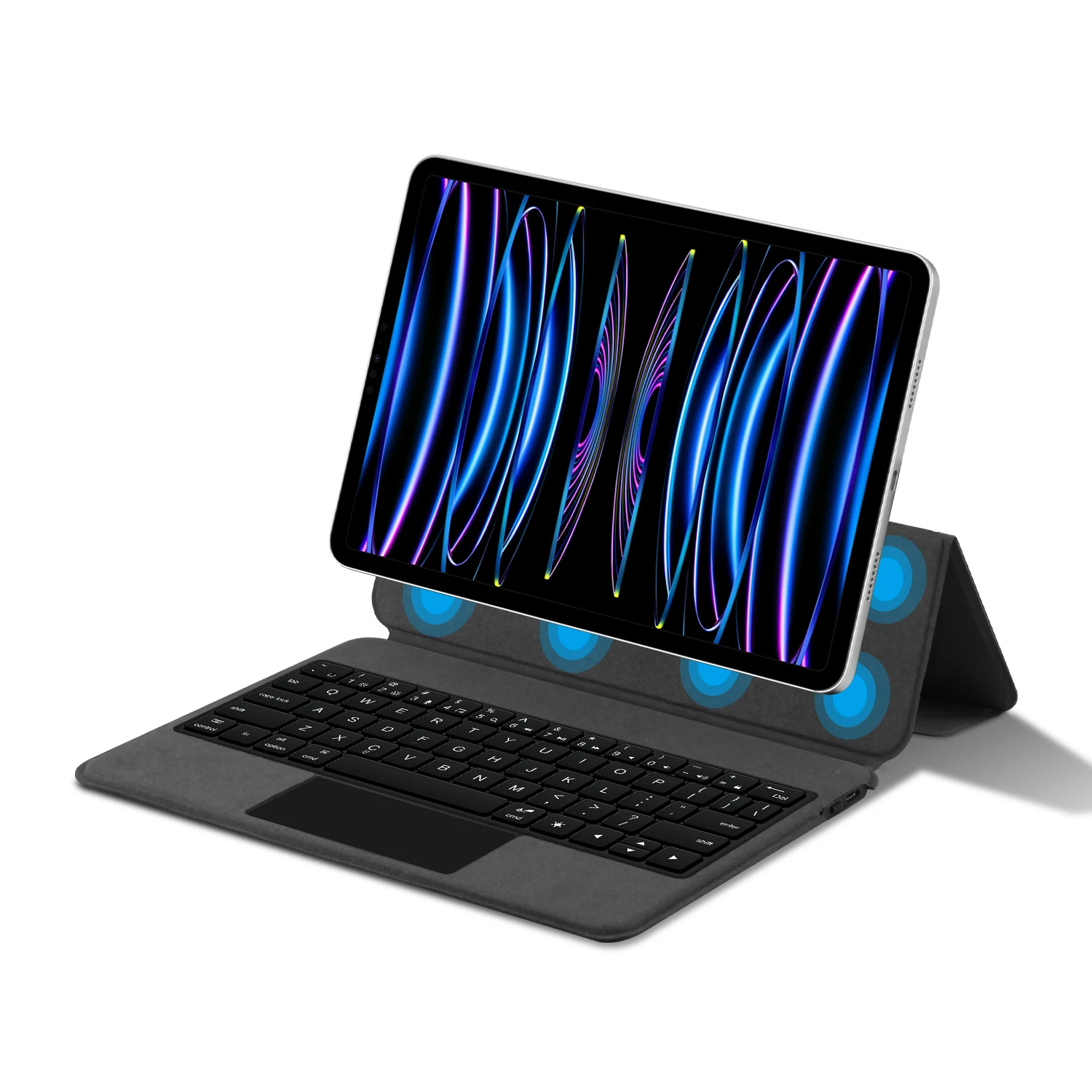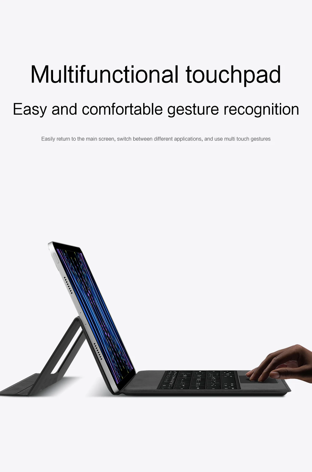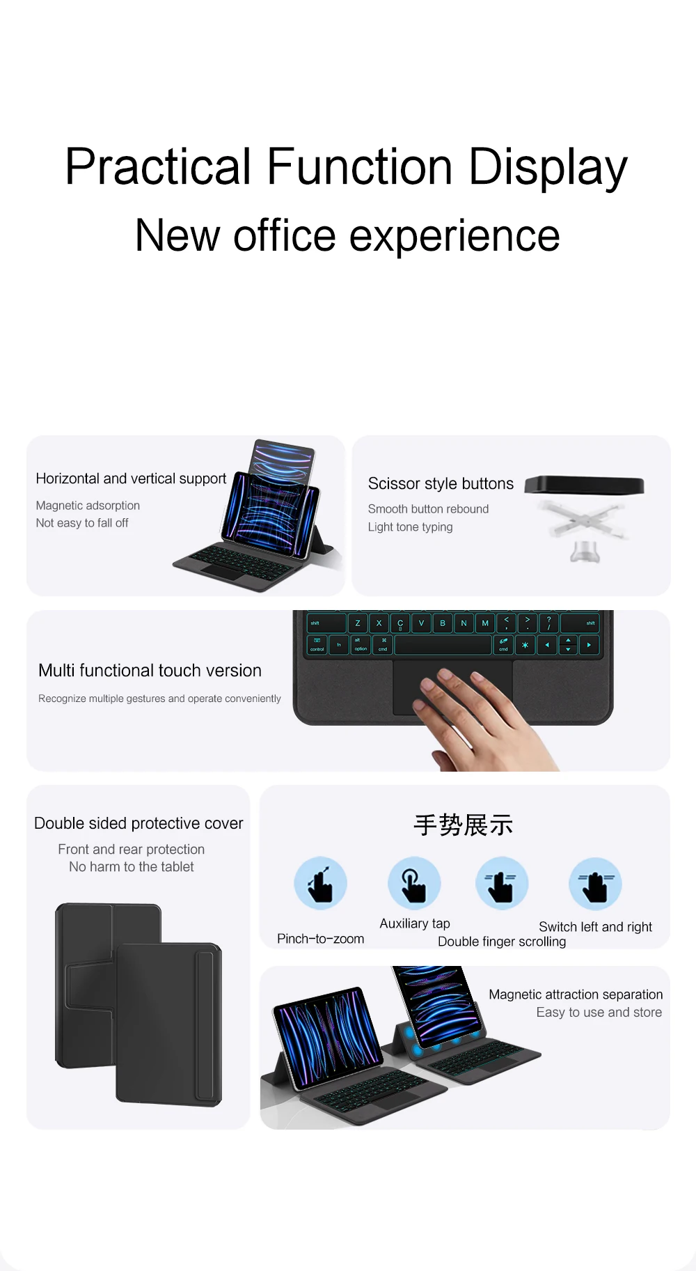 Este es un teclado magnético multifuncional "todo en uno".El iPad puede ser compatible horizontal y verticalmente, y la parte posterior del teclado está equipada con un soporte que puede ajustar el ángulo para satisfacer sus diferentes necesidades diarias.