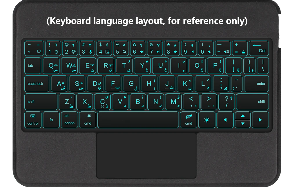 Versión en varios idiomasTeclado: letras en inglés y letras de idioma talladas juntas.【[Por ejemplo, si elige francés, el teclado mostrará letras en inglés y francés.Tenga en cuenta que las mismas letras no se grabarán repetidamente]】(Debido a la diferencia en la cantidad de teclas del teclado en comparación con un teclado de oficina normal, algunas posiciones especiales de grabado de caracteres son las mismas, lo cual es un fenómeno normal)