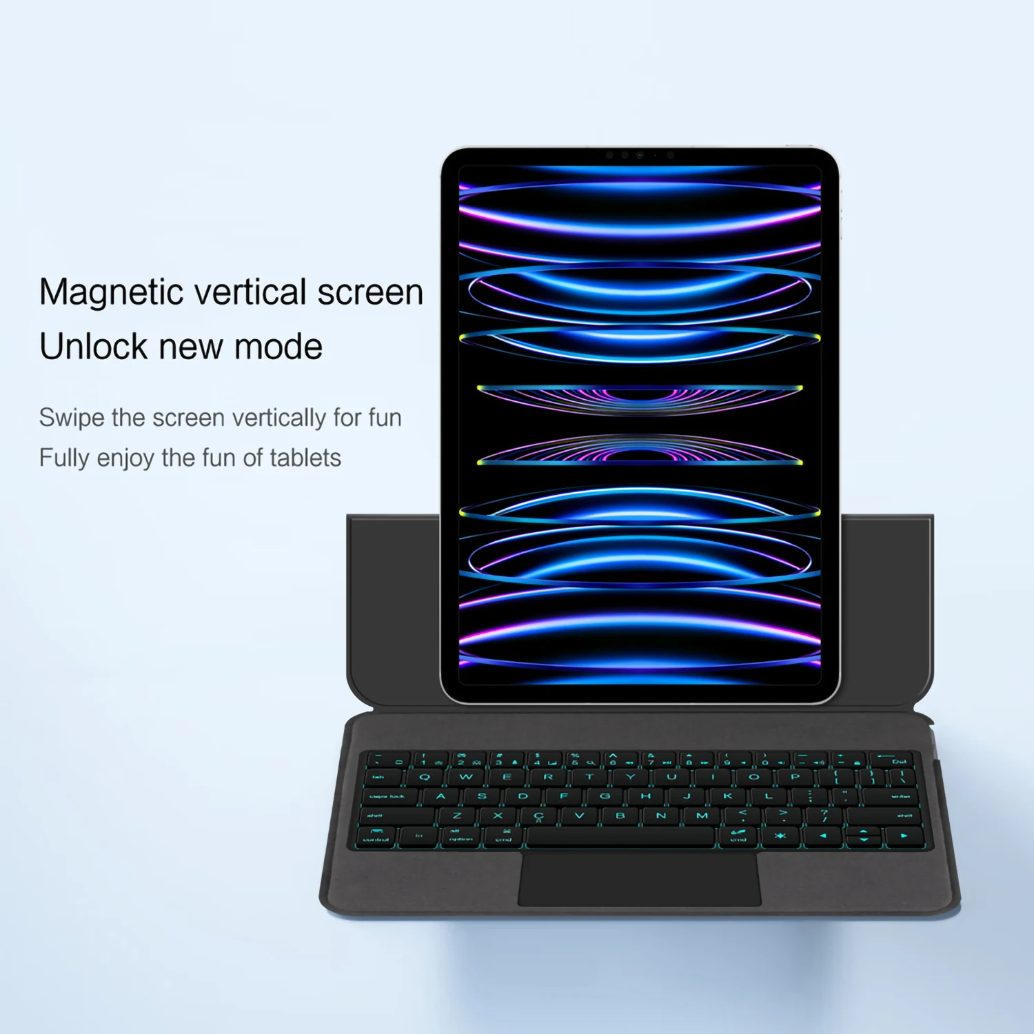 Separación magnética, retroiluminación, panel táctil, soporte multiángulo, conexión inalámbrica Bluetooth