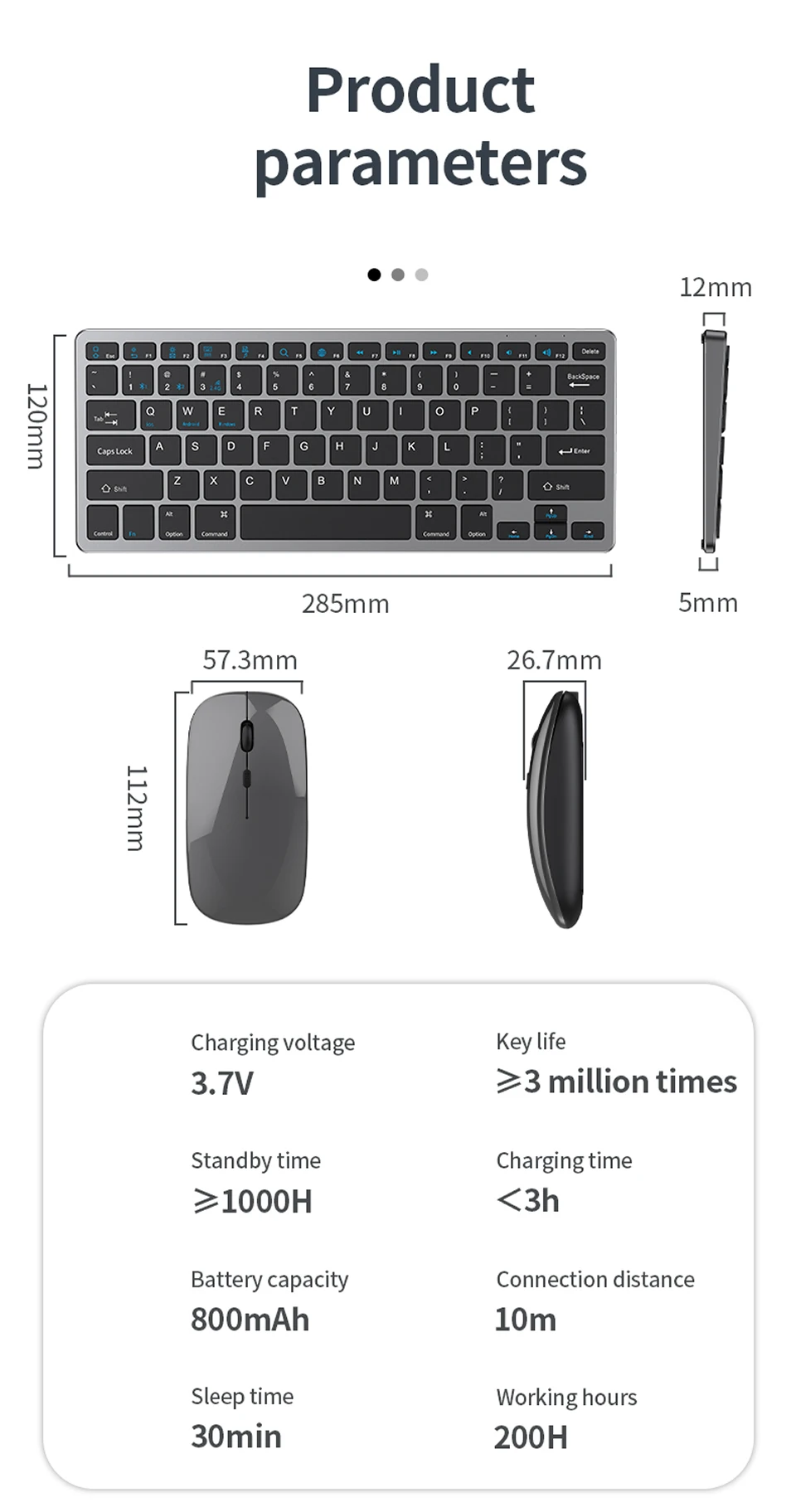 Bluetooth 5.0 & 2.4G Wireless Keyboard and Mouse Combo Mini Multimedia