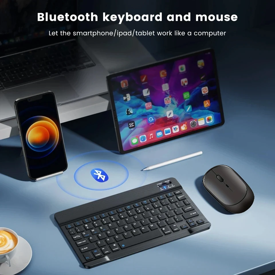 Comprar Teclado y ratón inalámbricos recargables, compatible con Bluetooth, para ordenador portátil, tableta, teléfono, Ipad, Android, iOS, Windows