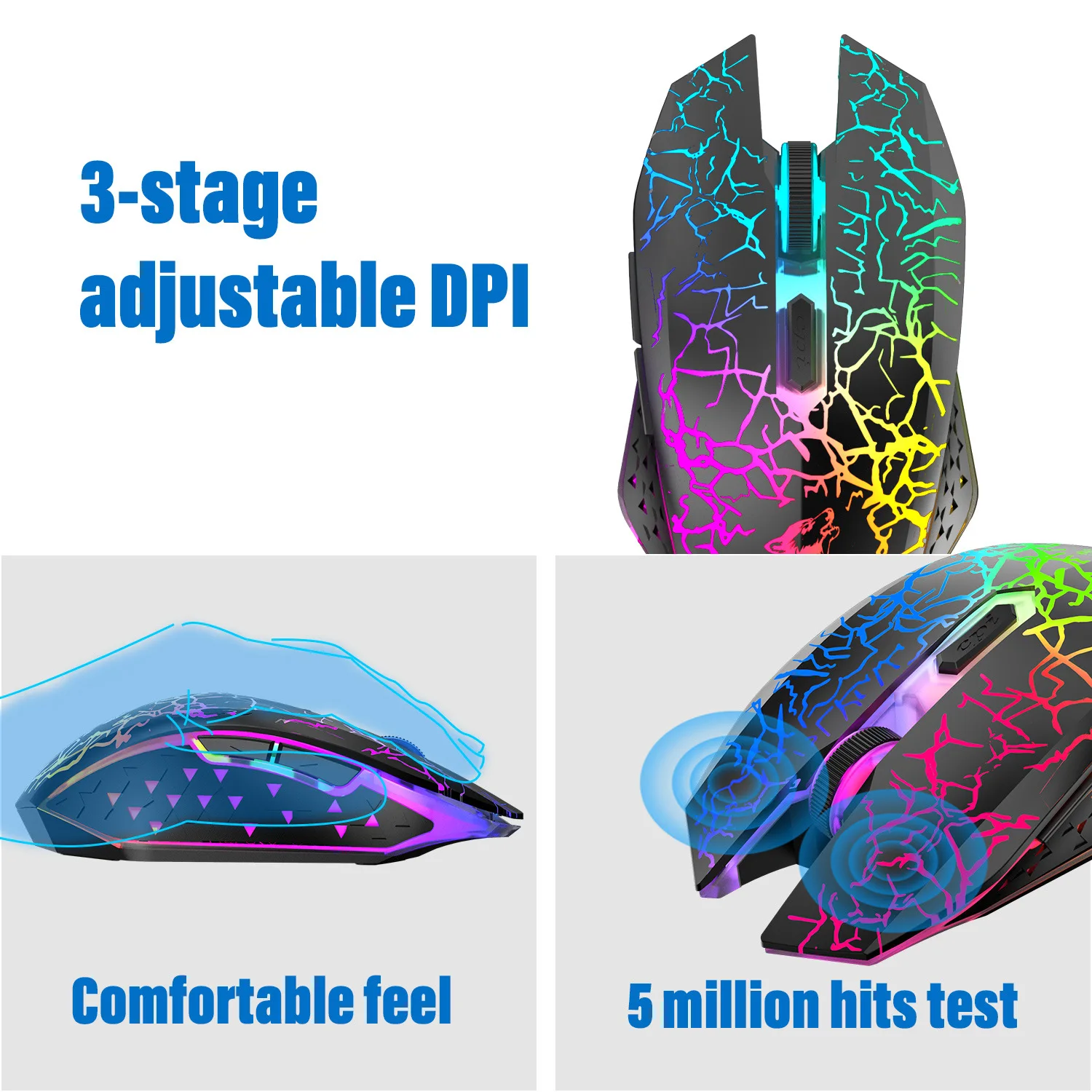 Comprar Teclado y ratón inalámbricos T61 retroiluminados, teclado portátil silencioso para juegos de 61 teclas, recargable, arcoíris, nuevo