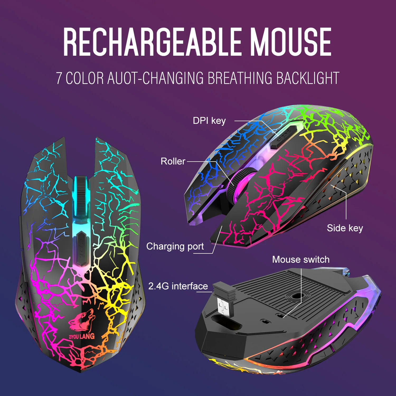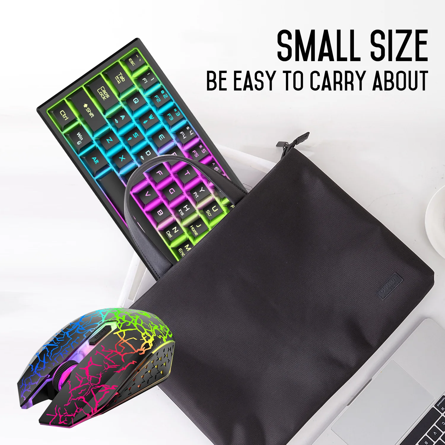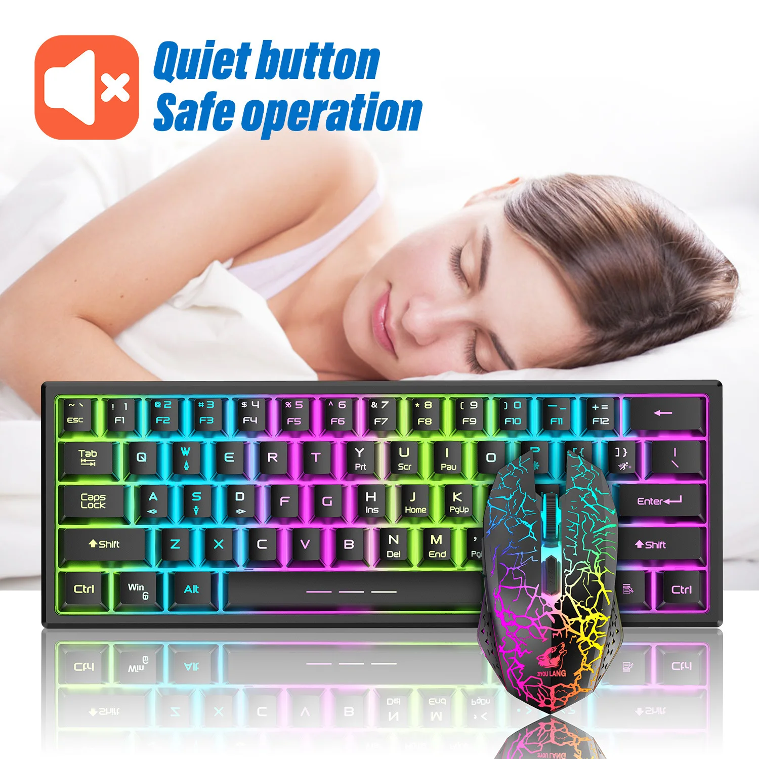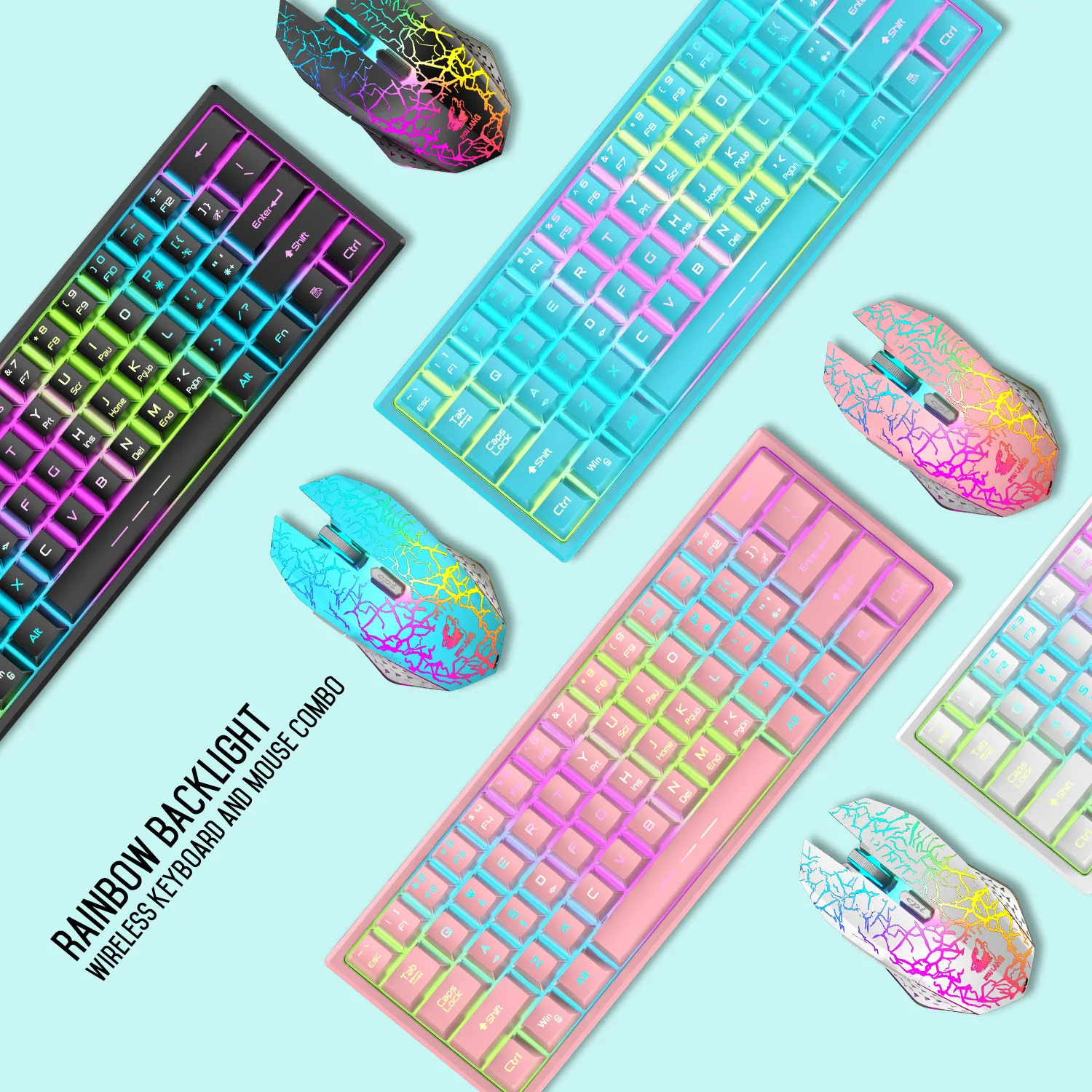 Nuevo juego de teclado y ratón retroiluminado de arcoíris inalámbrico recargable T61, teclado portátil silencioso para juegos de 61 teclas