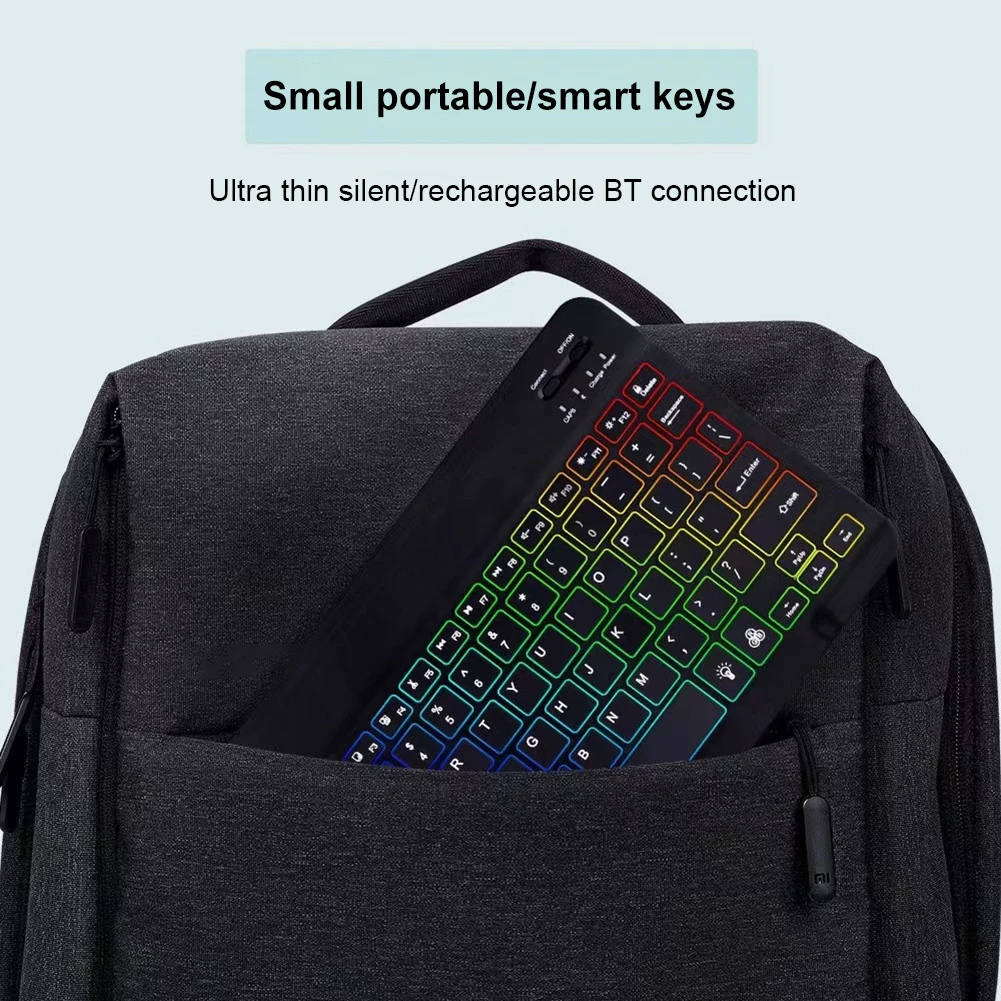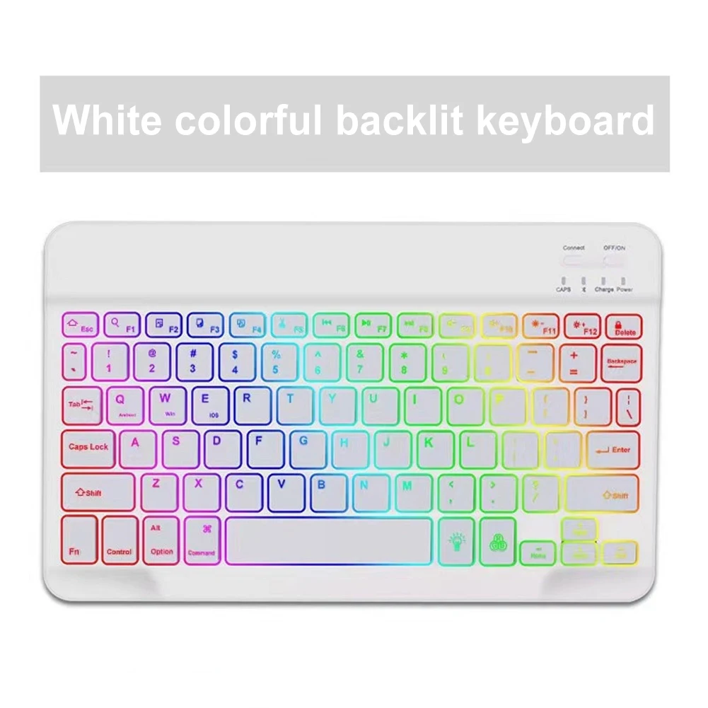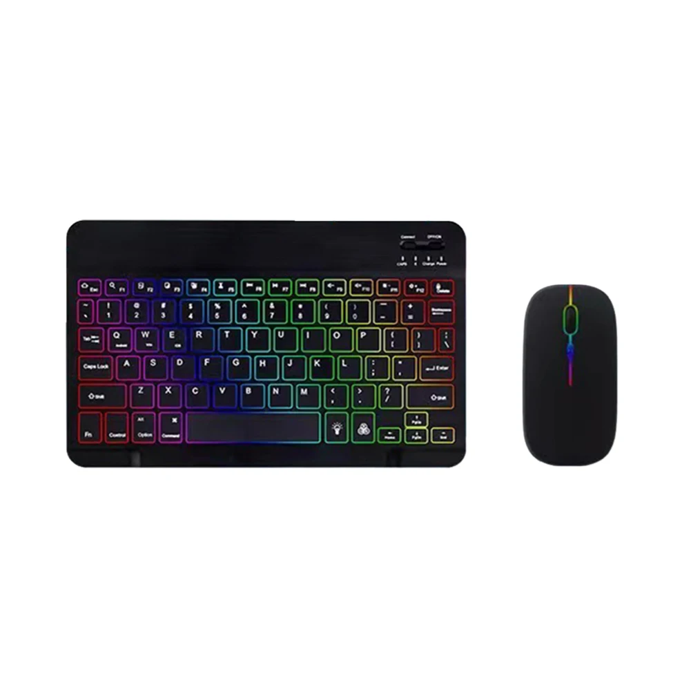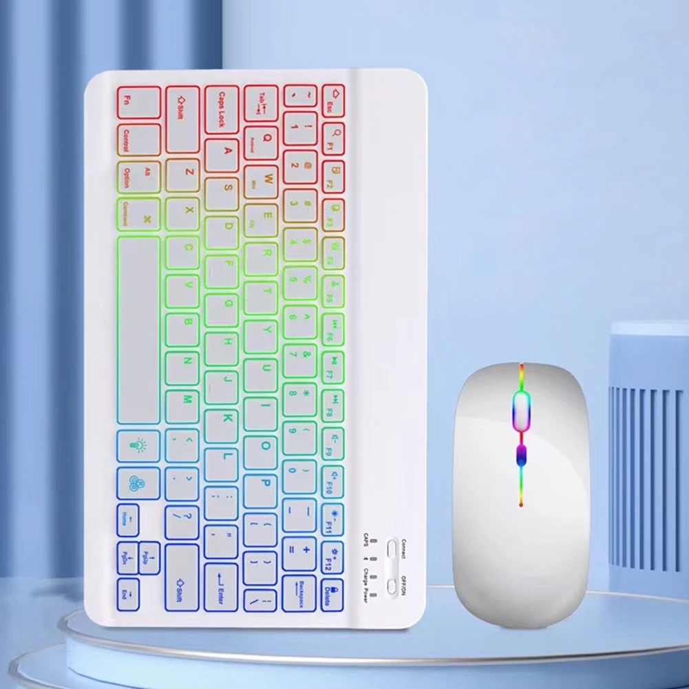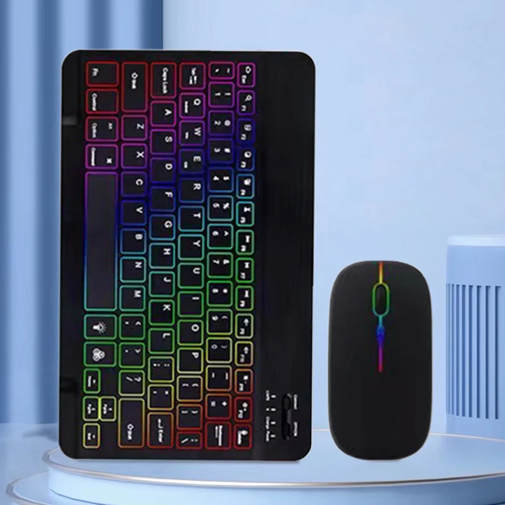 Comprar Teclado y ratón RGB Bluetooth, teclado inalámbrico recargable para iPad, tableta, Android, iOS, Windows, teclado con retroiluminación arcoíris