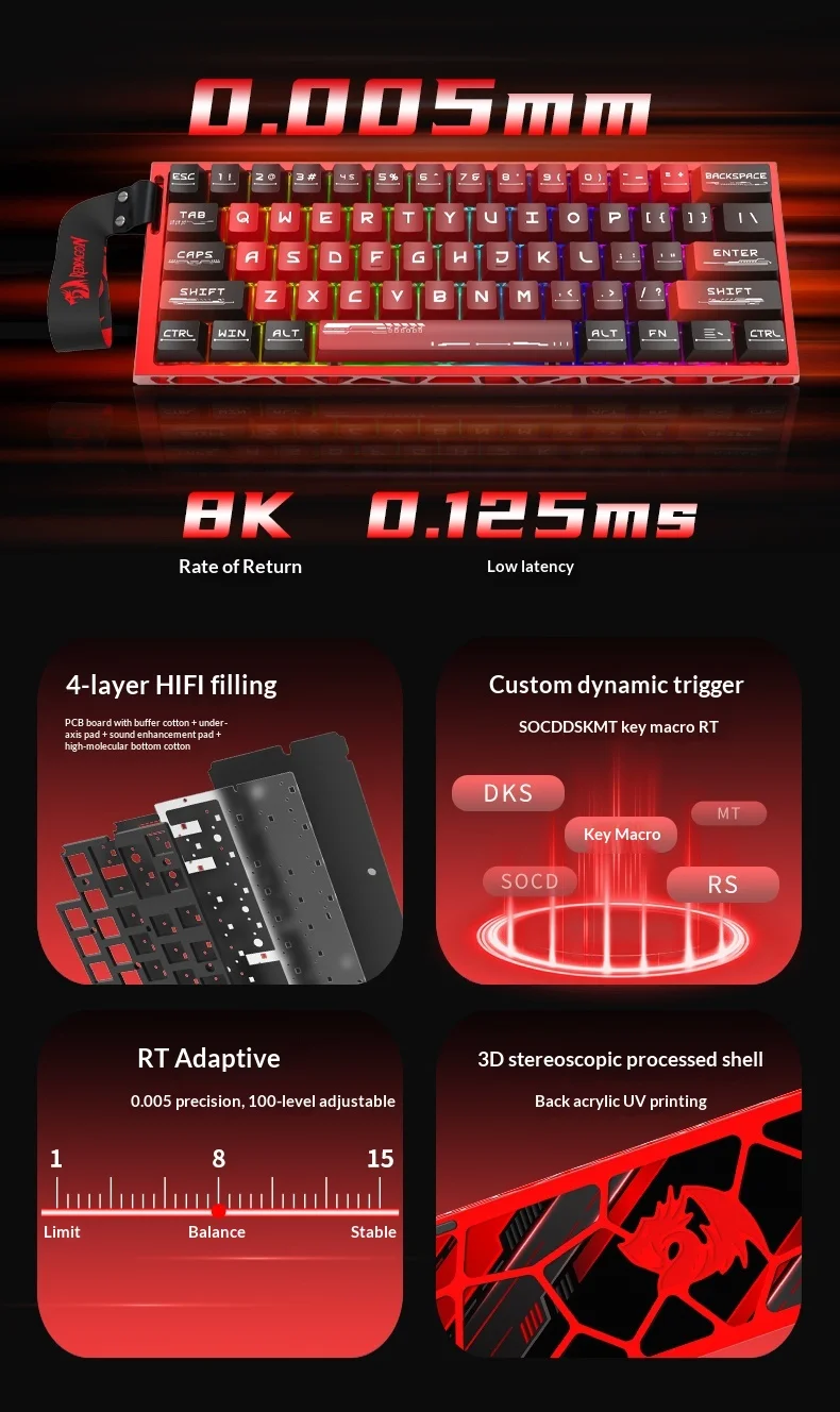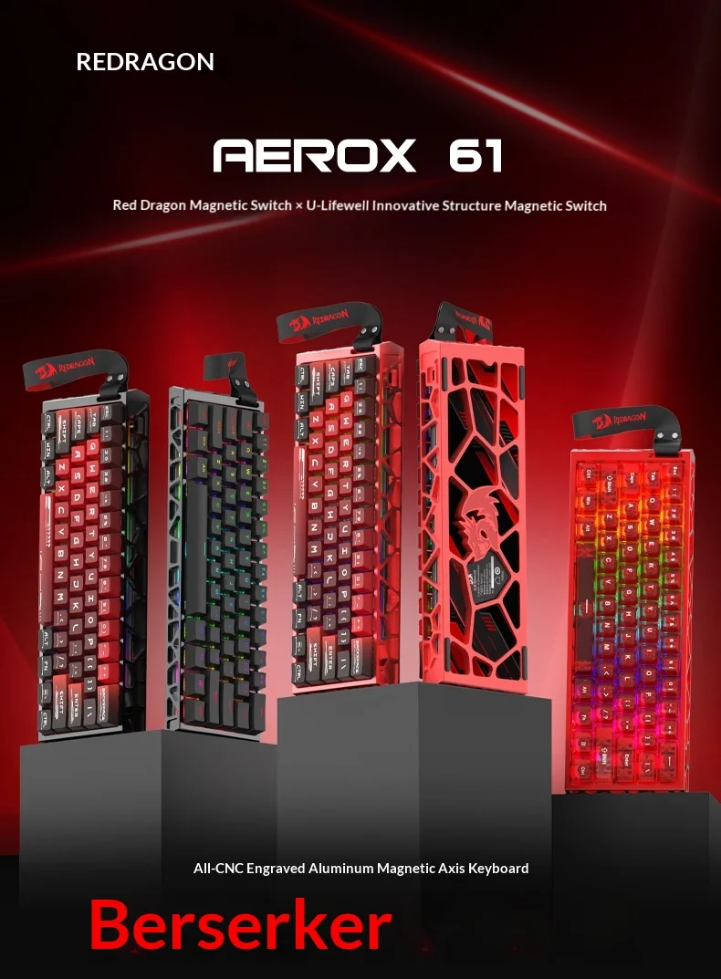 Teclados con interruptor magnético REDDRAGON AEROX61, tasa de orolling de 8k, 0,125 ms, teclados ergonómicos huecos de aleación de aluminio de baja latencia para juegos