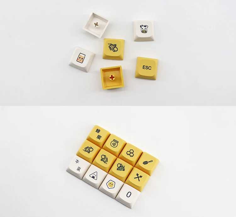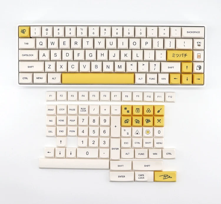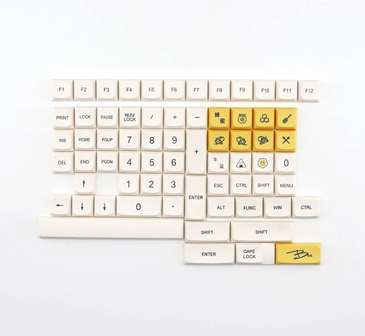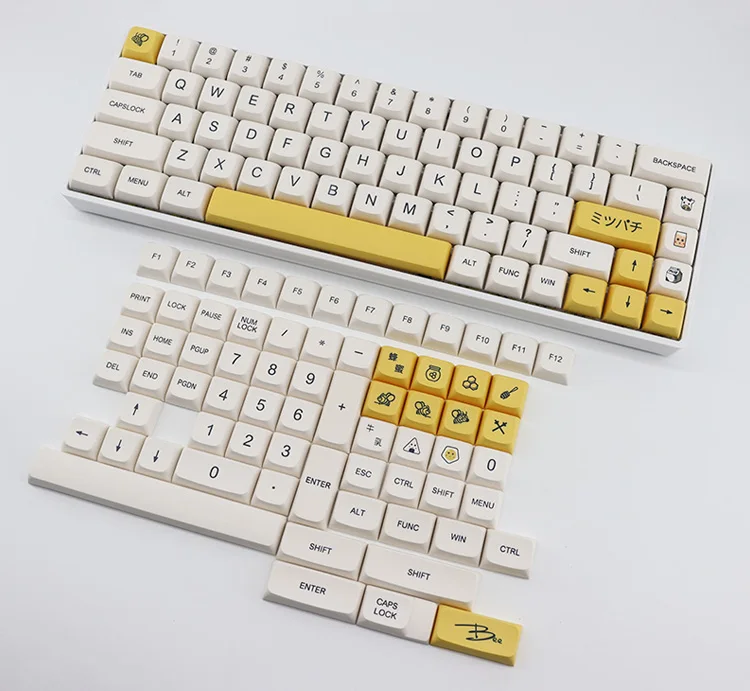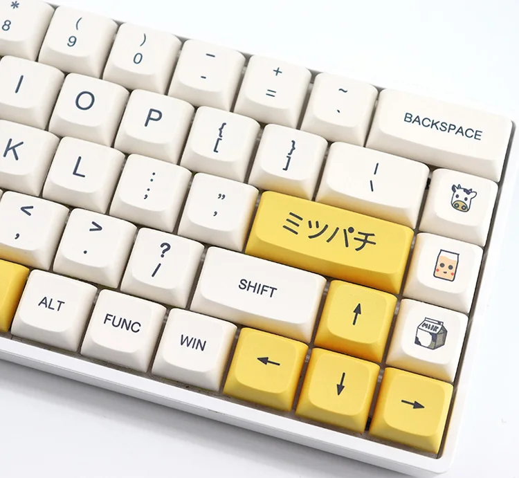 Teclas de leche y miel, teclas de teclado PBT, perfil XDA, sublimación, tapa de tecla de teclado mecánico inglés blanco y leche