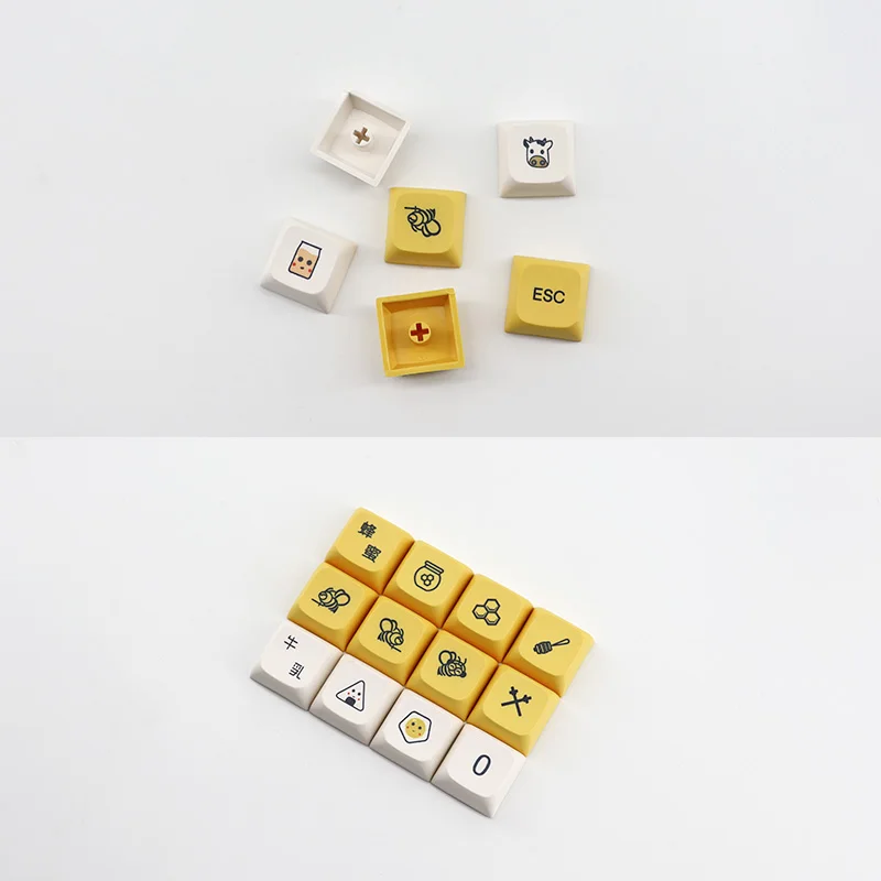 Teclas de leche y miel, teclas de teclado PBT, perfil XDA, sublimación, tapa de tecla de teclado mecánico inglés blanco y leche