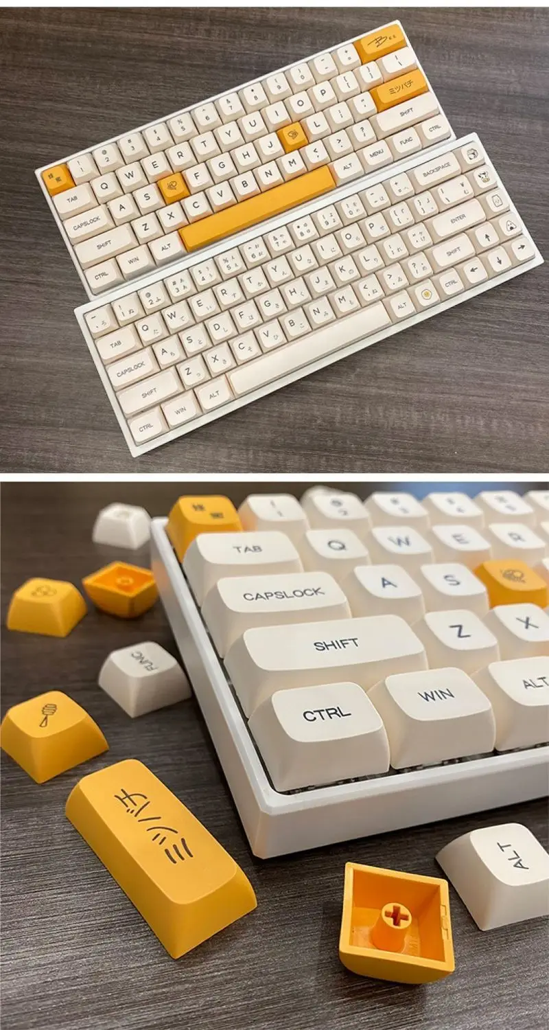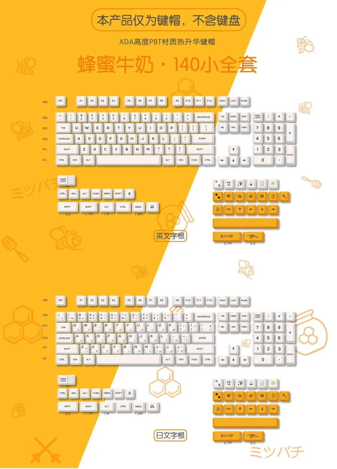 Teclas de 140 teclas, tapa de tecla de leche y miel, perfil XDA, sublimación térmica PBT, teclas de teclado mecánico personalizadas para interruptores Cherry MX