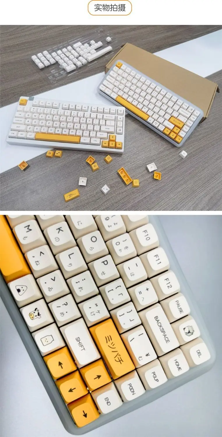 Tapa de tecla de 123 teclas, tapa de tecla de leche y miel, perfil XDA, PBT, sublimación térmica, teclado mecánico personalizado, teclas para interruptores Cherry MX
