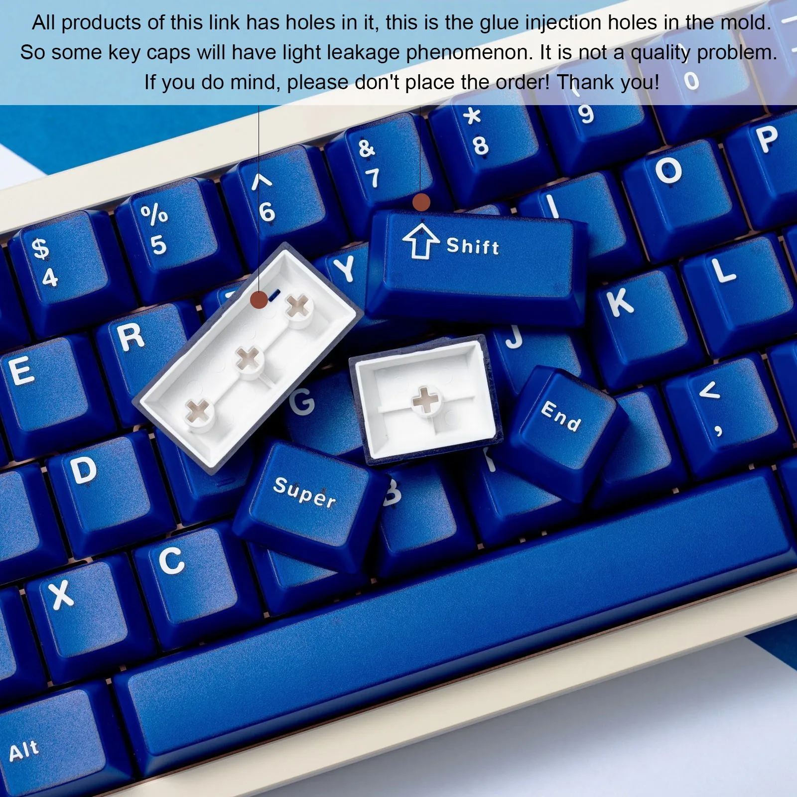 Comprar Teclas ABS de doble disparo de 120 teclas, perfil de cereza, estilo minimalista, teclas semitransparentes azules Klein para teclado de interruptores MX