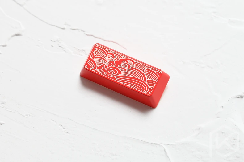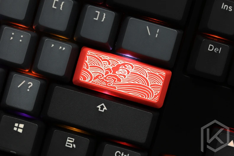 Comprar Teclas de ABS grabadas a través de ondas japonesas, negras y rojas brillantes para teclado mecánico personalizado, 2.25u, novedad