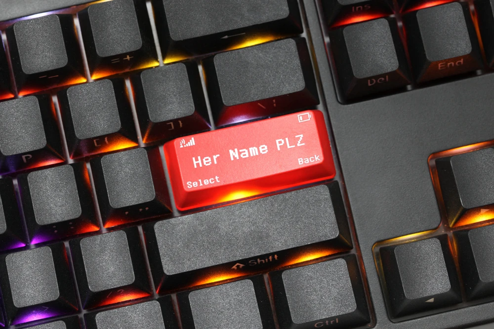 Comprar Teclas de ABS grabadas con brillo a través de su nombre, Teclado mecánico personalizado, por favor, negro y rojo, entrar en el espacio trasero, novedad