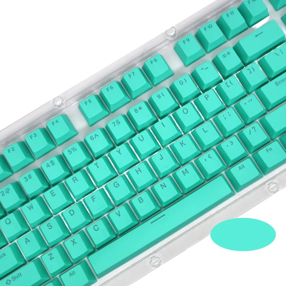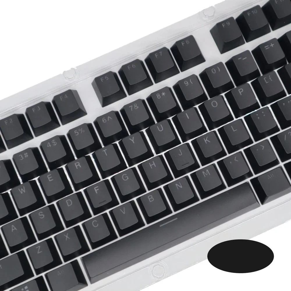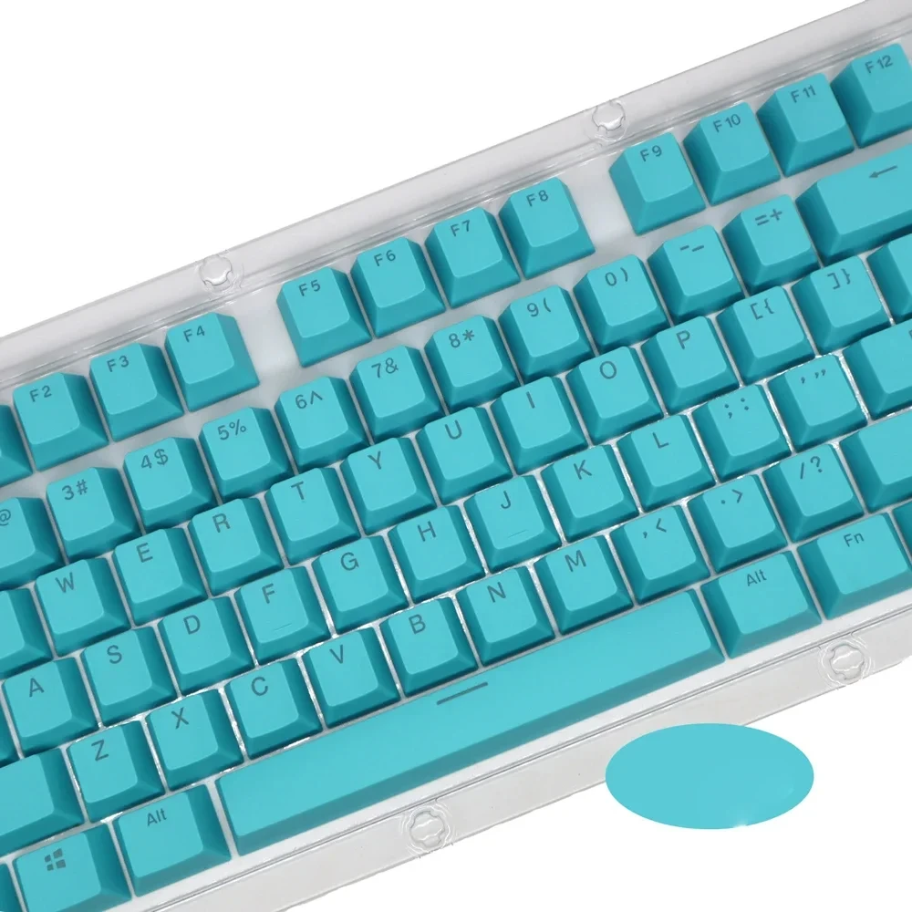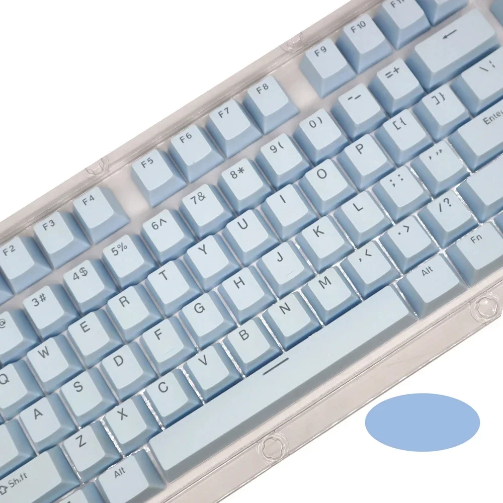 The keycaps are made of PBT dual-color translucent material and are suitable for mechanical keyboards such as 61/87/104 keys