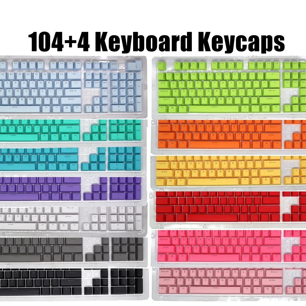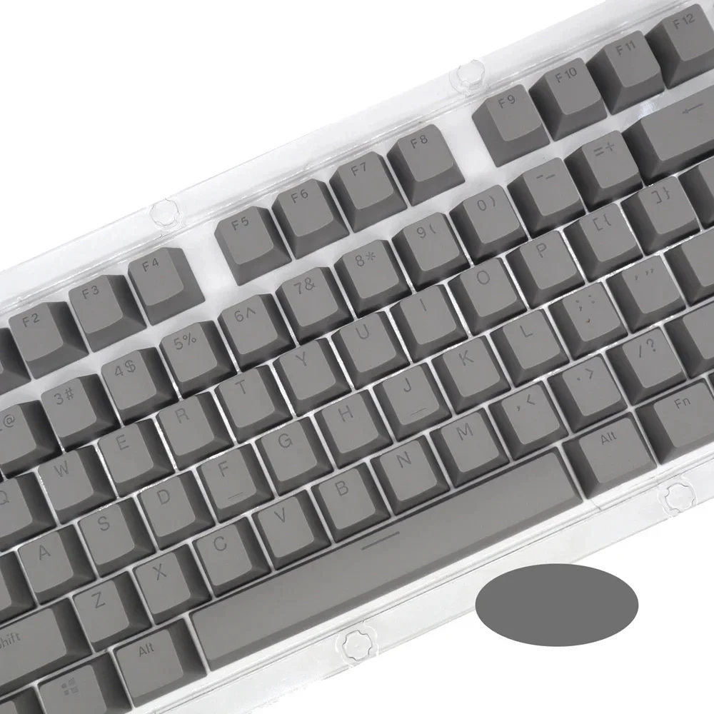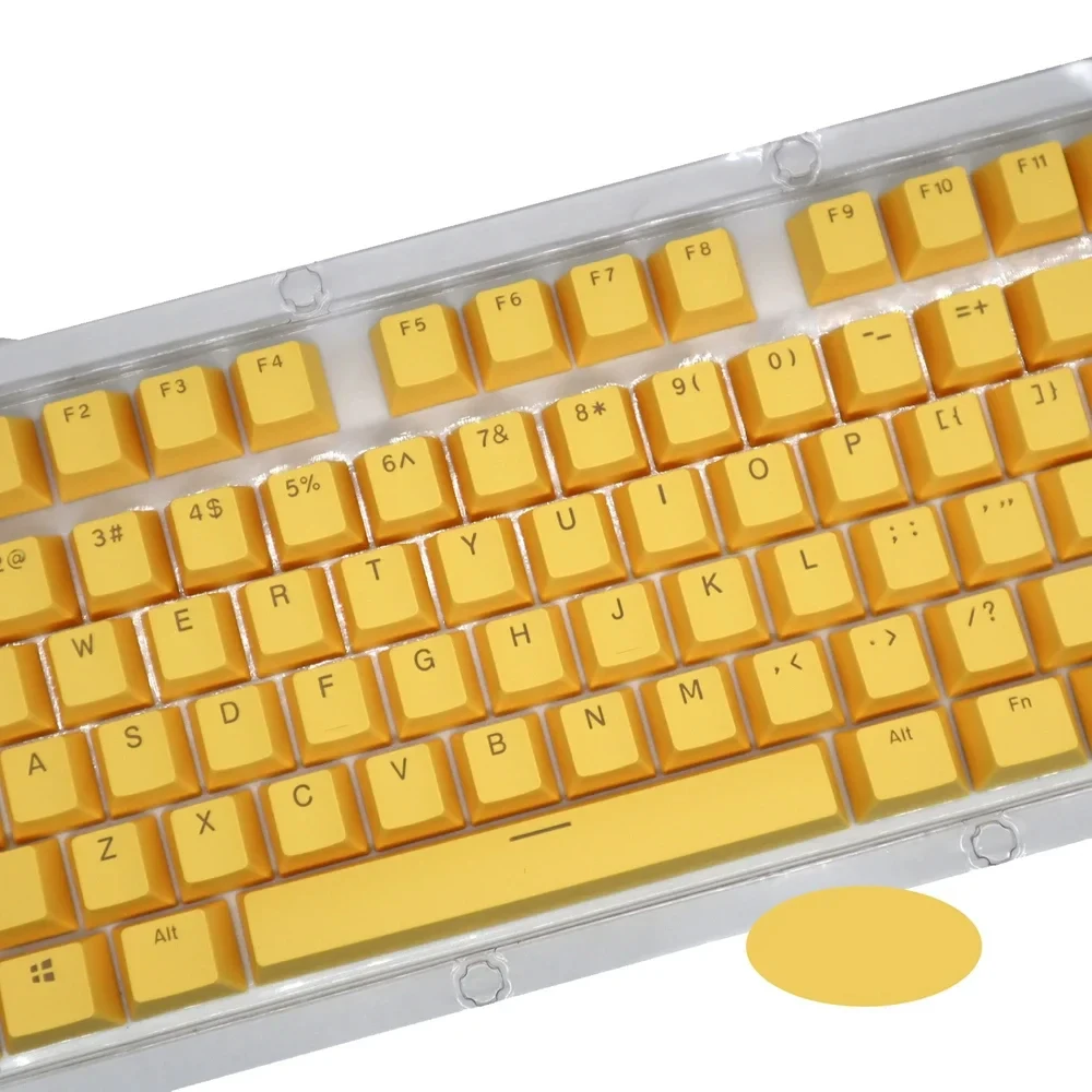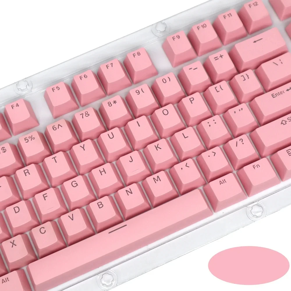 The keycaps are made of PBT dual-color translucent material and are suitable for mechanical keyboards such as 61/87/104 keys