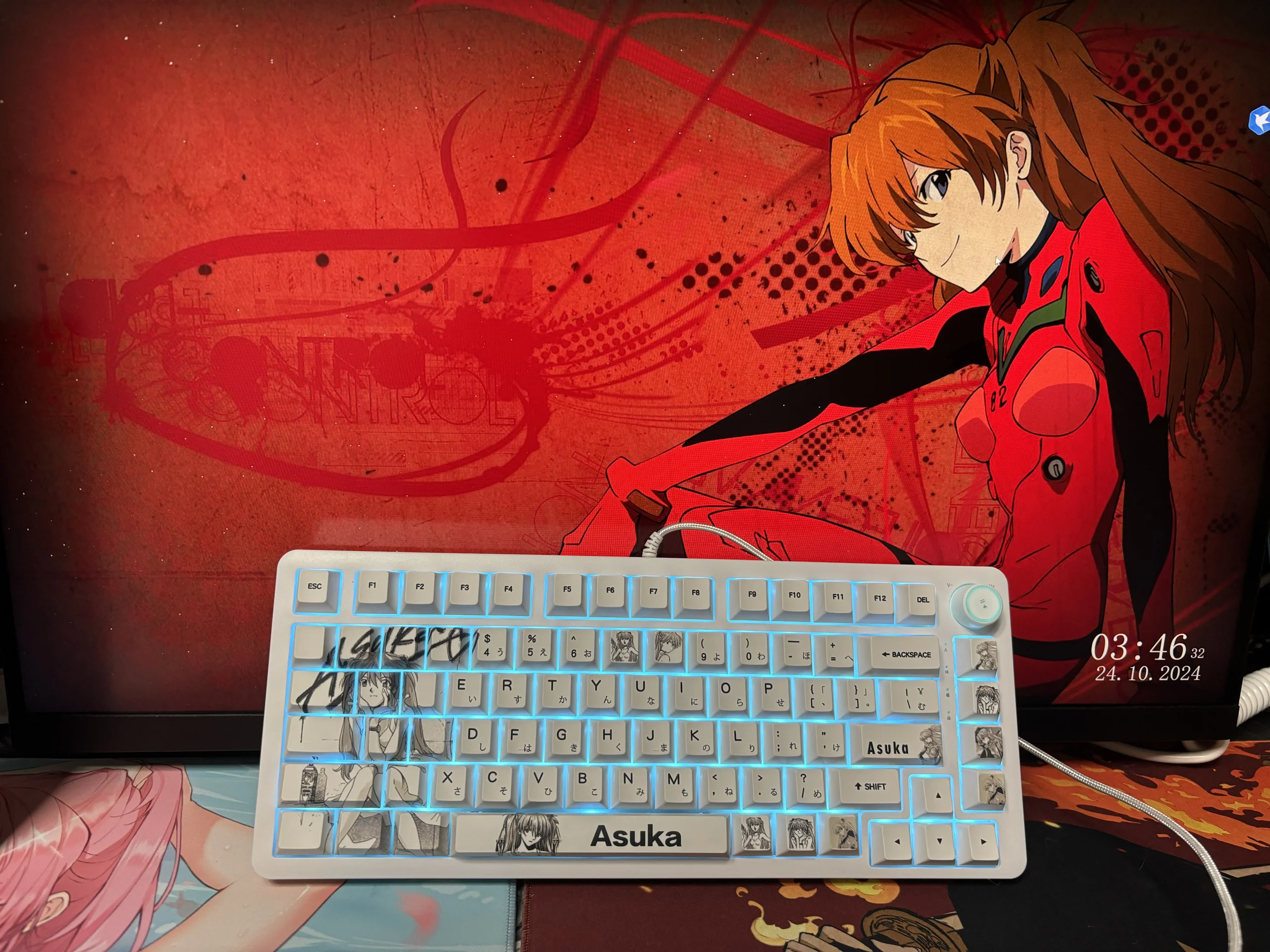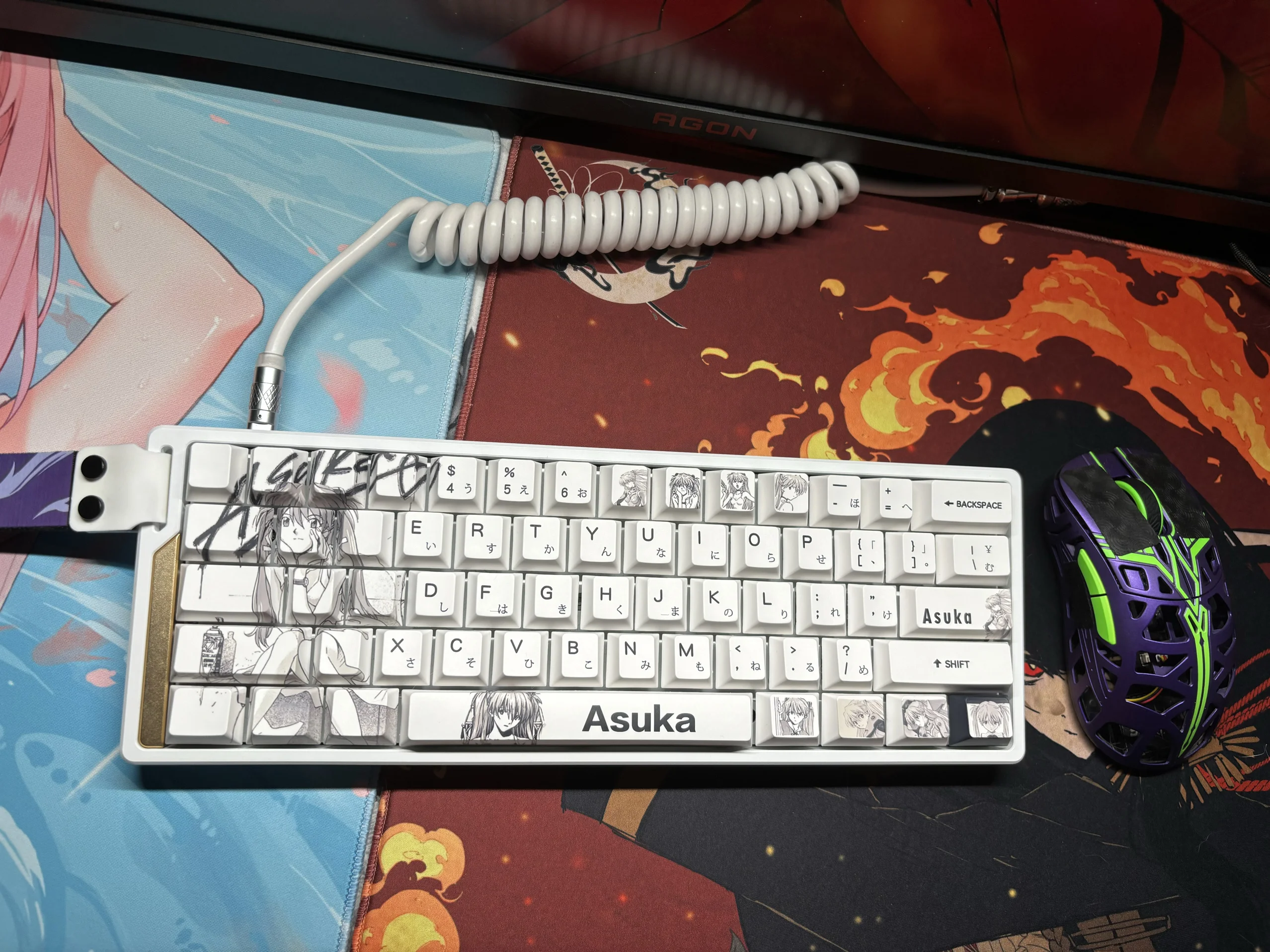 Teclas de Anime EVA Asuka, teclas temáticas, perfil Cherry, compatibles con Wooting Ez63 Made68 Night Demon, teclas de teclado mecánico