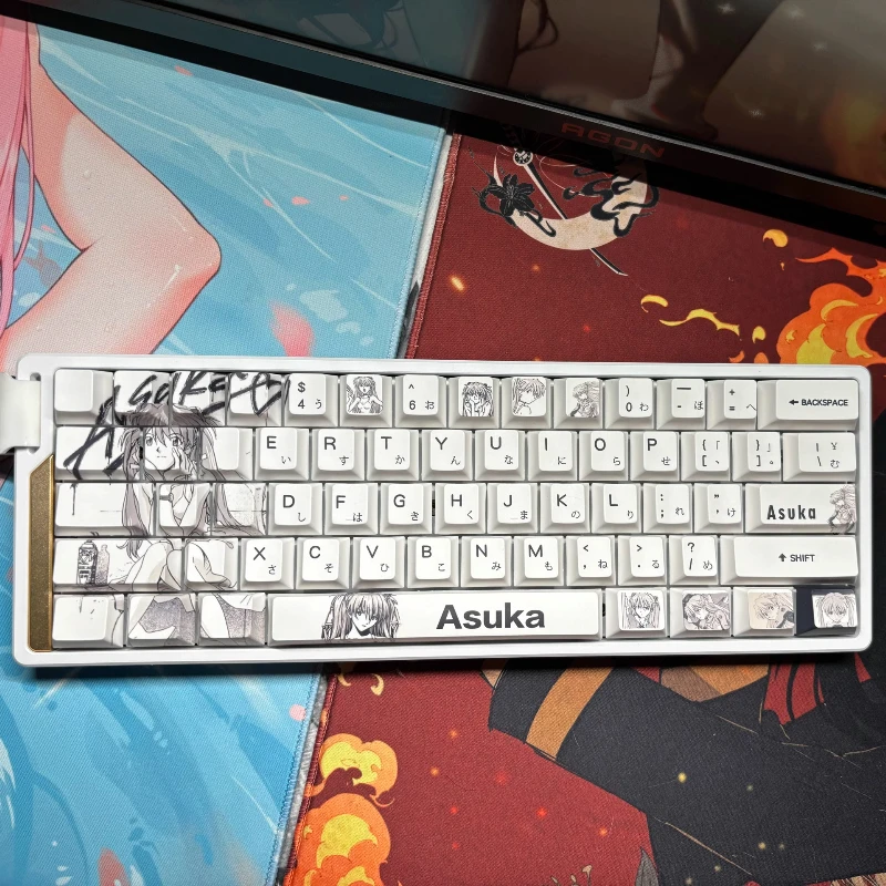 Teclas de Anime EVA Asuka, teclas temáticas, perfil Cherry, compatibles con Wooting Ez63 Made68 Night Demon, teclas de teclado mecánico