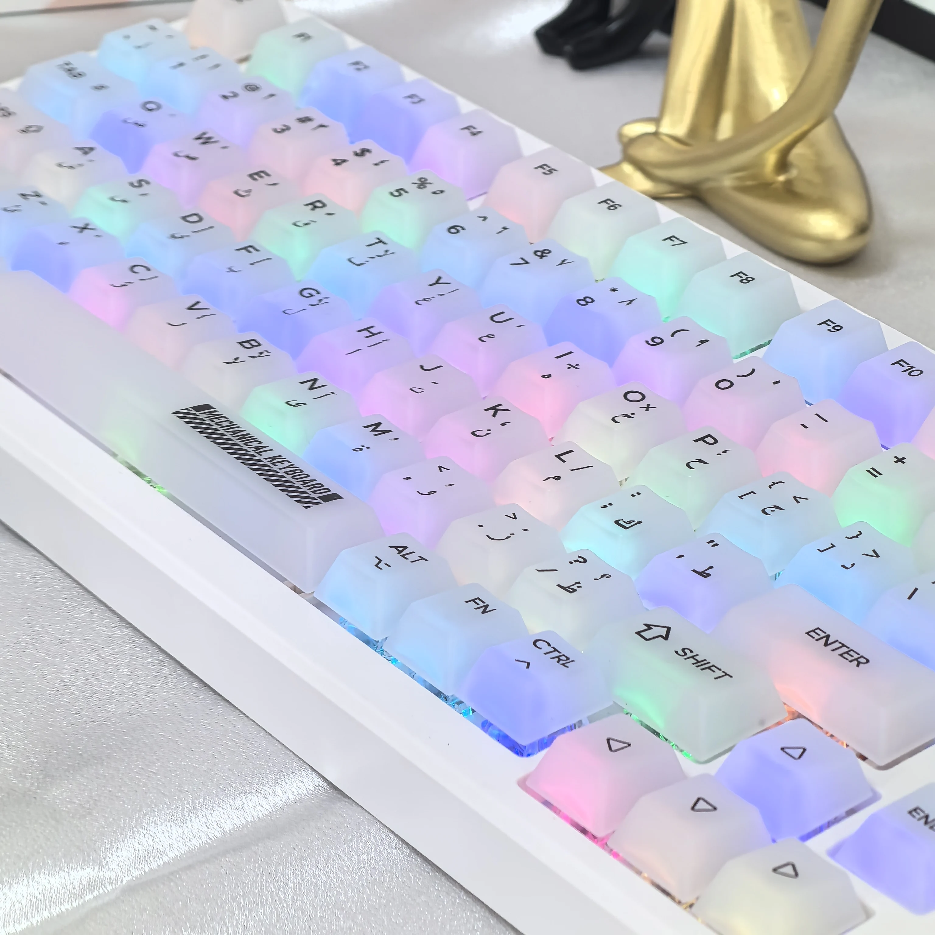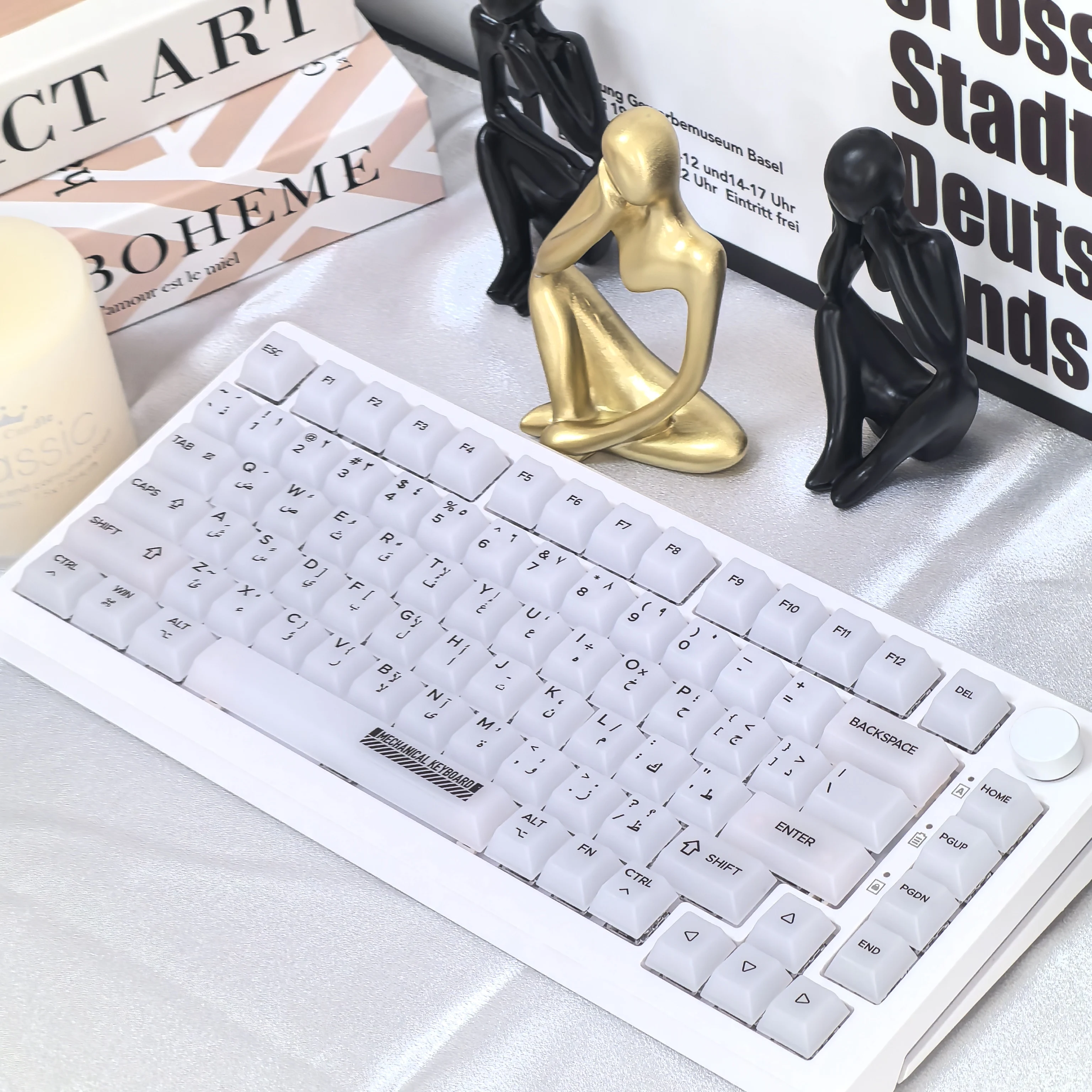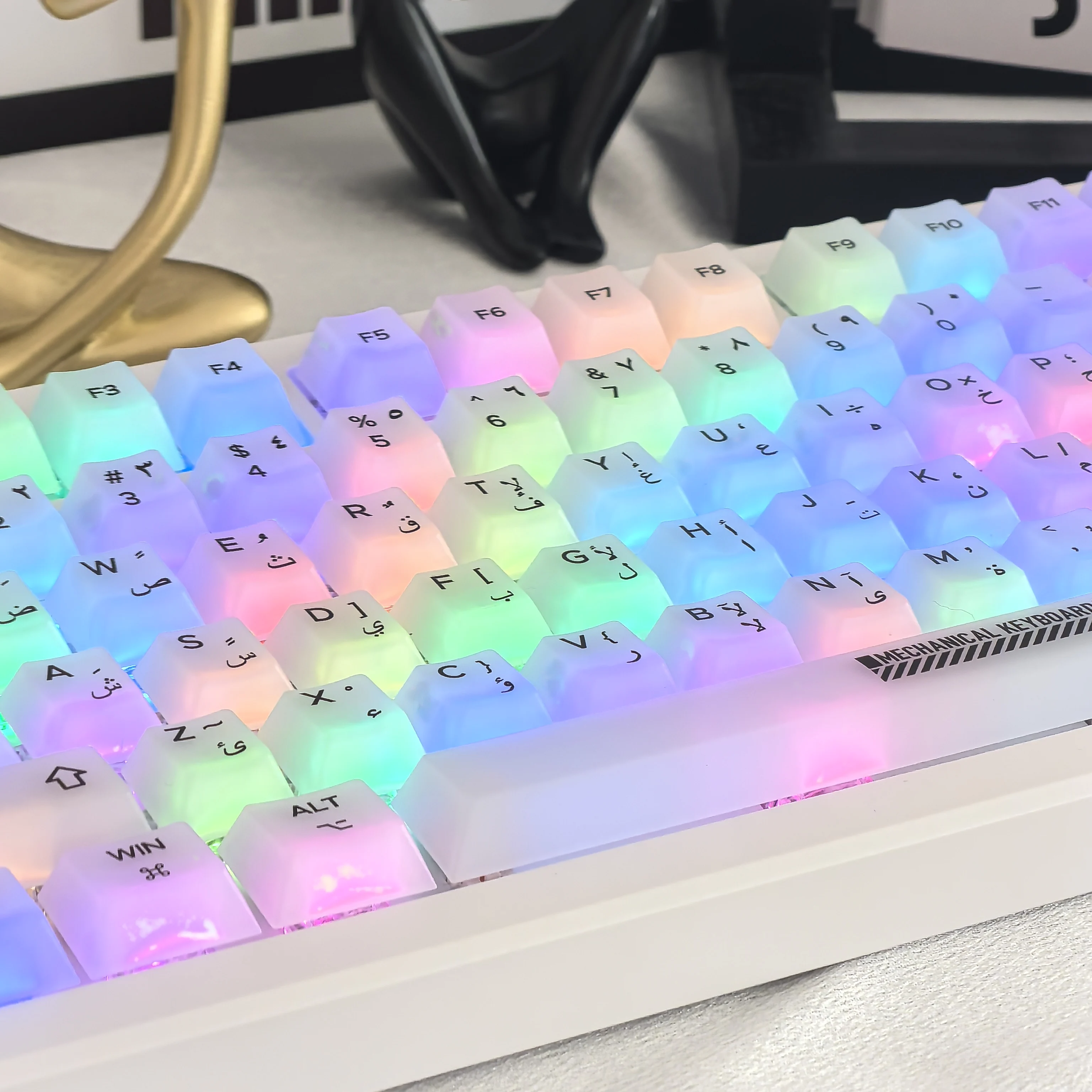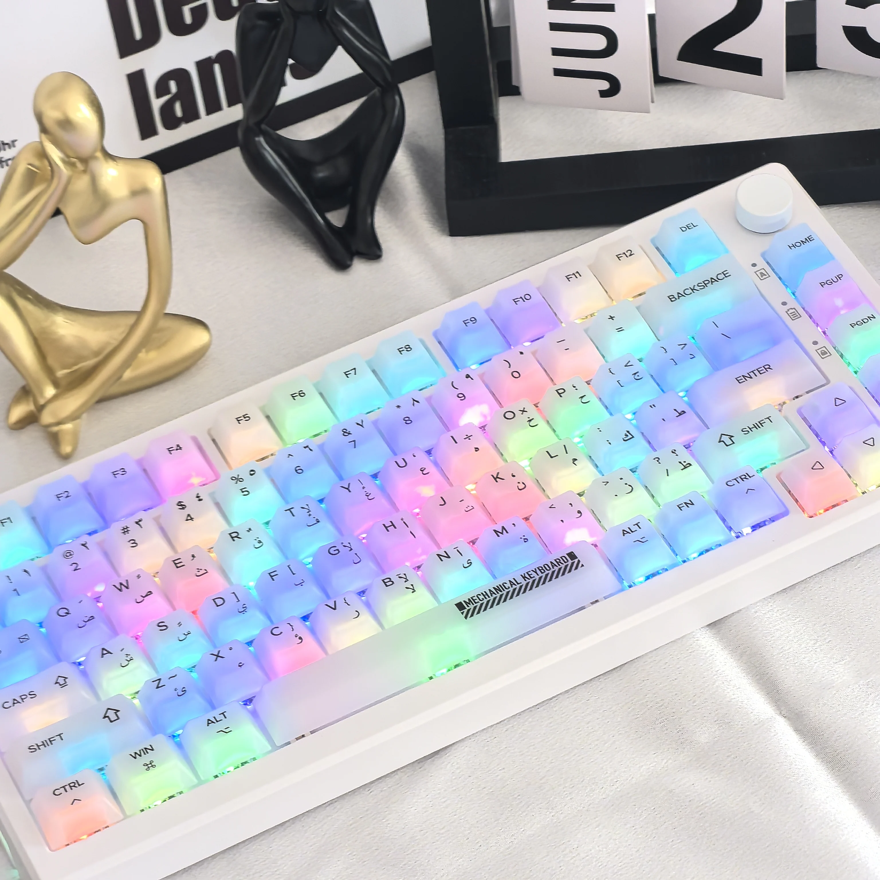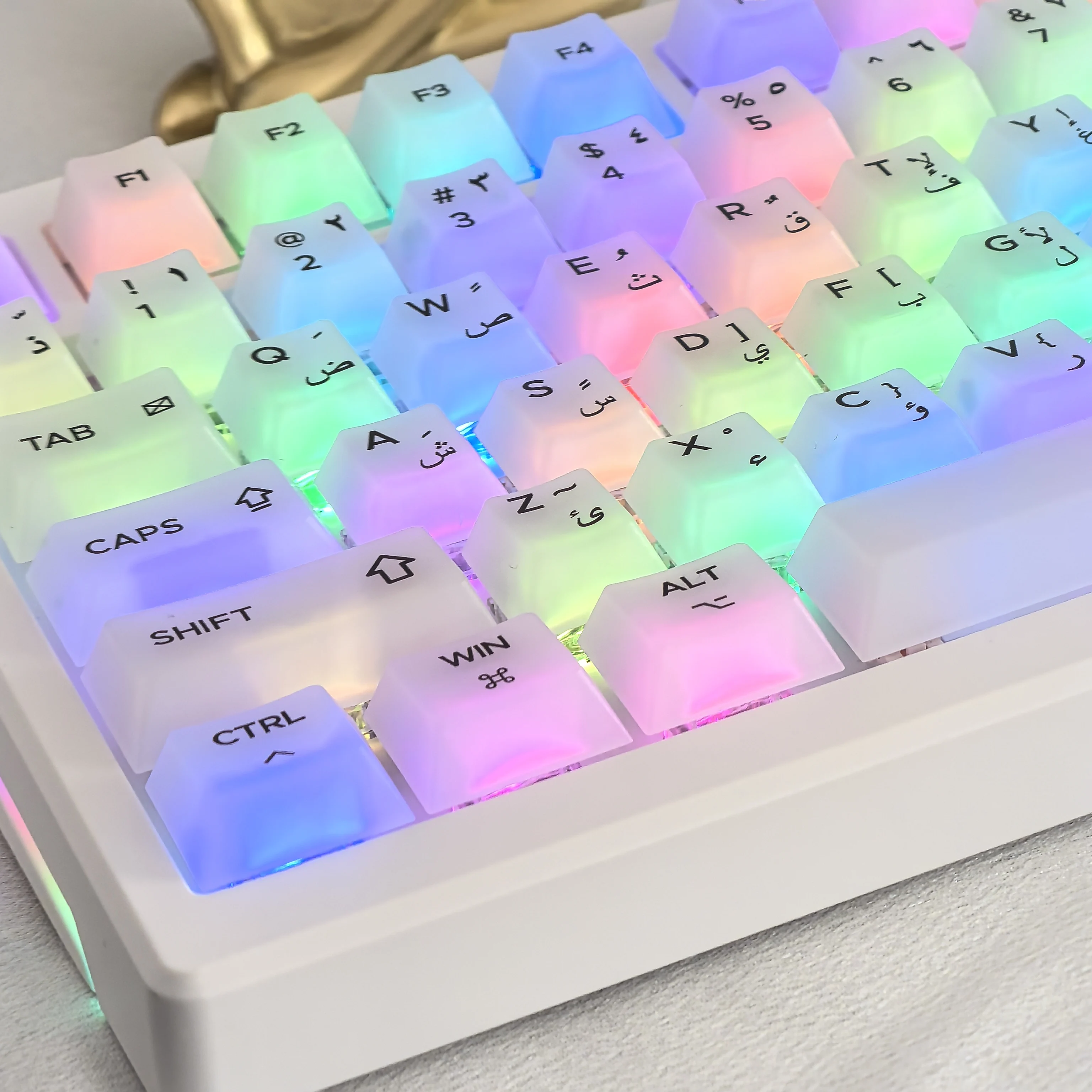 Comprar Teclas árabes de cereza para Pc, teclado mecánico translúcido blanco transparente mate de 122 teclas Diy para juego de teclas de teclado 84/98/87/104