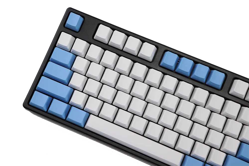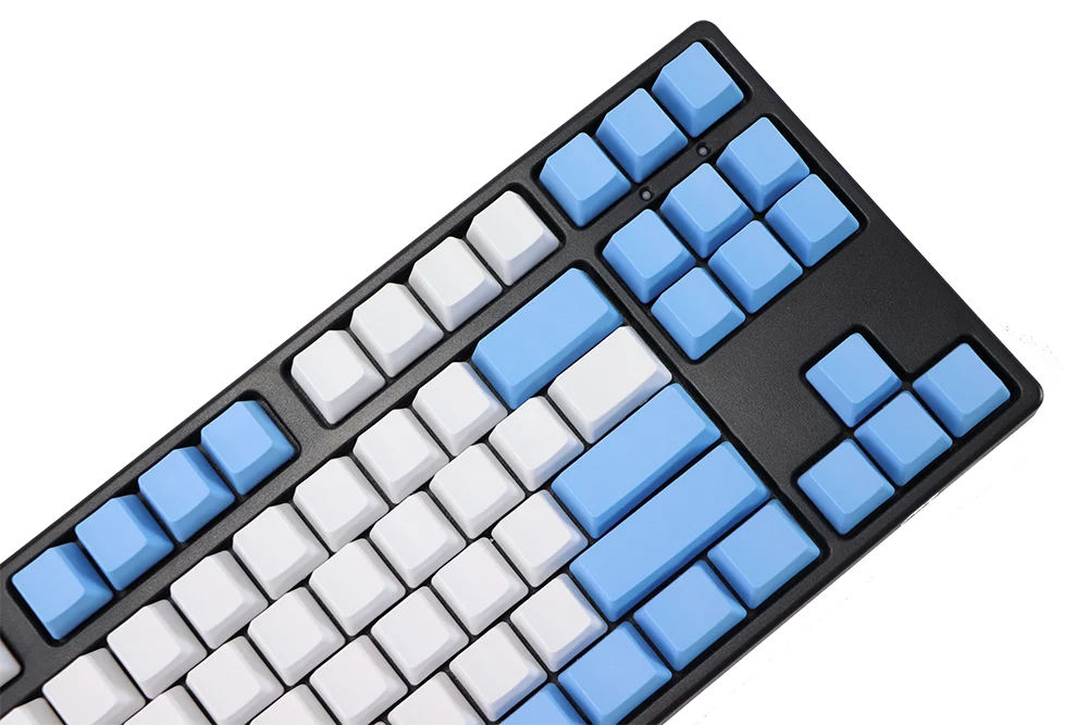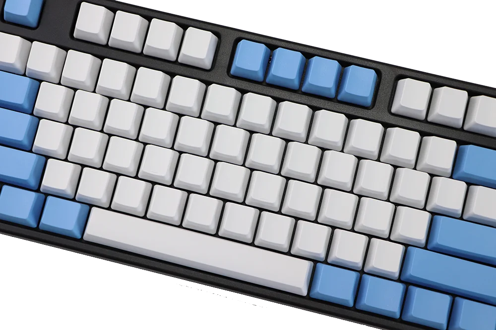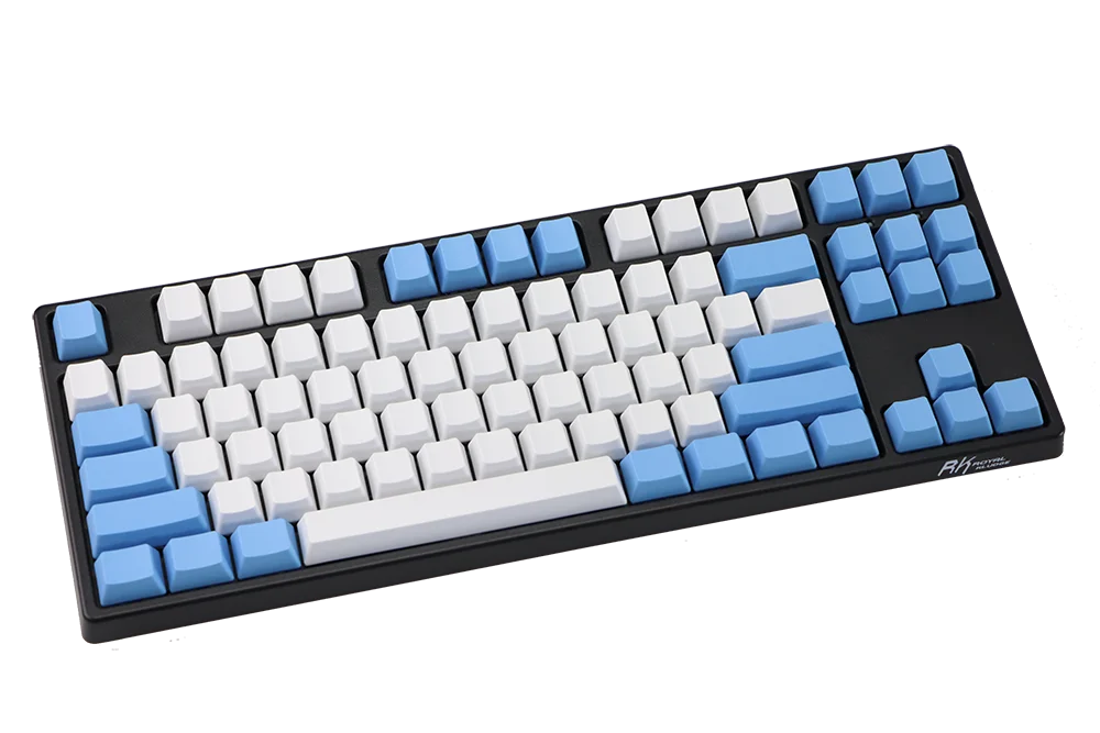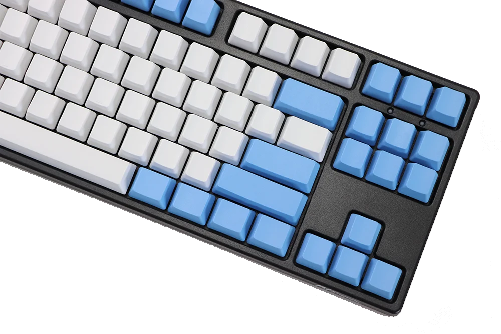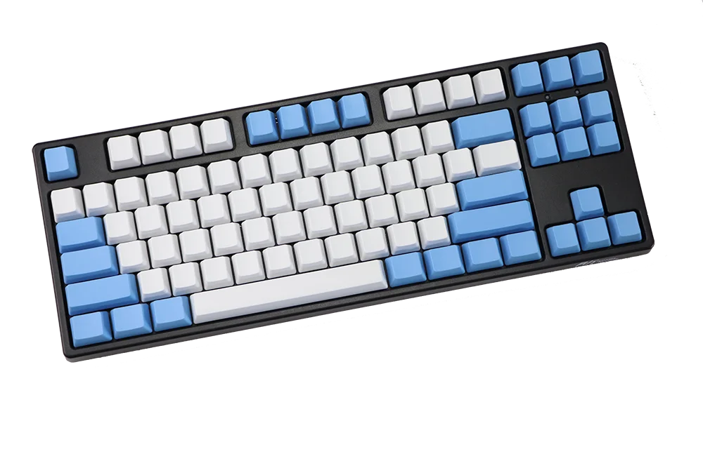 Comprar Teclas en blanco con diseño ANSI ISO, 87 teclas, PBT grueso, blanco, azul, gota de lluvia, color a juego, OEM