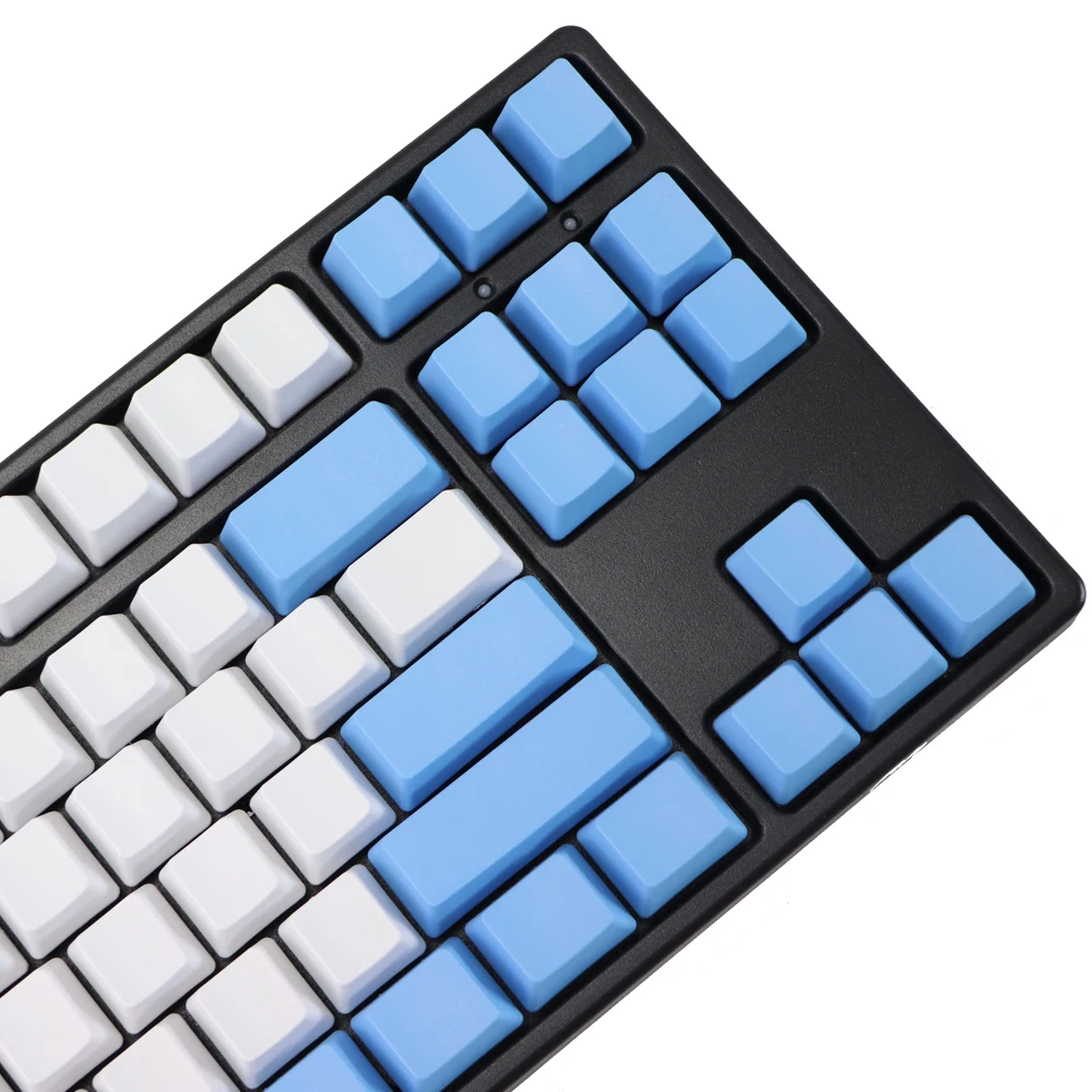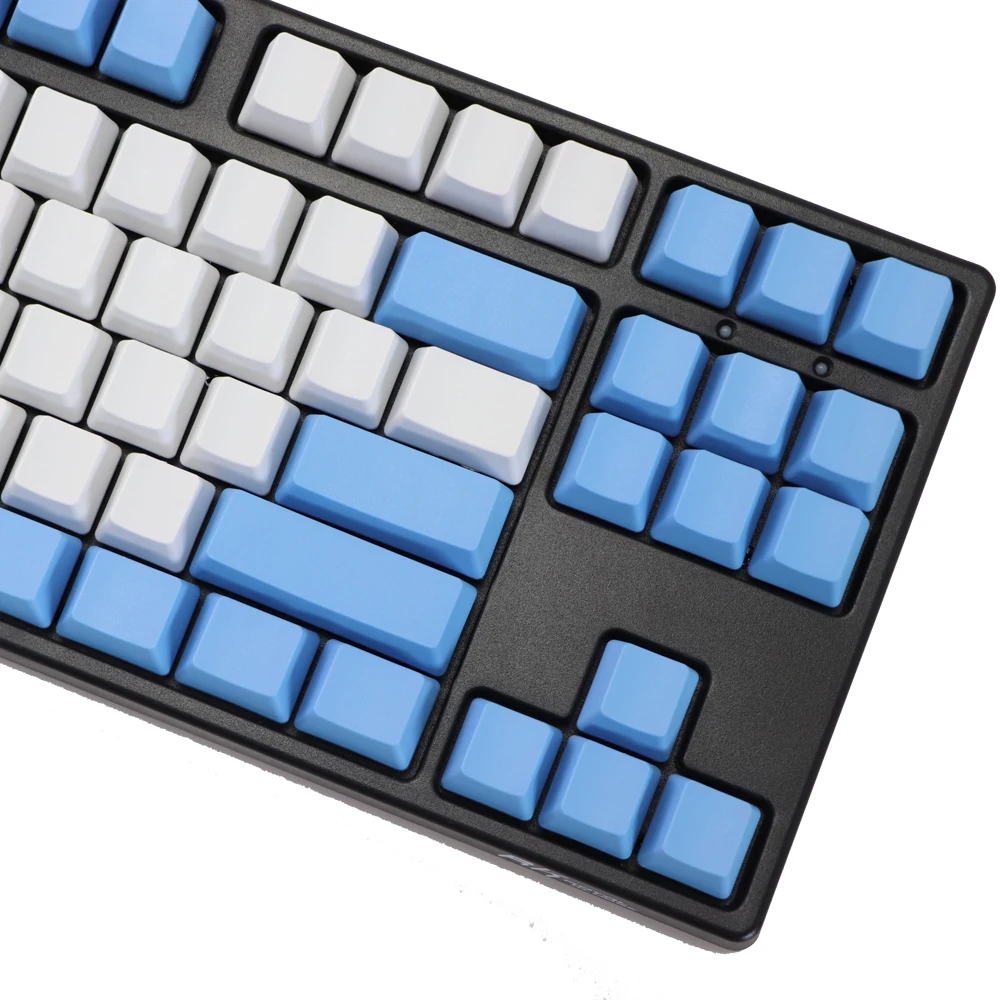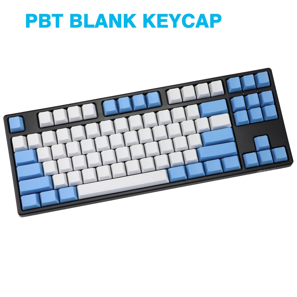 Comprar Teclas en blanco con diseño ANSI ISO, 87 teclas, PBT grueso, blanco, azul, gota de lluvia, color a juego, OEM