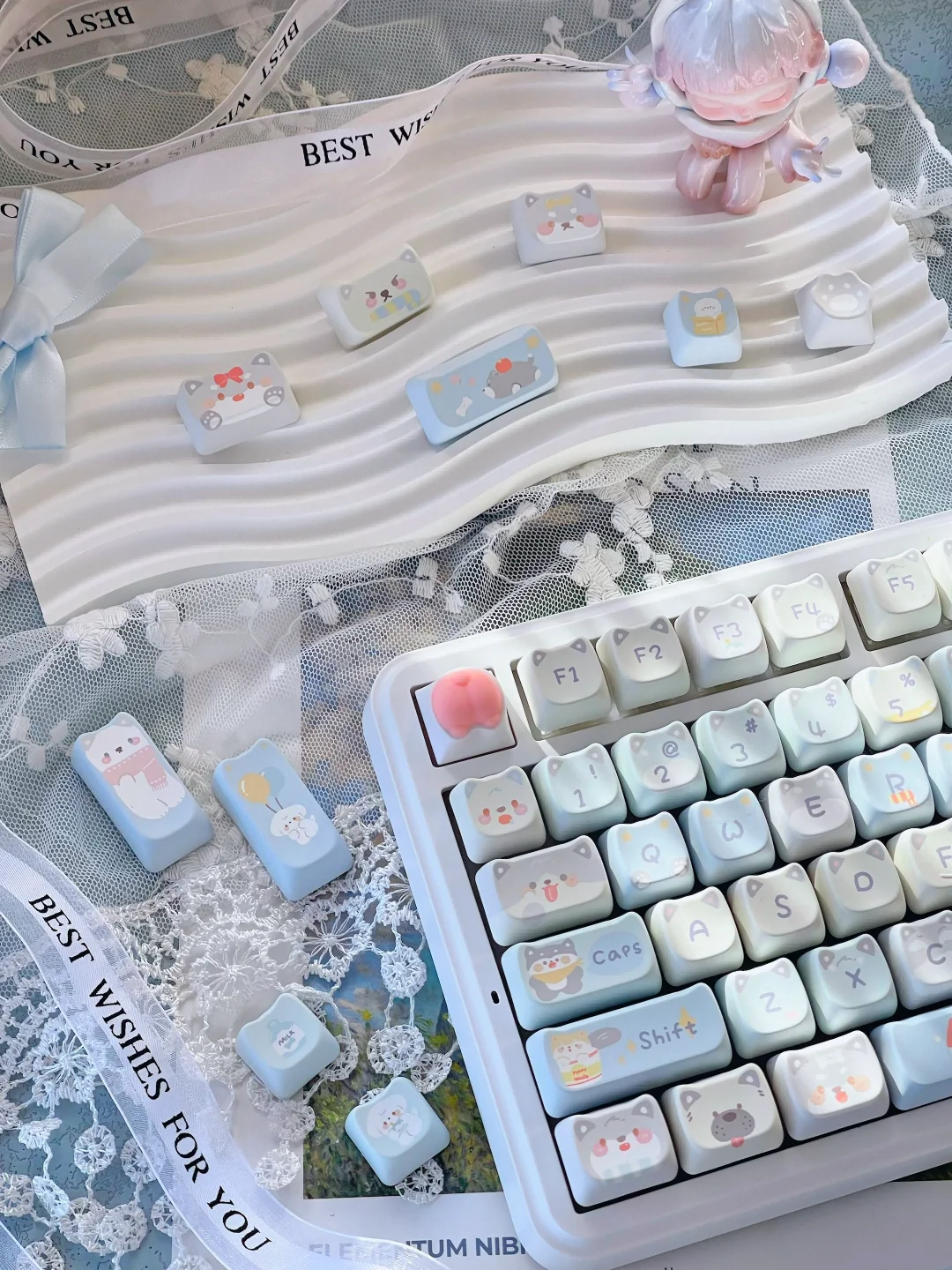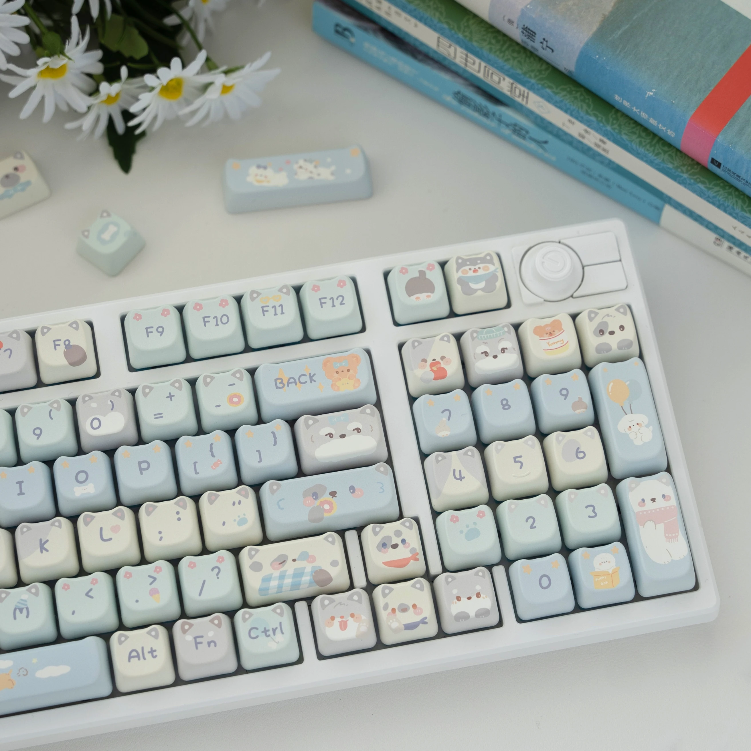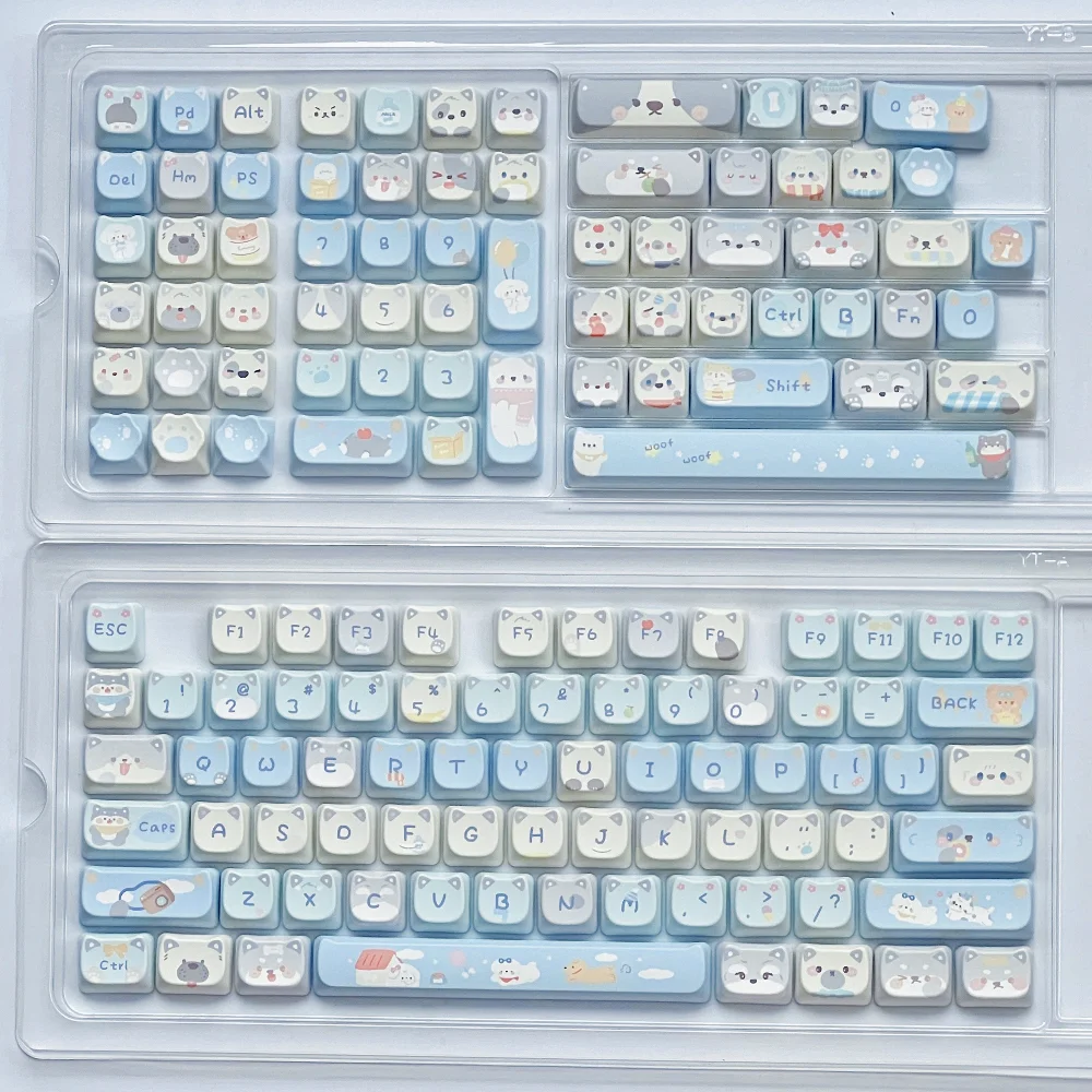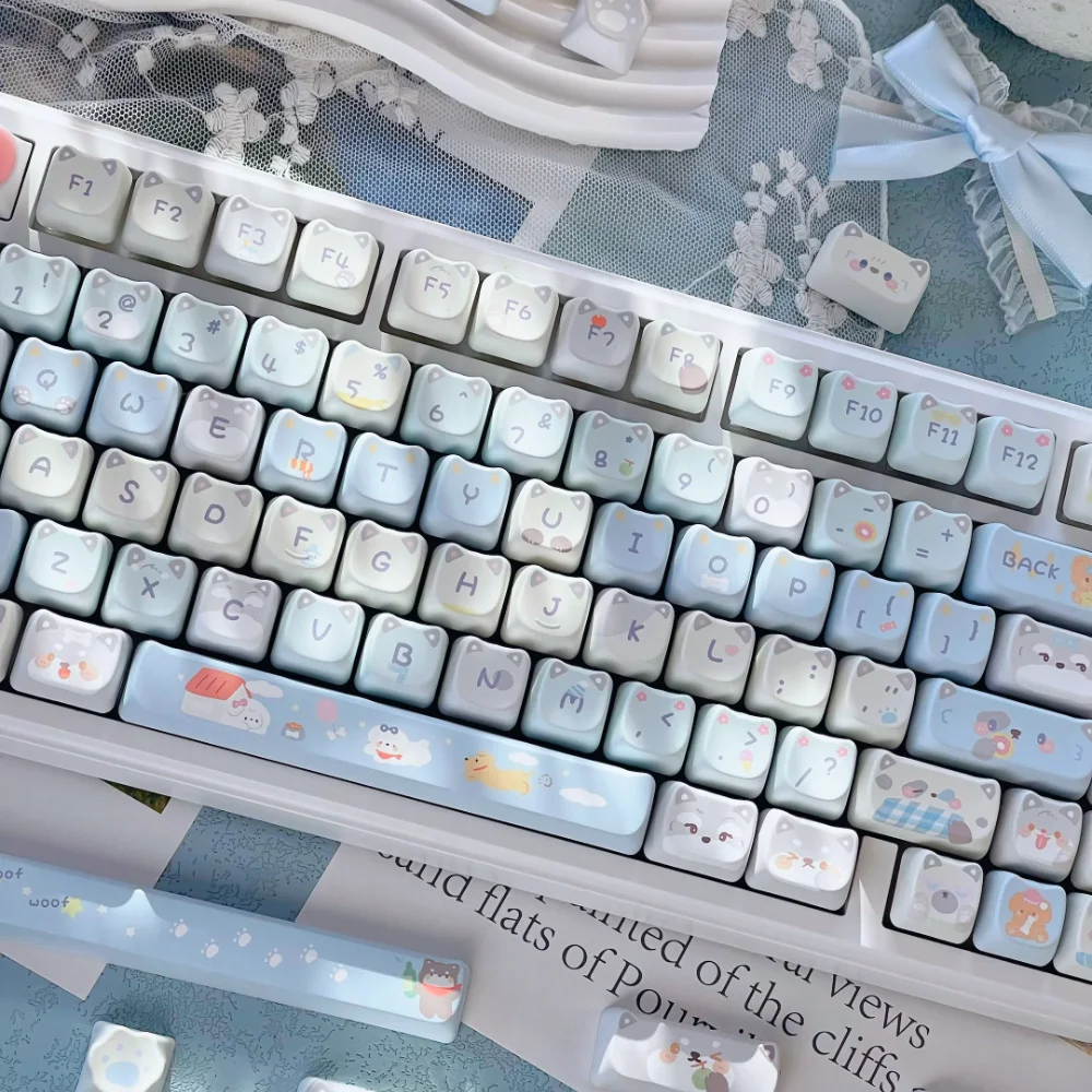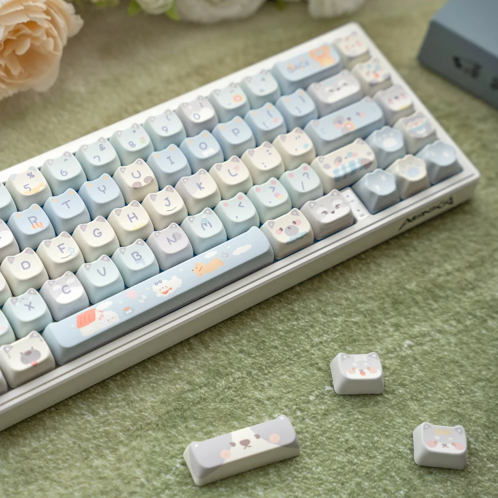 Comprar Teclas bonitas del equipo de cachorros, sublimación térmica PBT, diseño creativo de cabeza de perro, perfil MAO, teclas de teclado mecánico azul