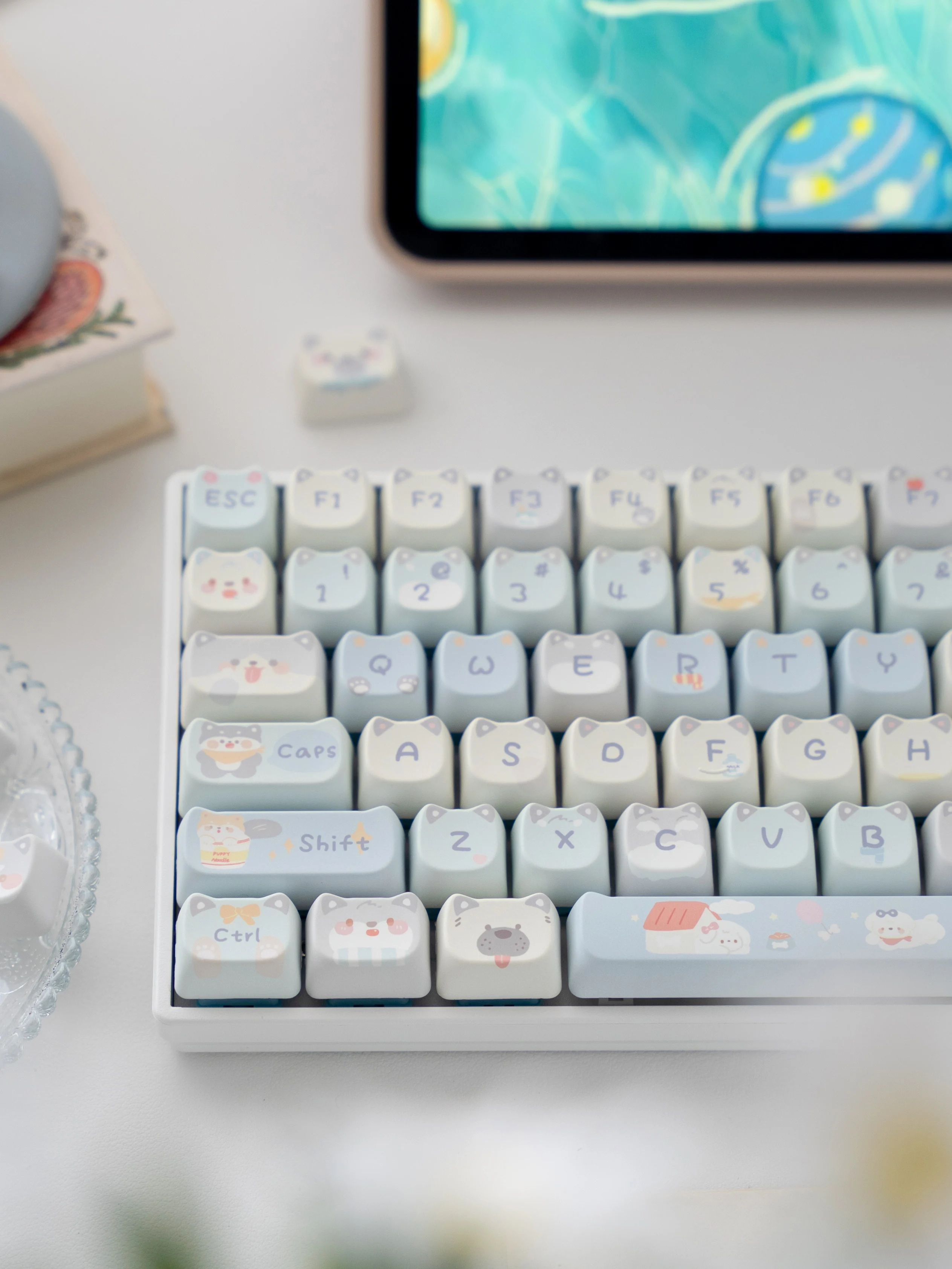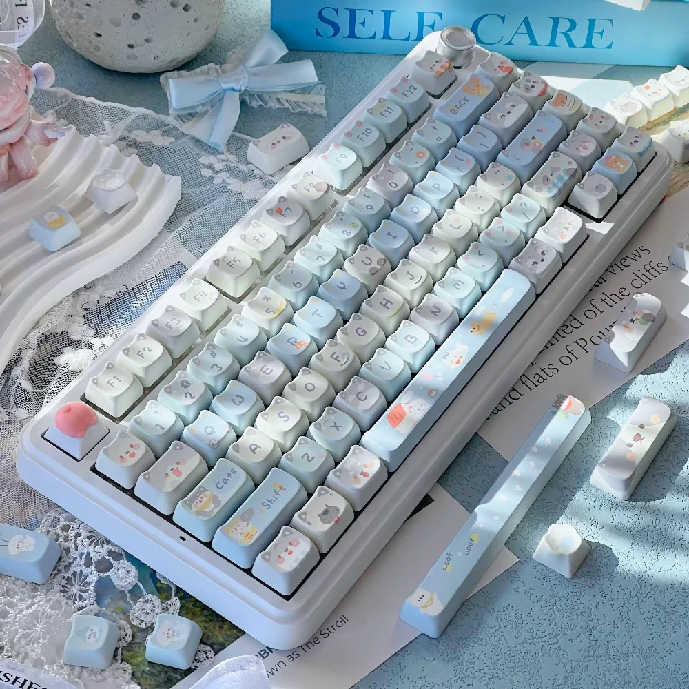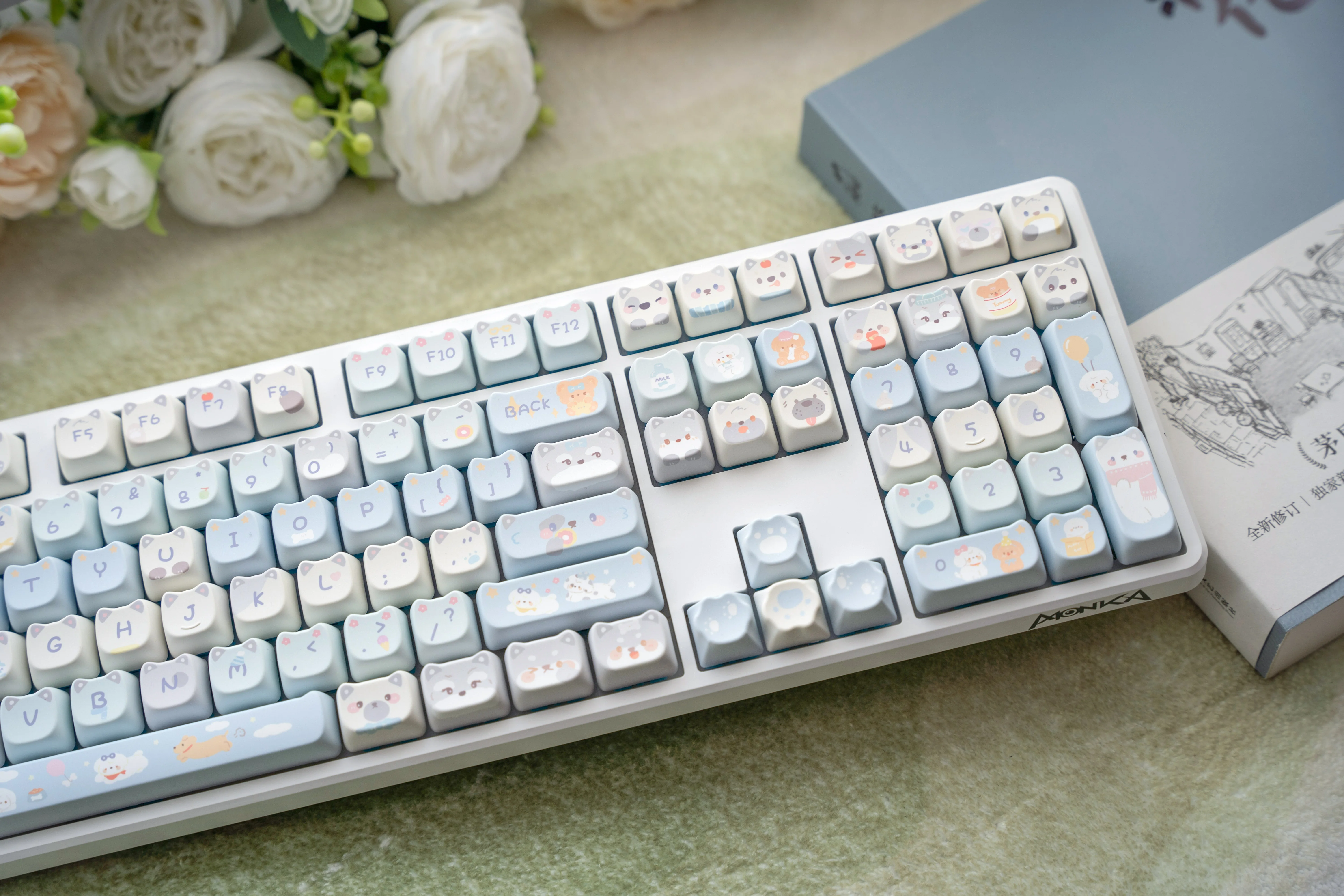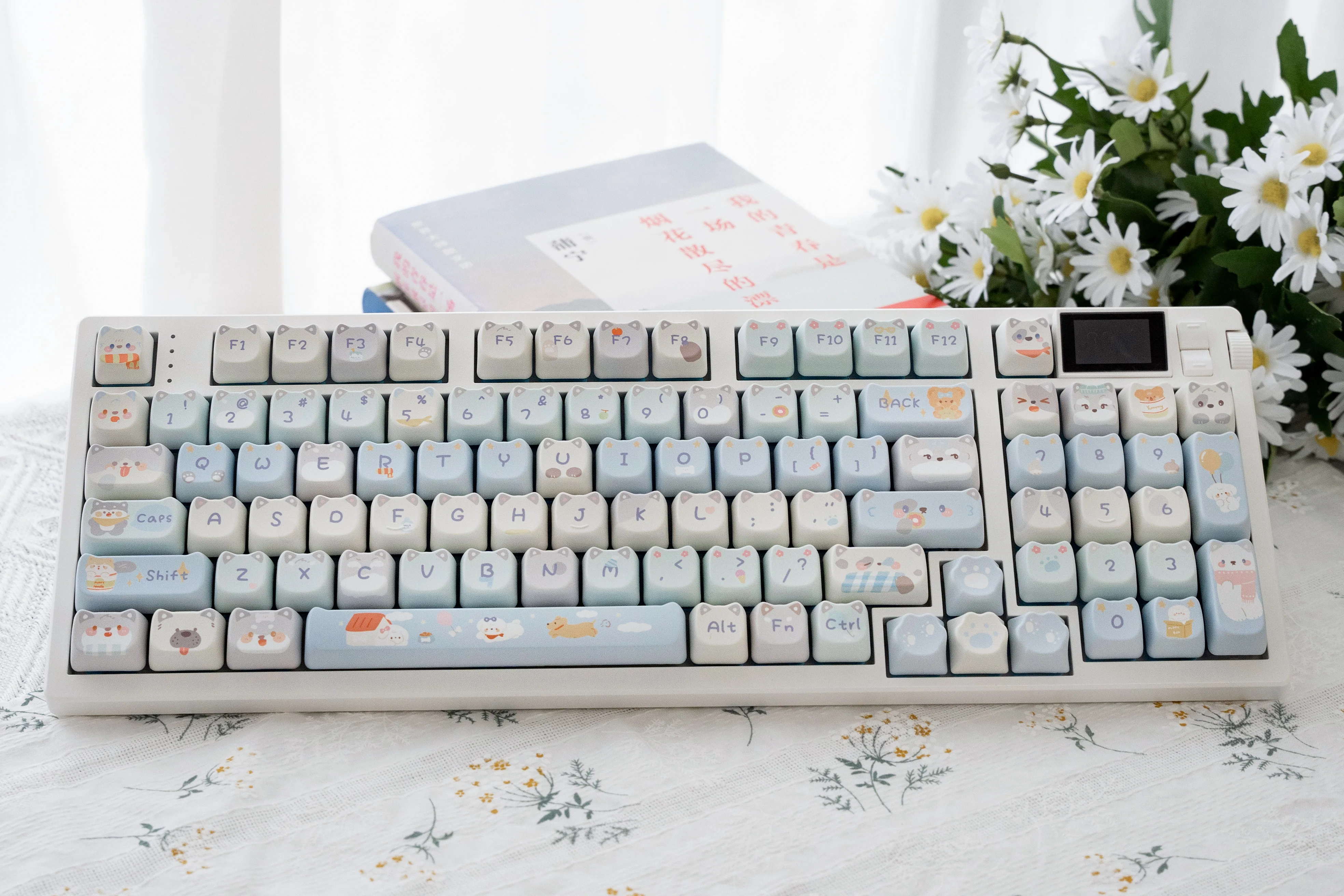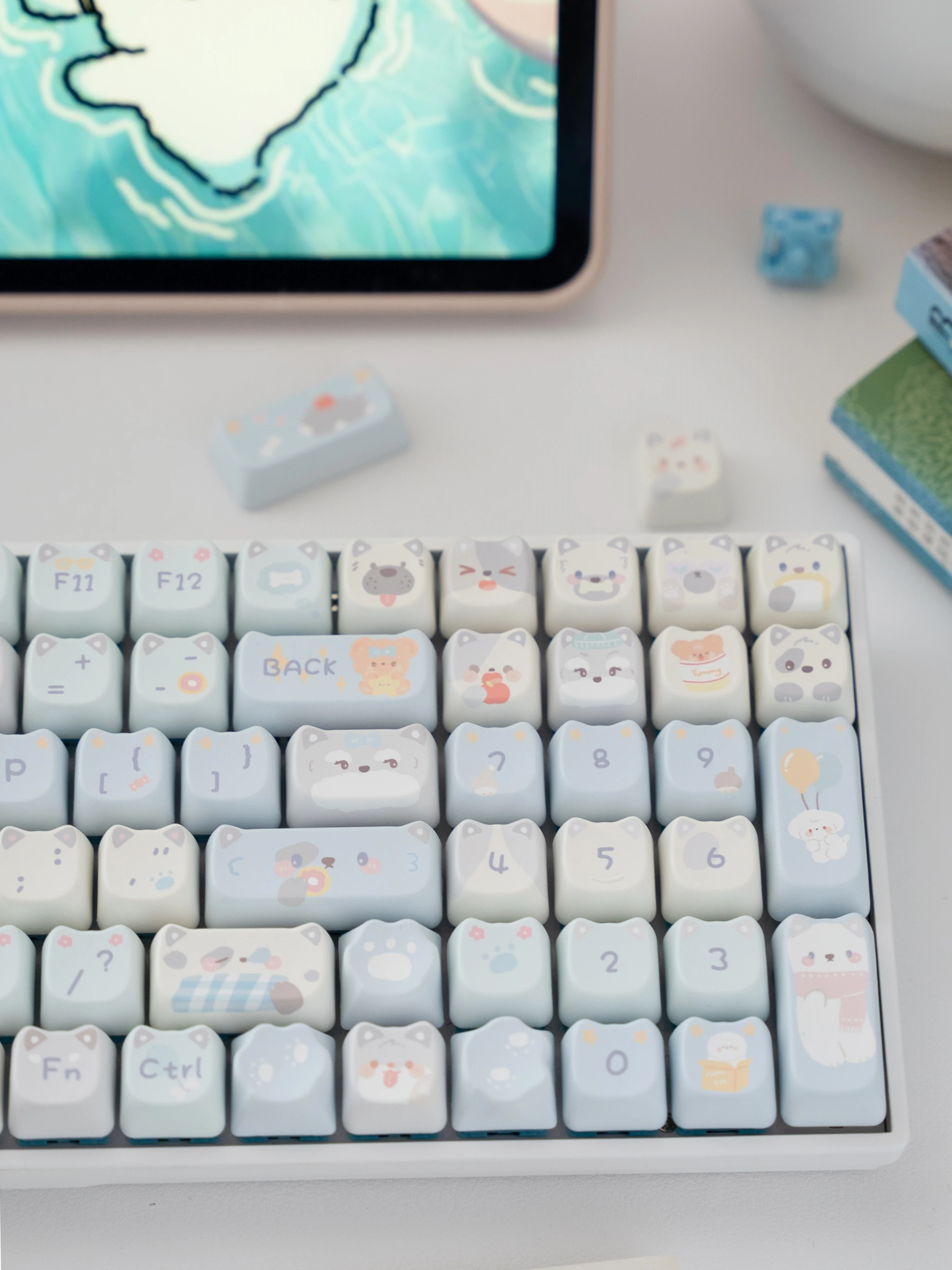 Comprar Teclas bonitas del equipo de cachorros, sublimación térmica PBT, diseño creativo de cabeza de perro, perfil MAO, teclas de teclado mecánico azul