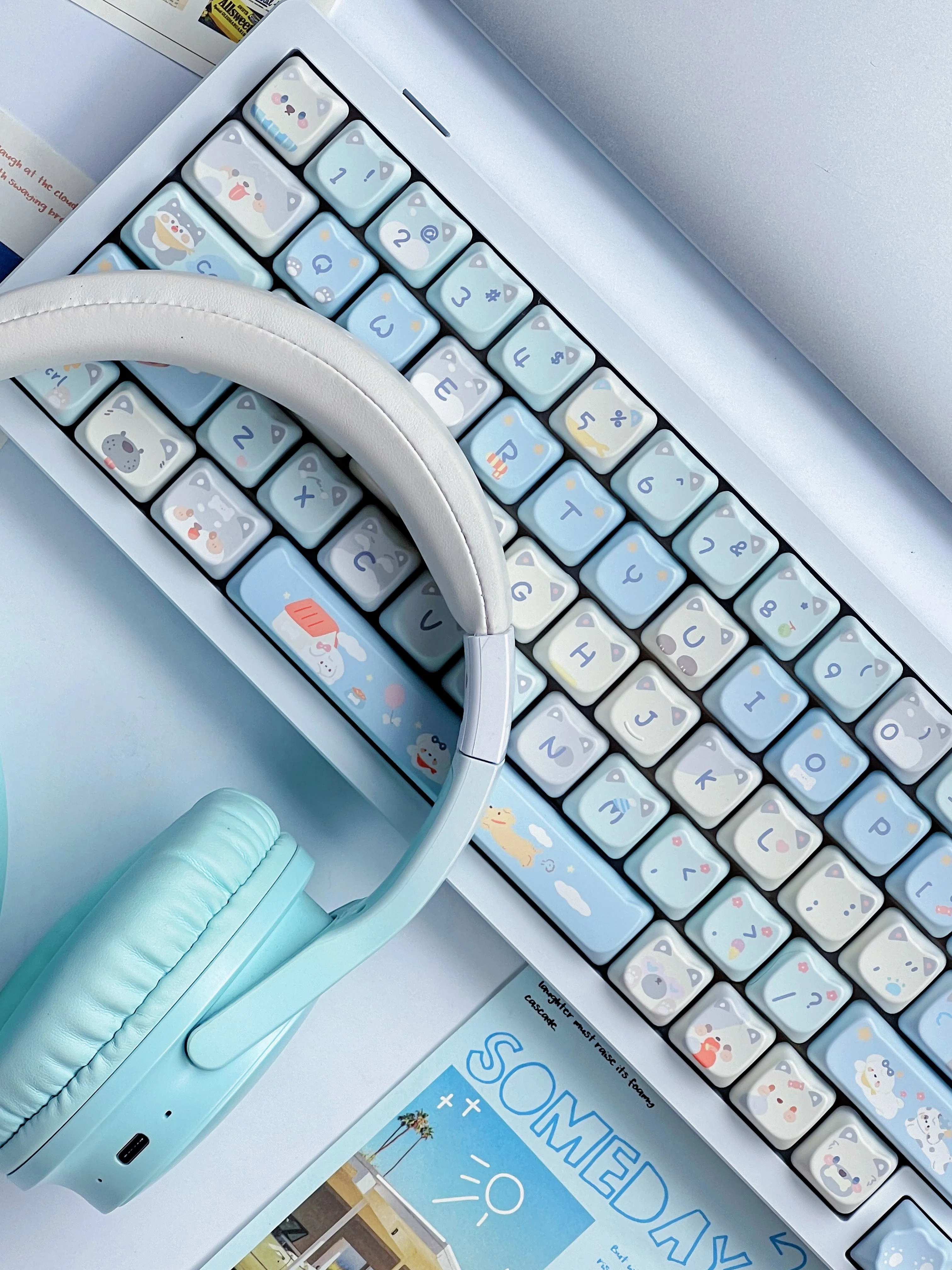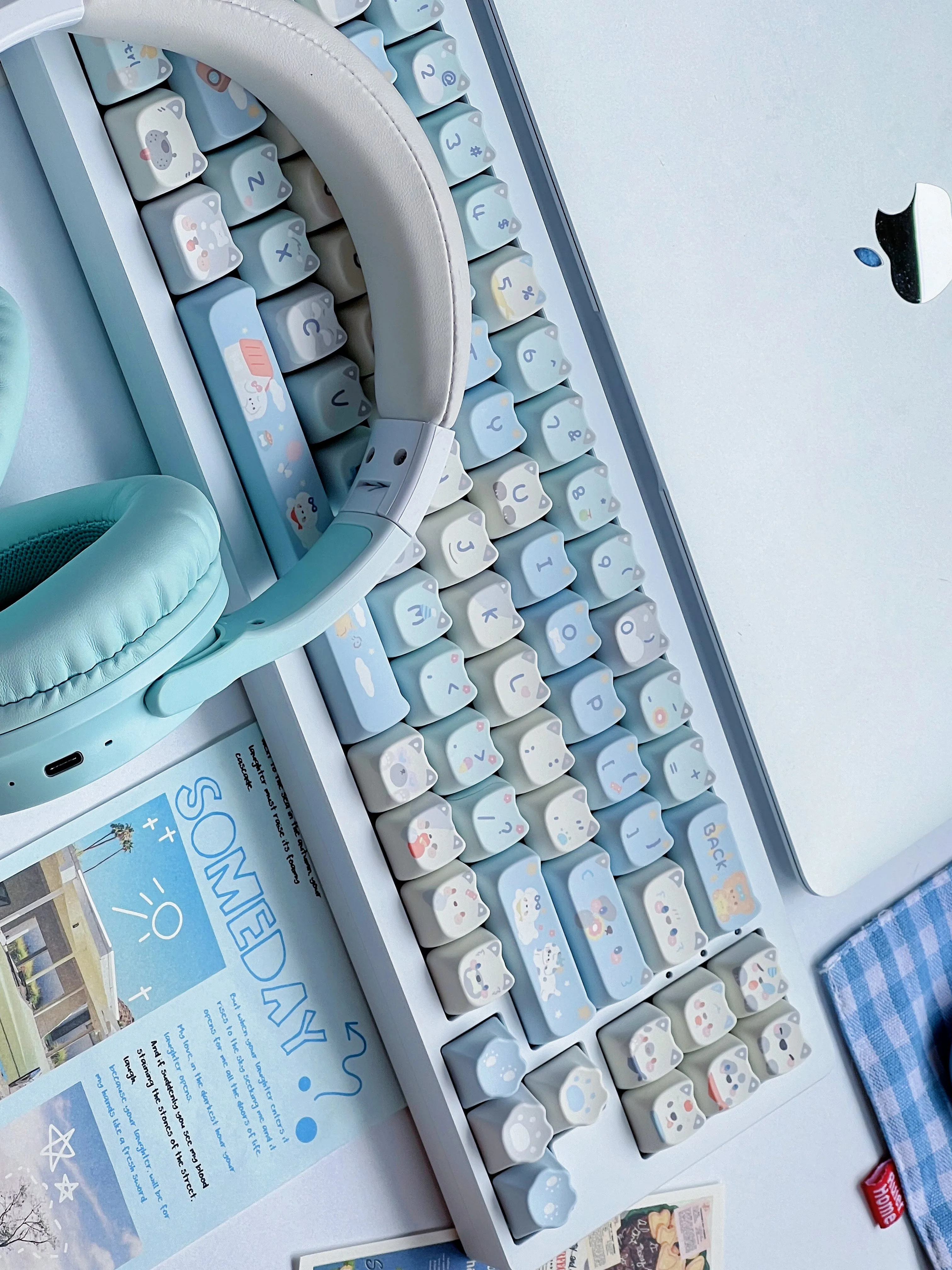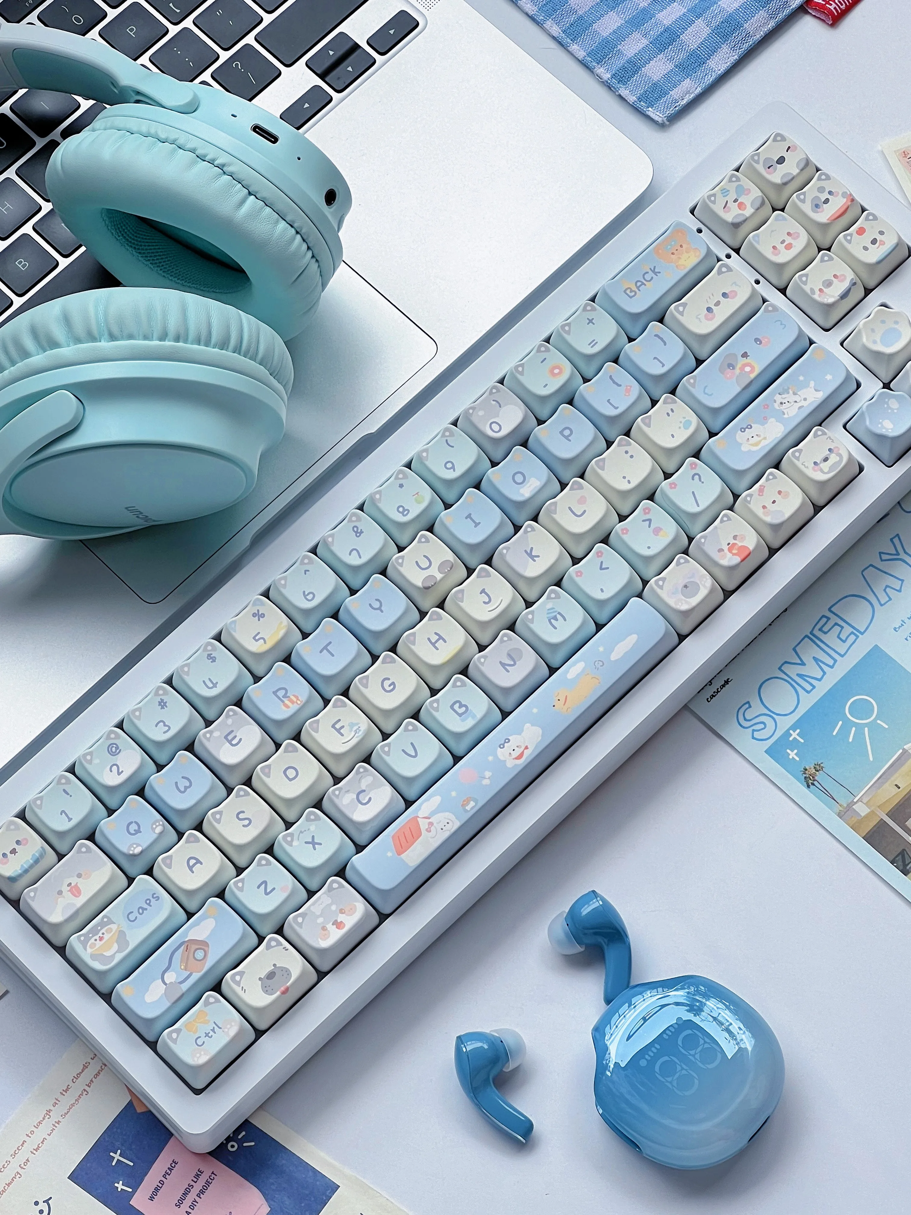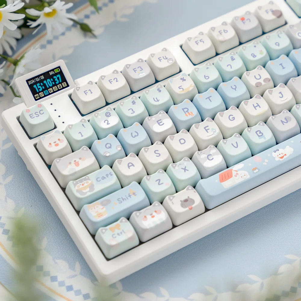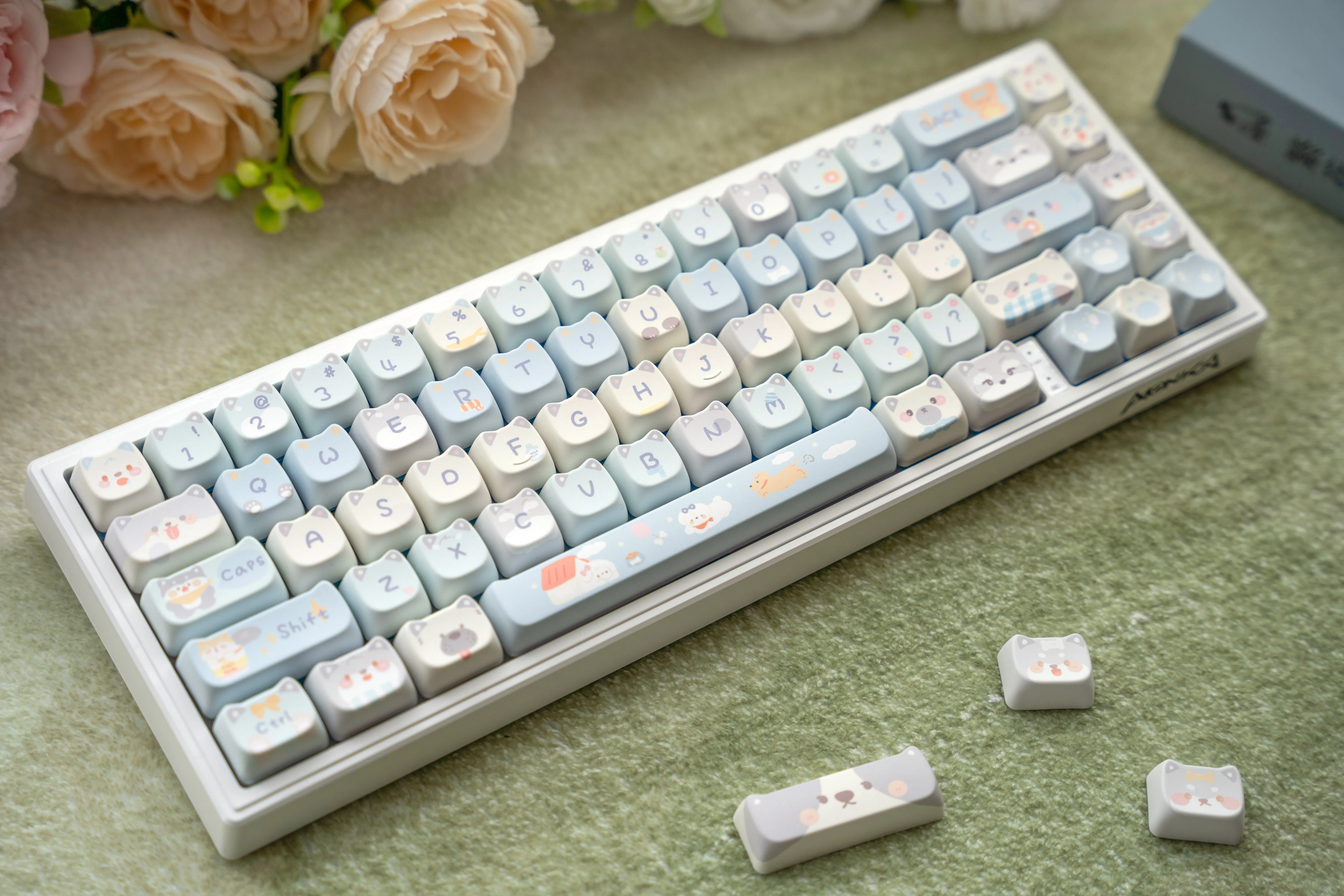 Comprar Teclas bonitas del equipo de cachorros, sublimación térmica PBT, diseño creativo de cabeza de perro, perfil MAO, teclas de teclado mecánico azul