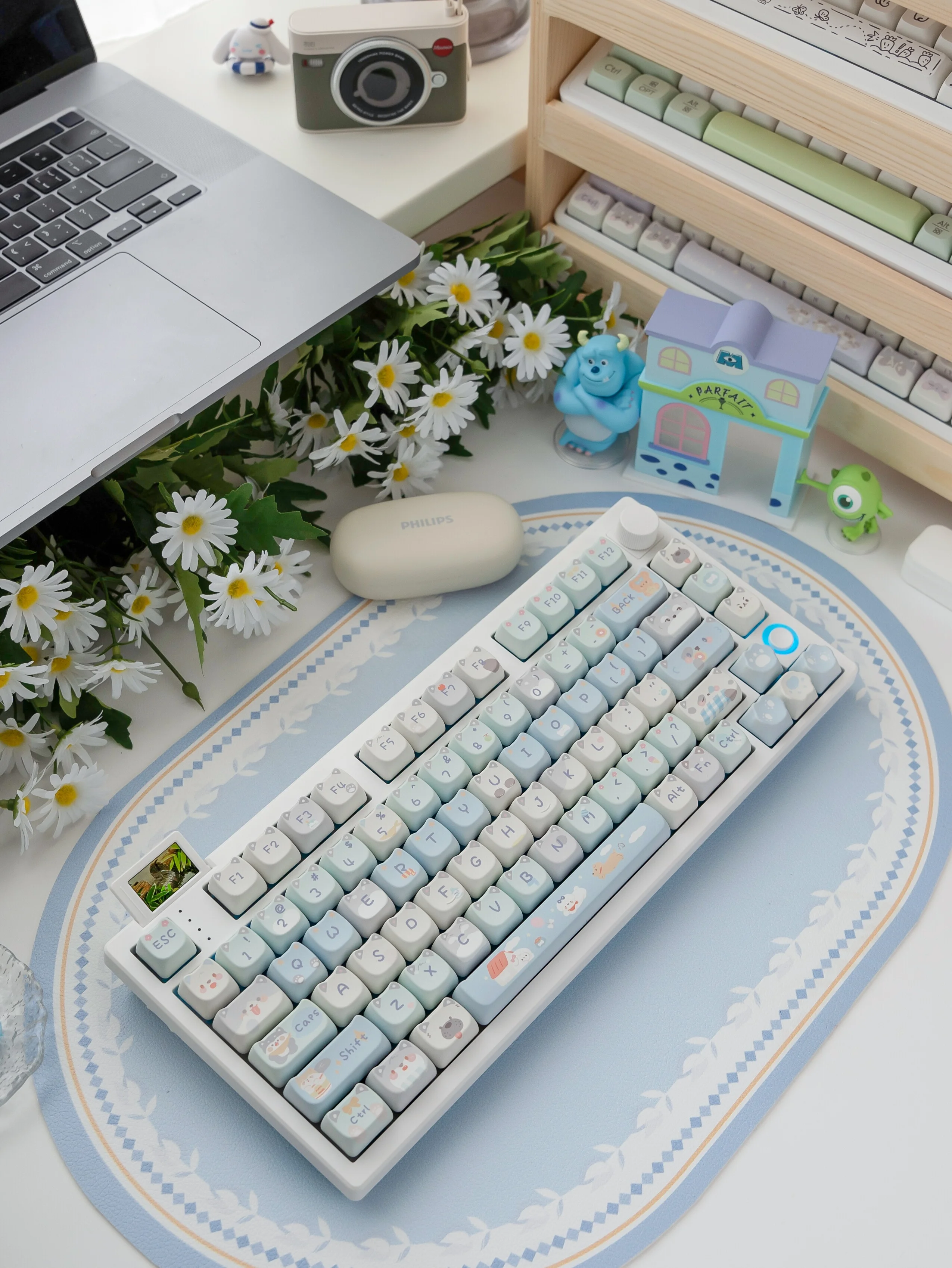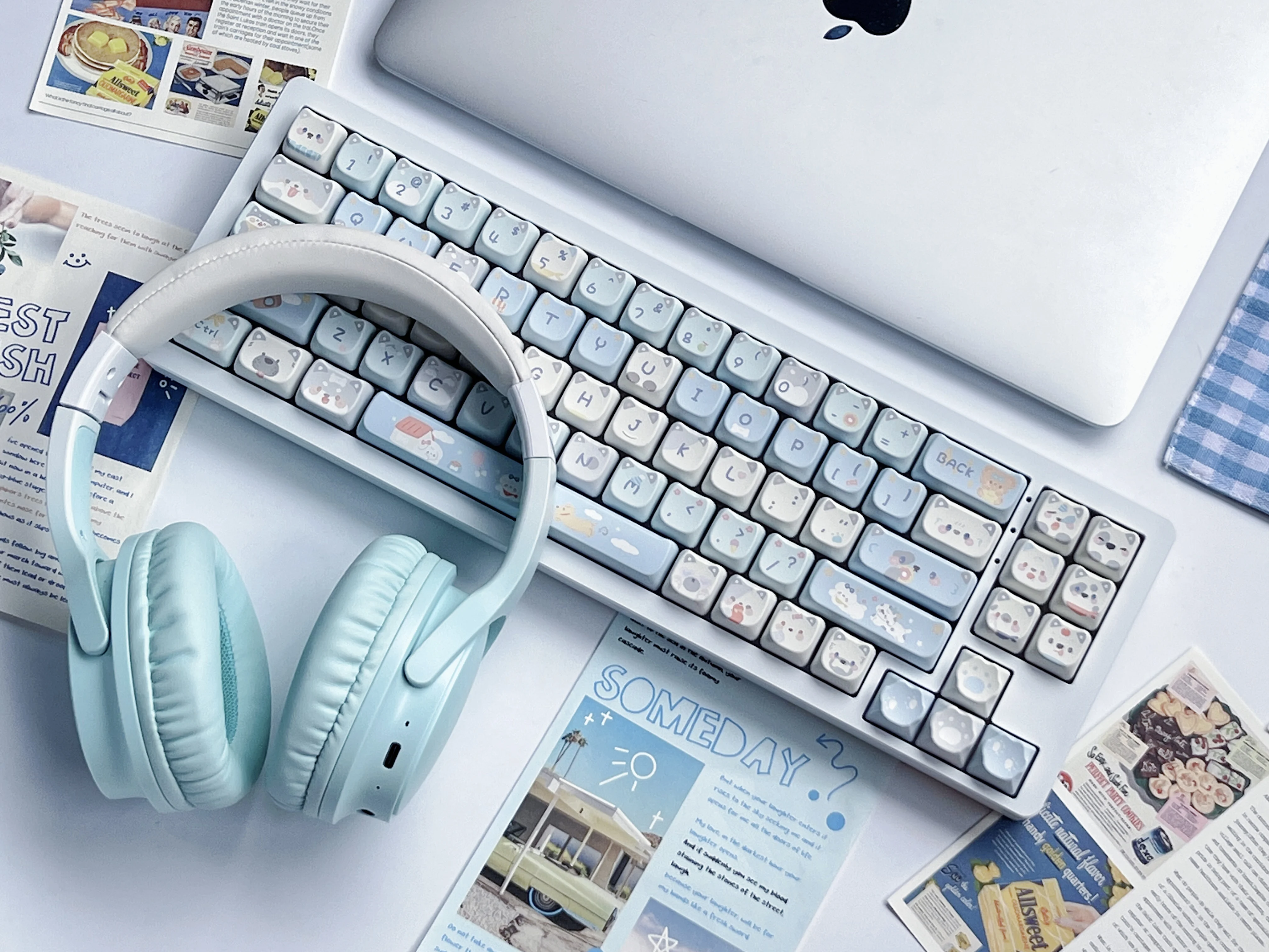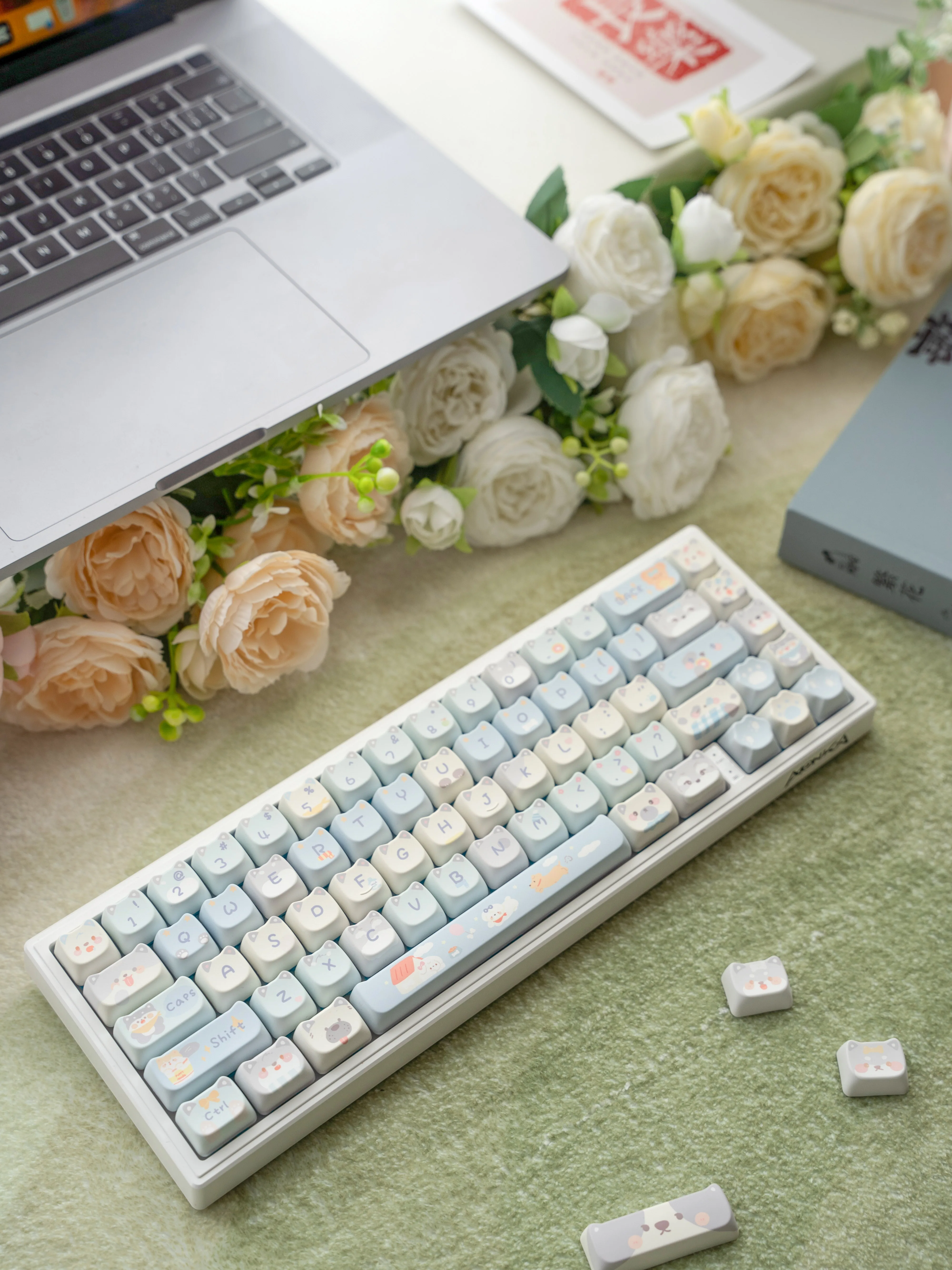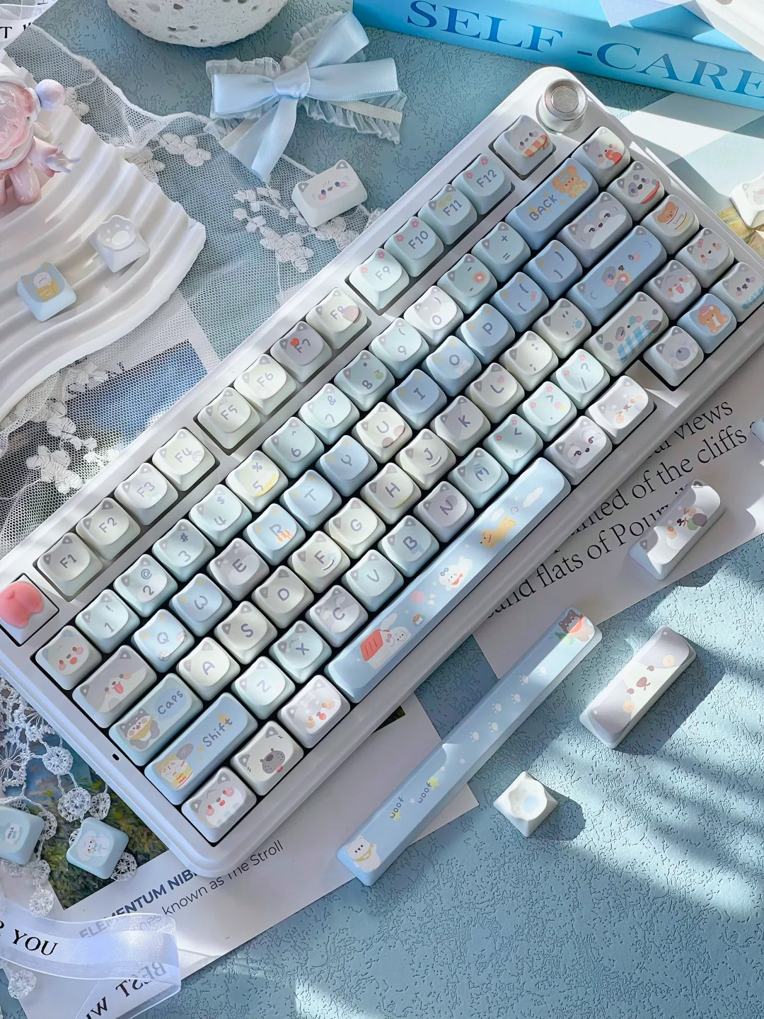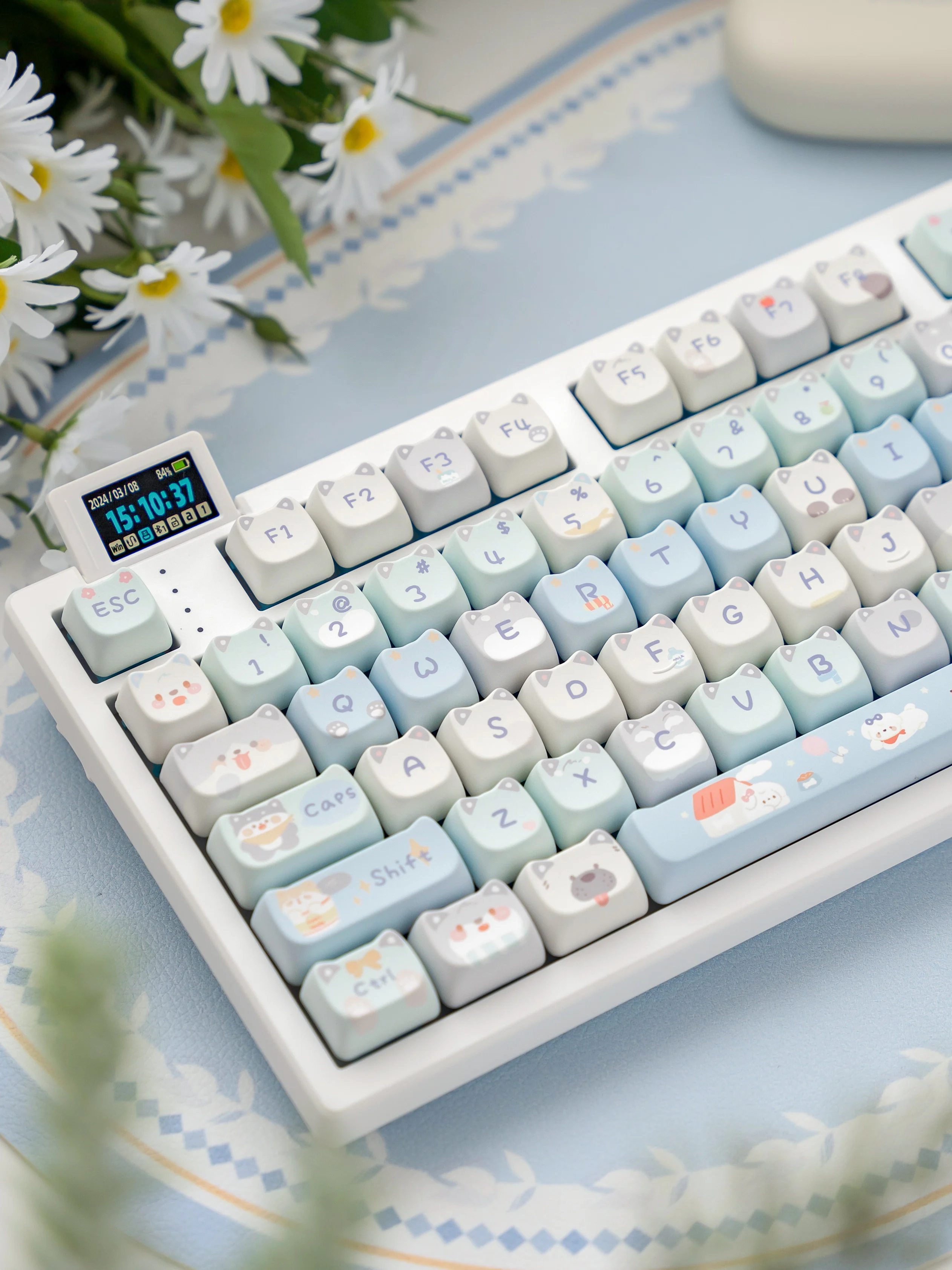 Comprar Teclas bonitas del equipo de cachorros, sublimación térmica PBT, diseño creativo de cabeza de perro, perfil MAO, teclas de teclado mecánico azul