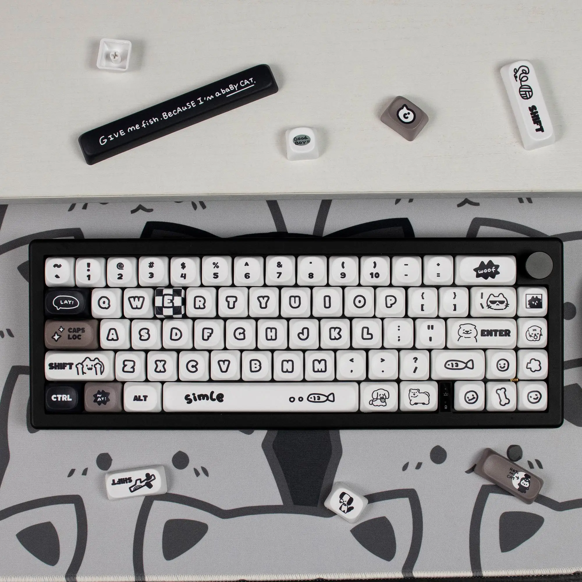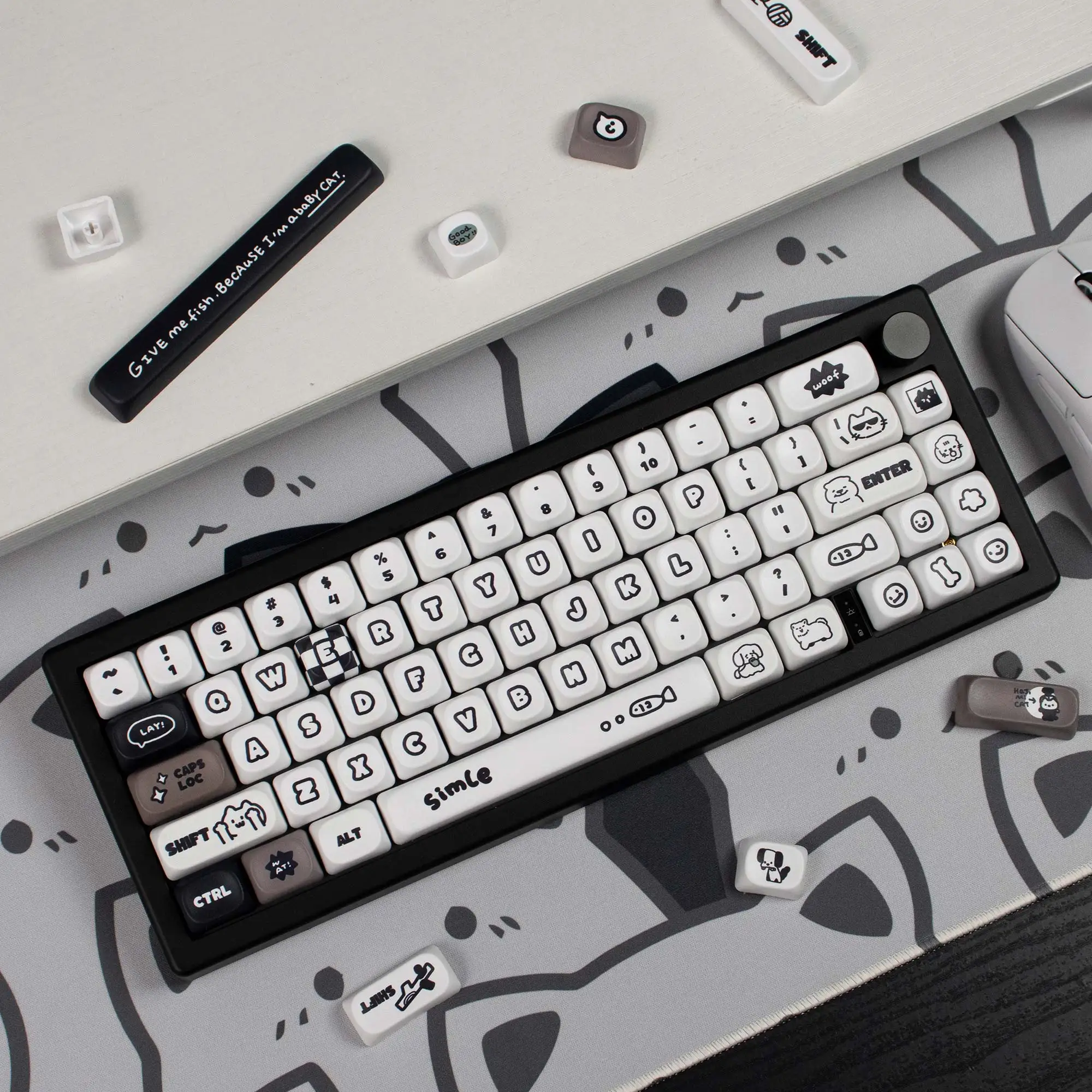 Comprar Teclas bonitas para teclado mecánico, 131 teclas, MOA altura, PBT Dye Sub Cat Dog Suit para Wooting GK61 Anne Pro 2 Game PC