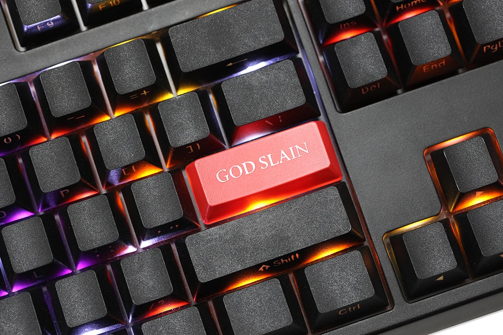 Comprar Teclas brillantes a través de símbolos ABS, grabado con láser, espalda iluminada, Negro, Rojo, ESC, Enter Backspace, God Slain Legend, Felled, novedad