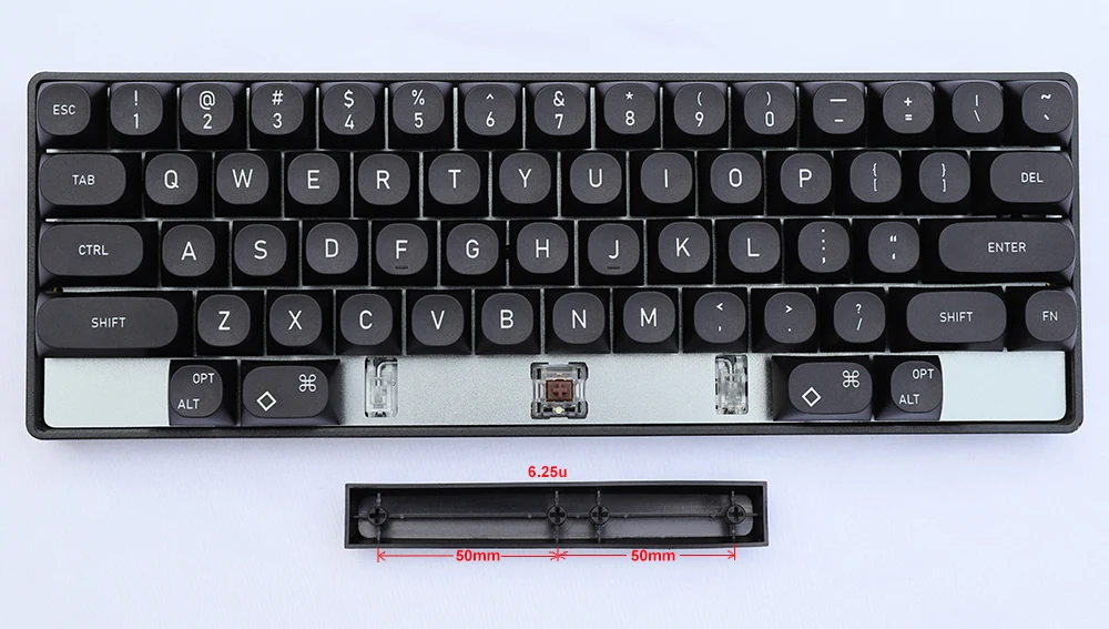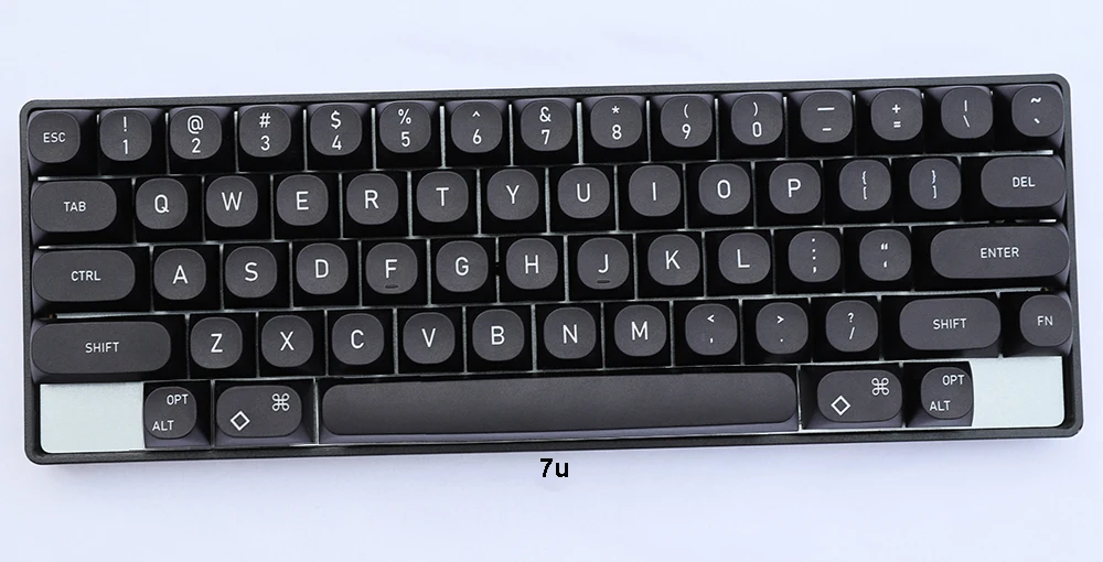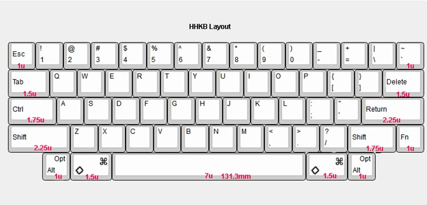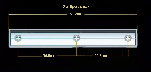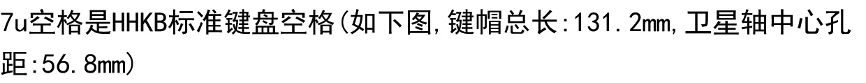 El espacio de 7u es el espacio de teclado estándar HHKB (como se muestra en la siguiente figura, con una longitud total de tecla de 131,2 mm y un orificio central del eje satélite) Distancia: 56,8 mm)