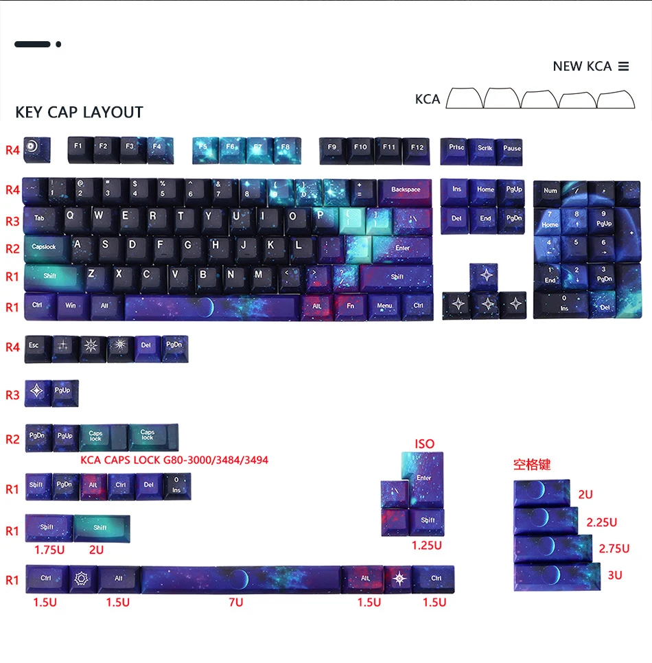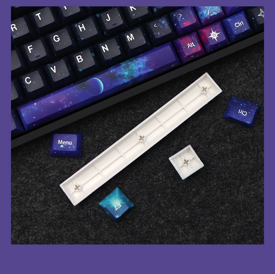 Comprar Teclas de cielo estrellado para teclado mecánico, teclas con 139 teclas, perfil KCA, PBT, tinte, sublimación, para interruptor MX, con cambio de 1,75u, 7U, Spac