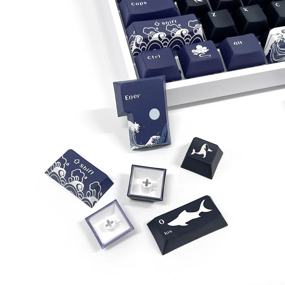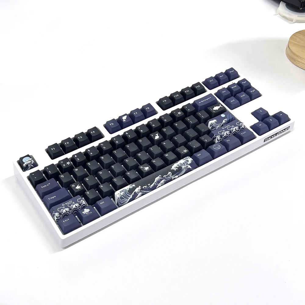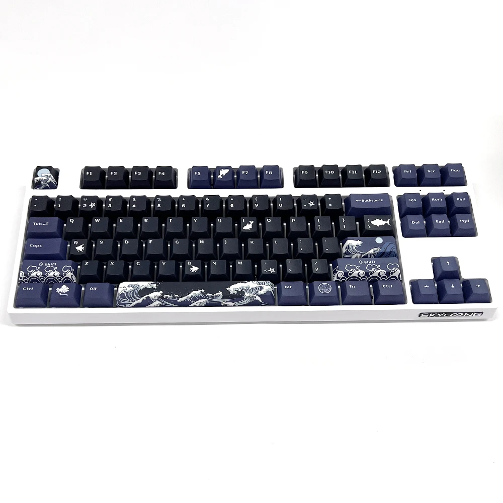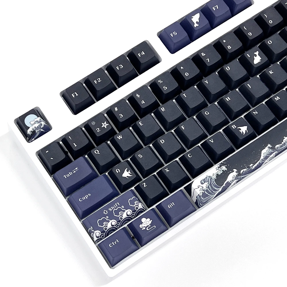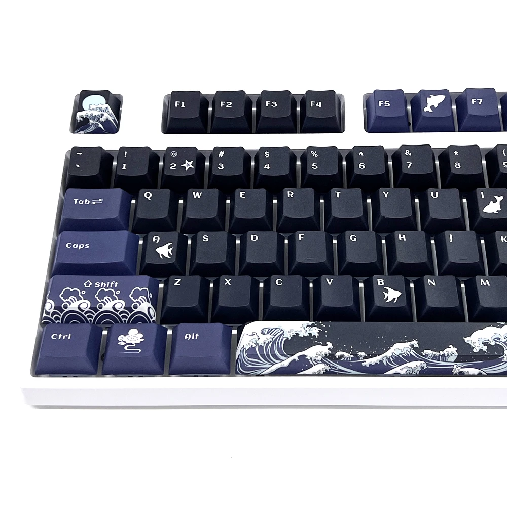 Comprar Teclas de Coral Sea para teclado mecánico, accesorio negro, inglés, perfil de cereza, tinte PBT, sublimación, interruptor MX, cambio de 1,75u, 129 teclas
