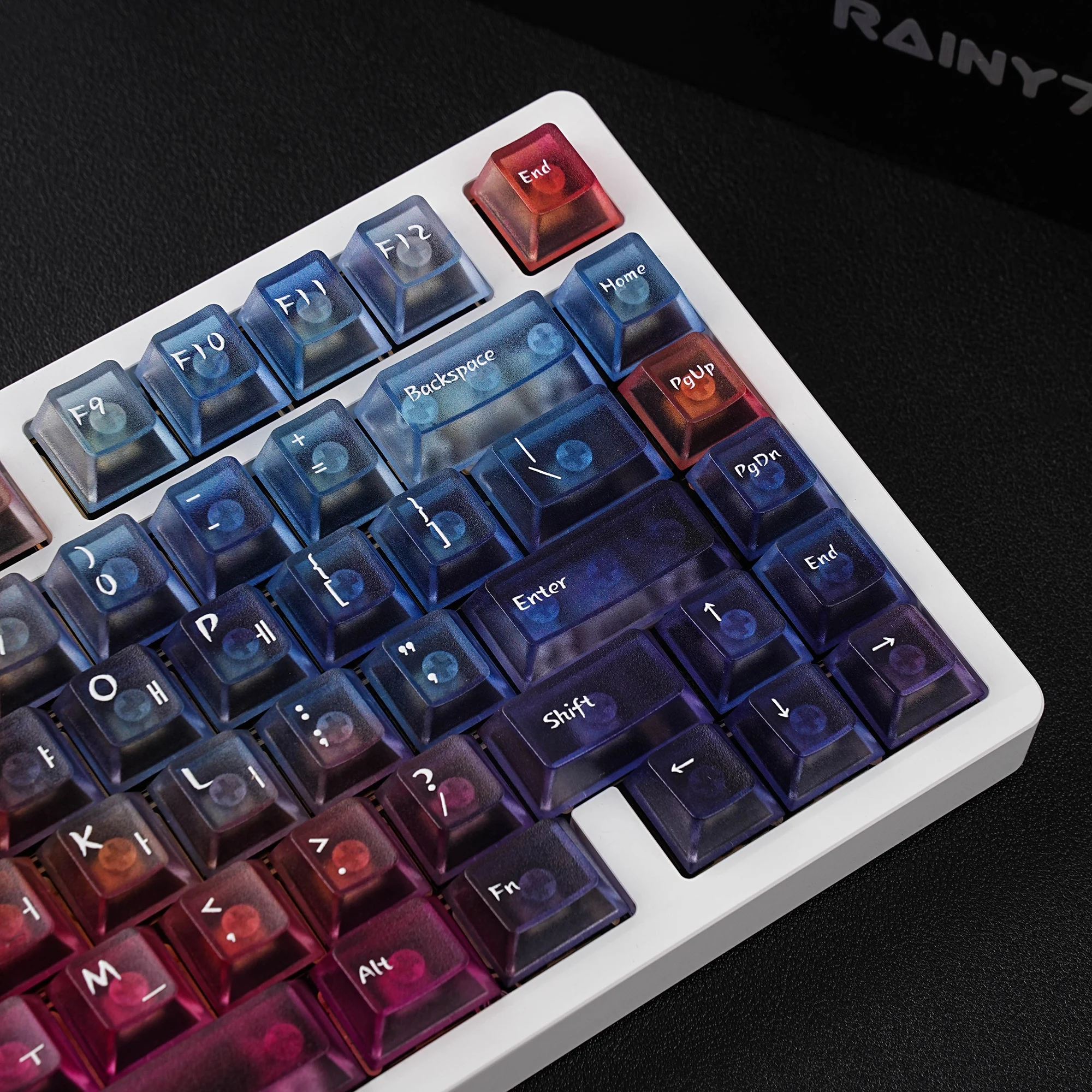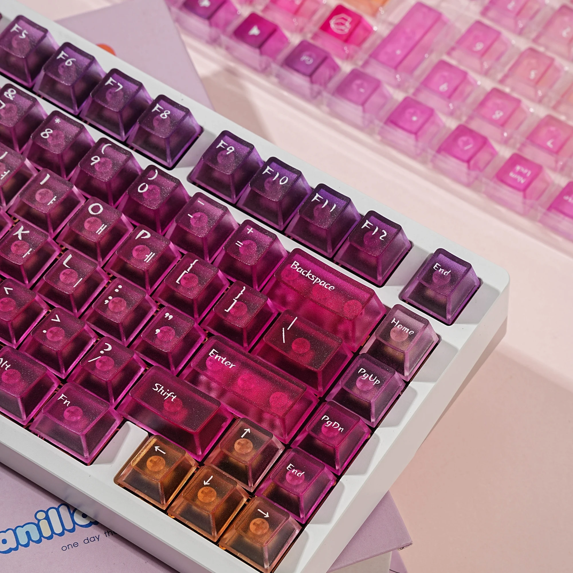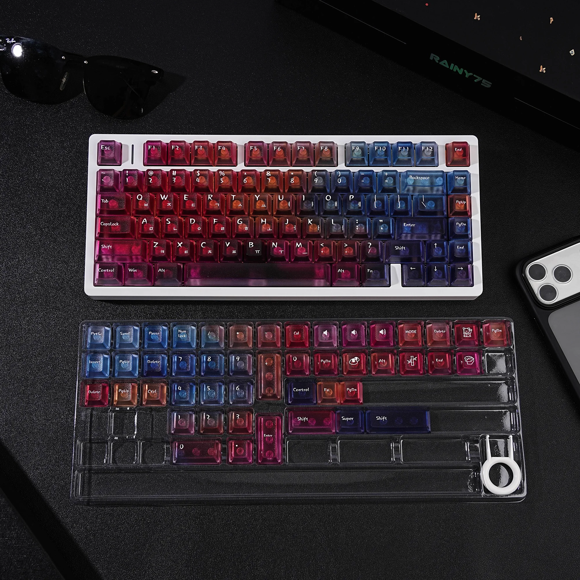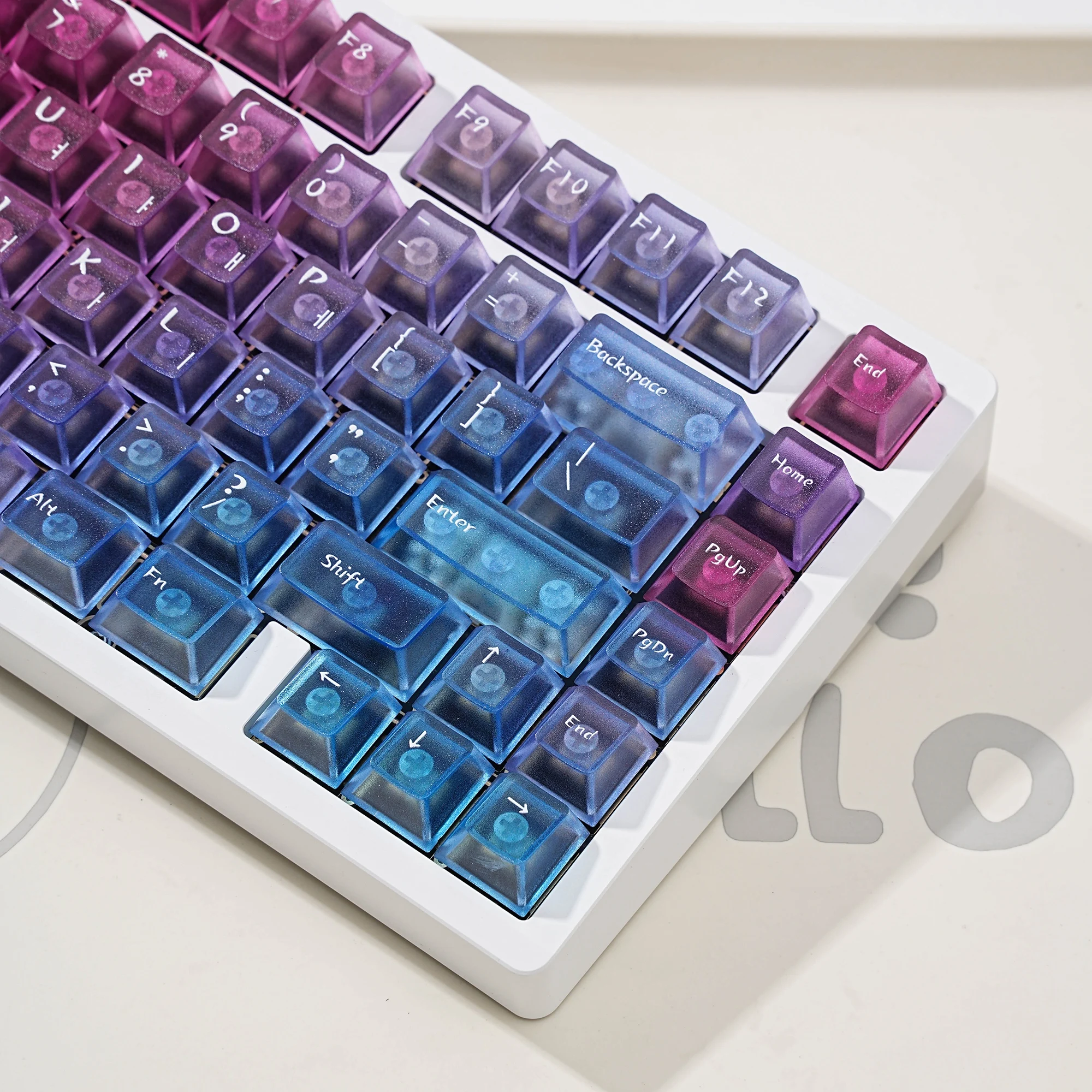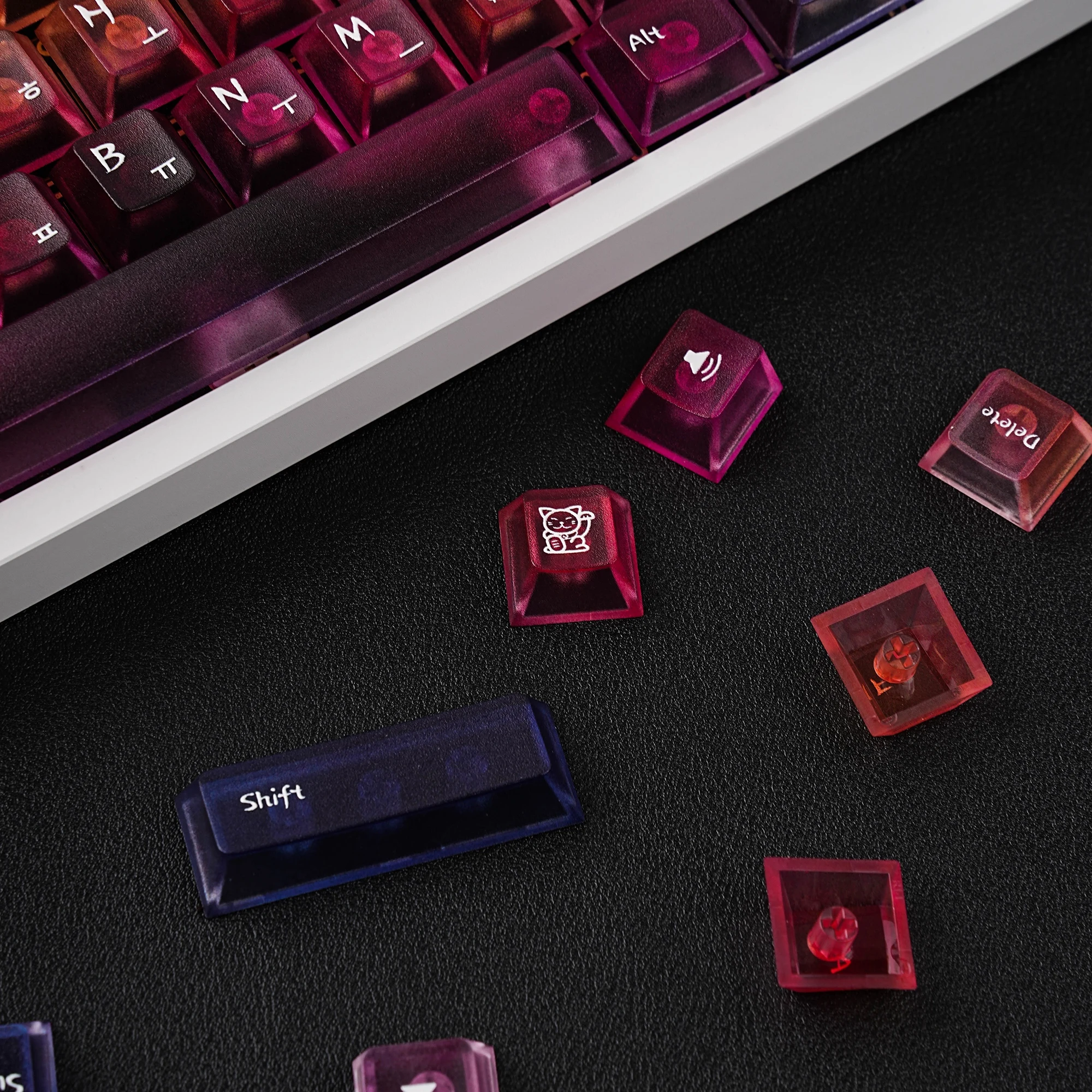 Viene bien empaquetado en plástico de burbujas. Se ve bonito. Intenté instalarlo en un teclado transparente. La textura se siente ligeramente áspera. ¿Debería decir que tiene un poco de sensación de rasguño? No es resbaladizo y las teclas encajan perfectamente. Tiene grabado en coreano. La entrega fue más rápida de lo esperado. Si estás buscando teclas antideslizantes, recomiendo estas teclas.